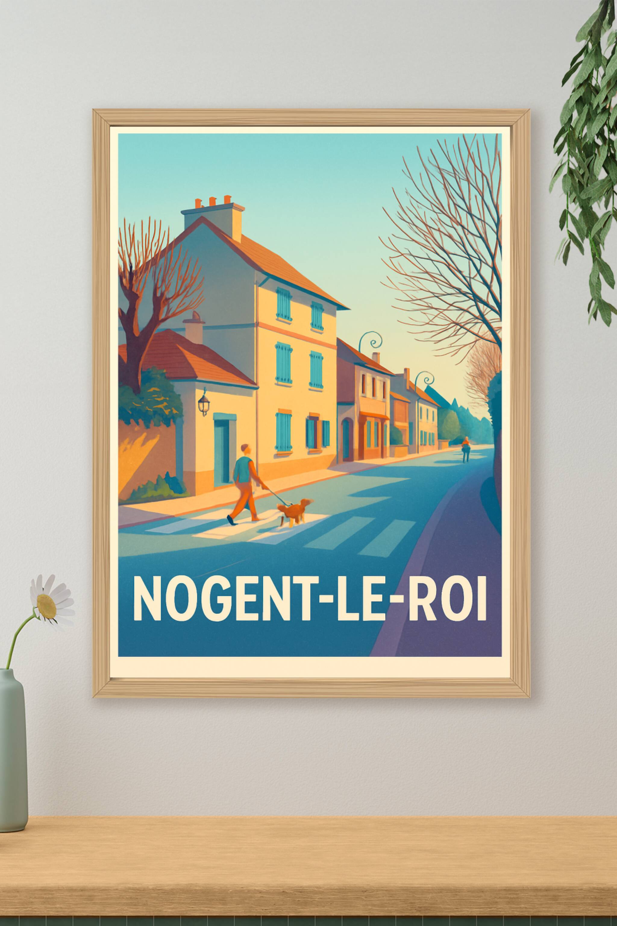 Découvrez l'atmosphère tranquille et chaleureuse de Nogent-le-Roi à travers cette affiche illustrée avec une palette de couleurs douces et invitant...