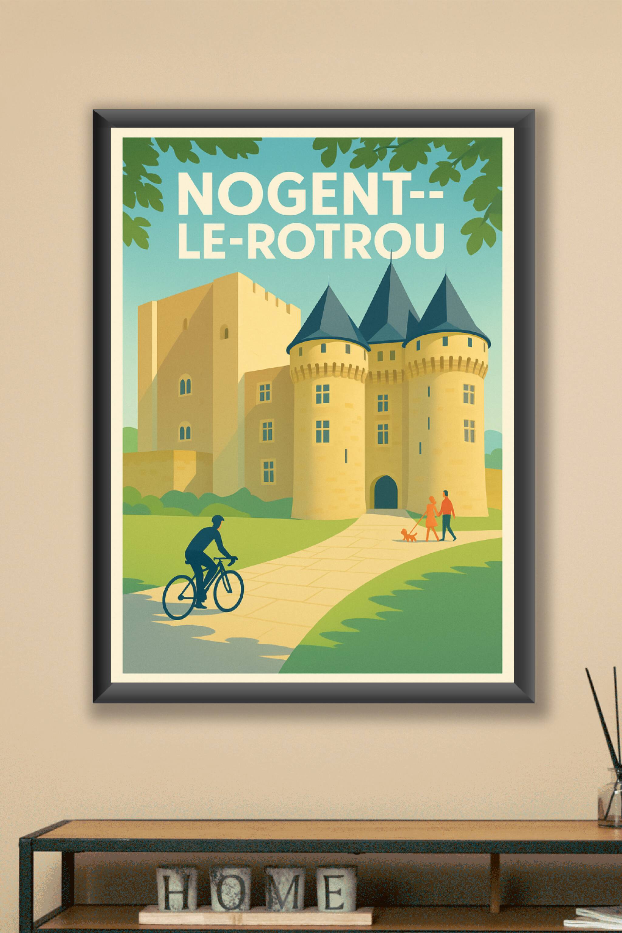 Découvrez l'élégance historique de Nogent-le-Rotrou avec cette affiche illustrée mettant en scène son majestueux château médiéval. Ce poster évoque la tranquillité et la beauté d'une balade en pleine nature, sublimée par les tours emblématiques du monument. Imprimée en tirage "Fine Art" sur un papier 305g coton d'exception, cette affiche se distingue par une qualité d'impression premium et des couleurs durables. Disponible en formats A1 à A4, avec ou sans cadre, elle s'intègre parfaitement dans tous les intérieurs, offrant une touche culturelle et décorative unique. Profitez d'un produit 100% fabriqué en France pour enrichir votre décoration ou offrir un souvenir raffiné de Nogent-le-Rotrou.