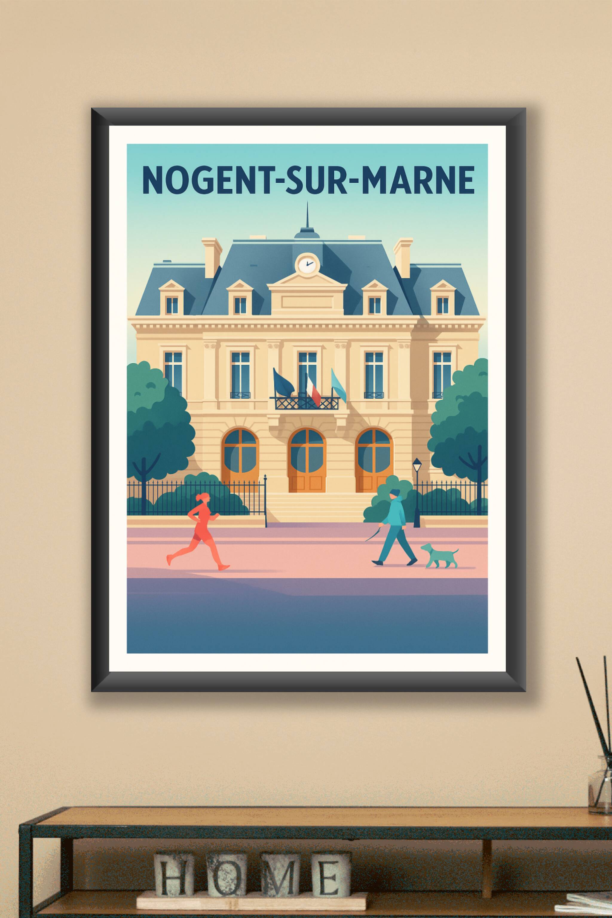 Découvrez l'élégance intemporelle de Nogent-sur-Marne à travers cette affiche au style épuré et moderne, mettant en avant un bâtiment emblématique ...