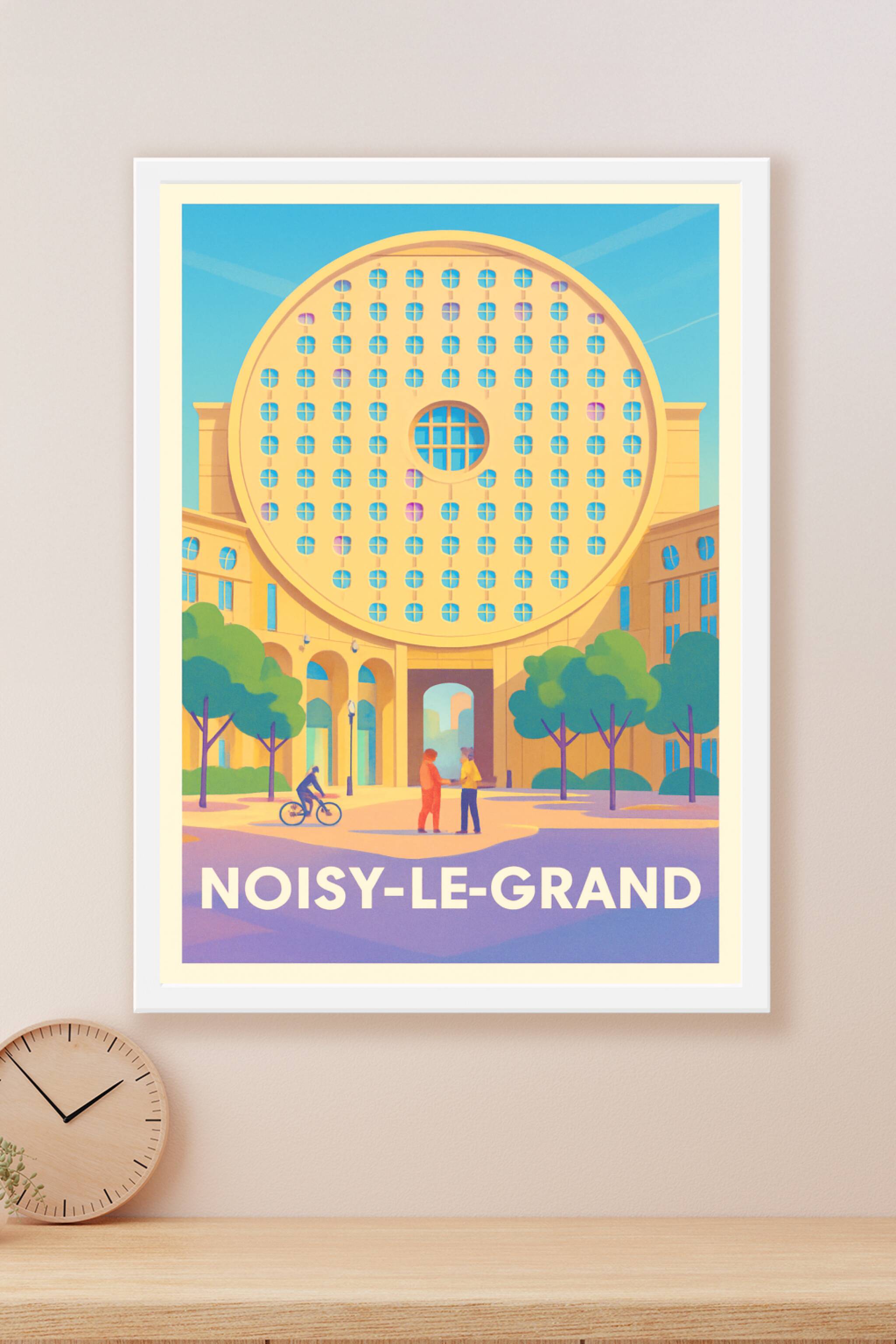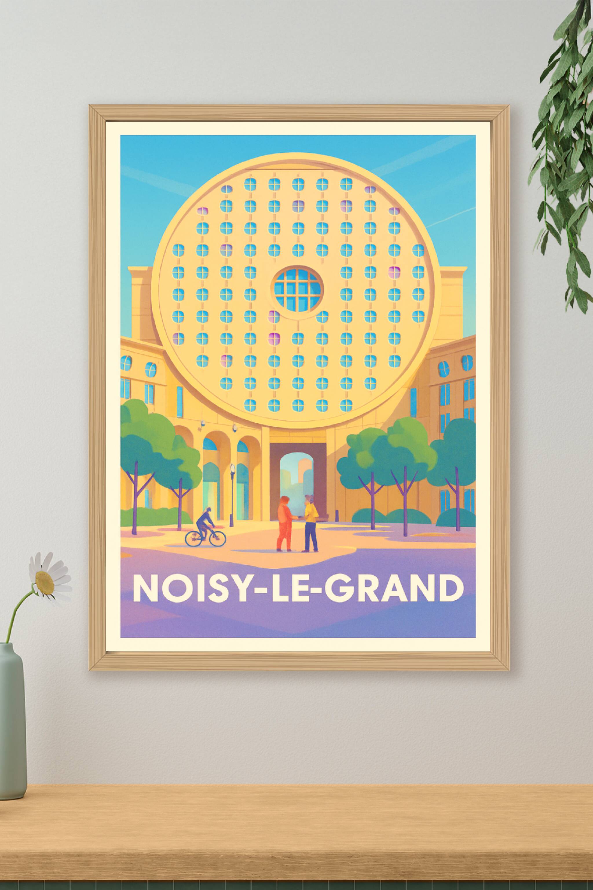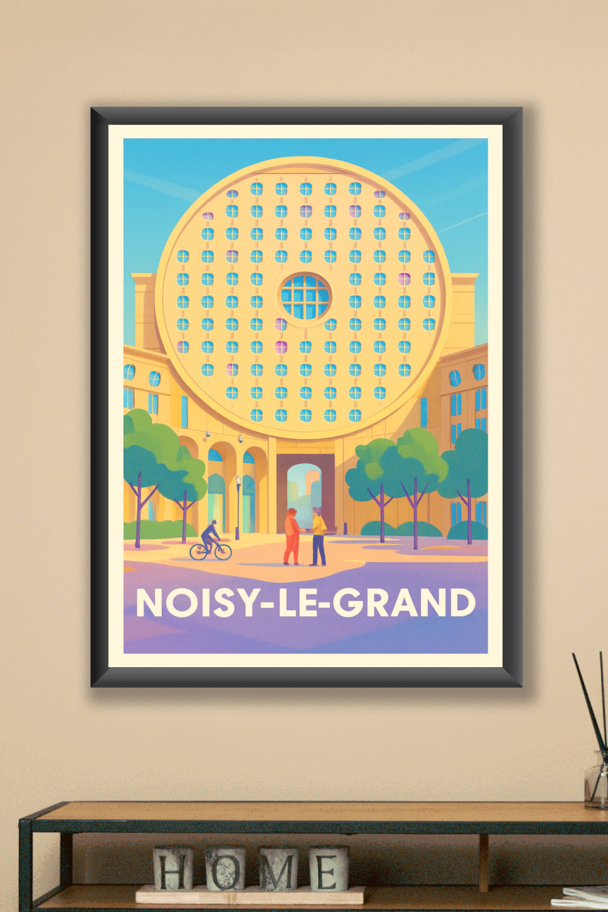 Découvrez cette affiche unique mettant en valeur l'architecture iconique de Noisy-le-Grand, un lieu où modernité et design urbain se rencontrent. C...