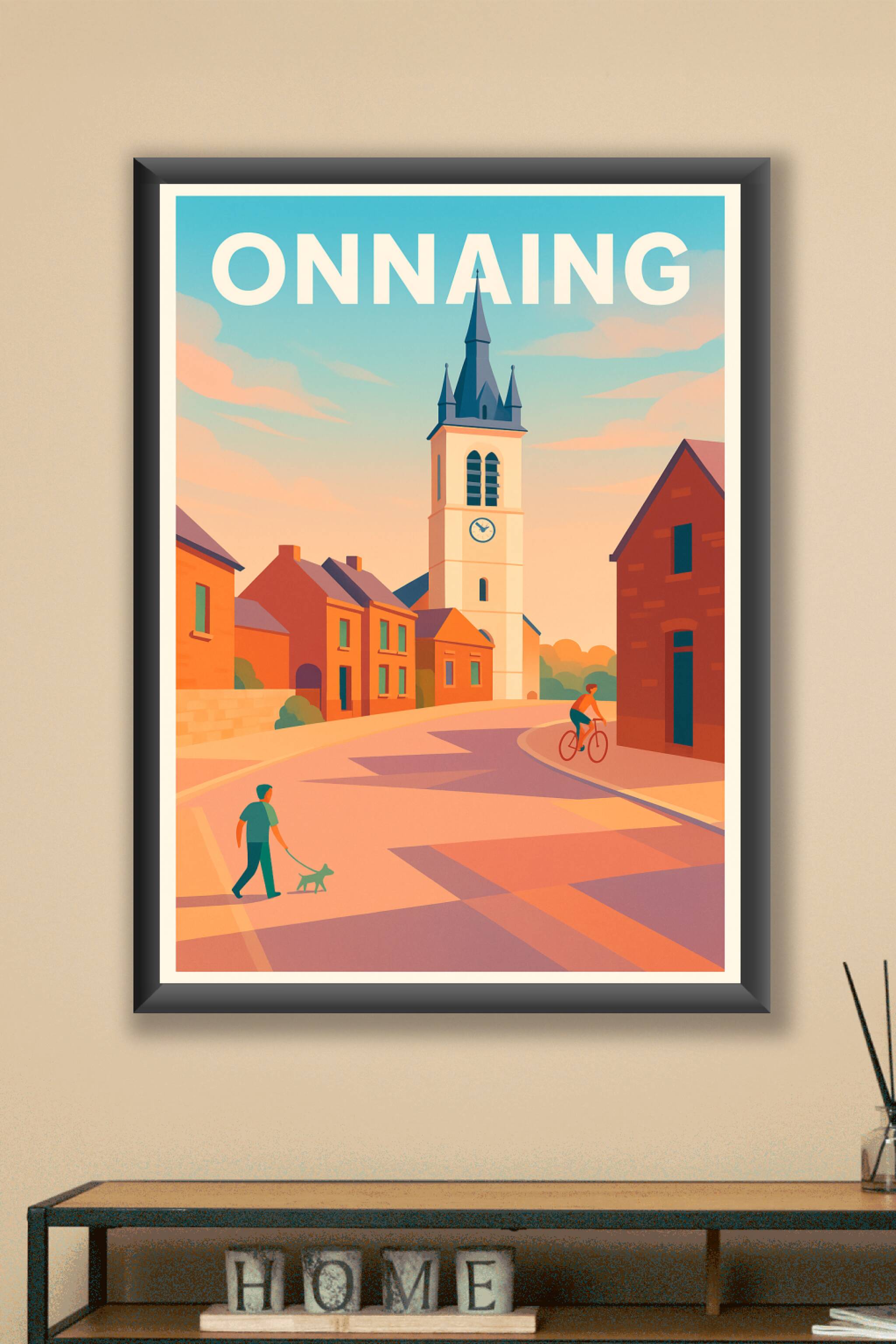 Découvrez la douceur de vivre d'Onnaing avec cette affiche illustrée mettant en scène une rue paisible baignée dans une lumière dorée, où un passant promène son chien tandis qu'un cycliste profite du calme ambiant. Ce poster, rendu dans un style graphique épuré et harmonieux, capture l'essence d'un village chaleureux et accueillant.Ce poster est imprimé en tirage "Fine Art" sur un papier 305g coton de qualité supérieure, garantissant des couleurs éclatantes et une durabilité exceptionnelle. Il est disponible en plusieurs dimensions, du format A4 au format A1, avec ou sans cadre, pour s'adapter parfaitement à votre intérieur. Apportez une touche d'authenticité et de sérénité à votre décoration ou offrez cette affiche de qualité premium, 100% fabriquée en France, à un amateur de la région.