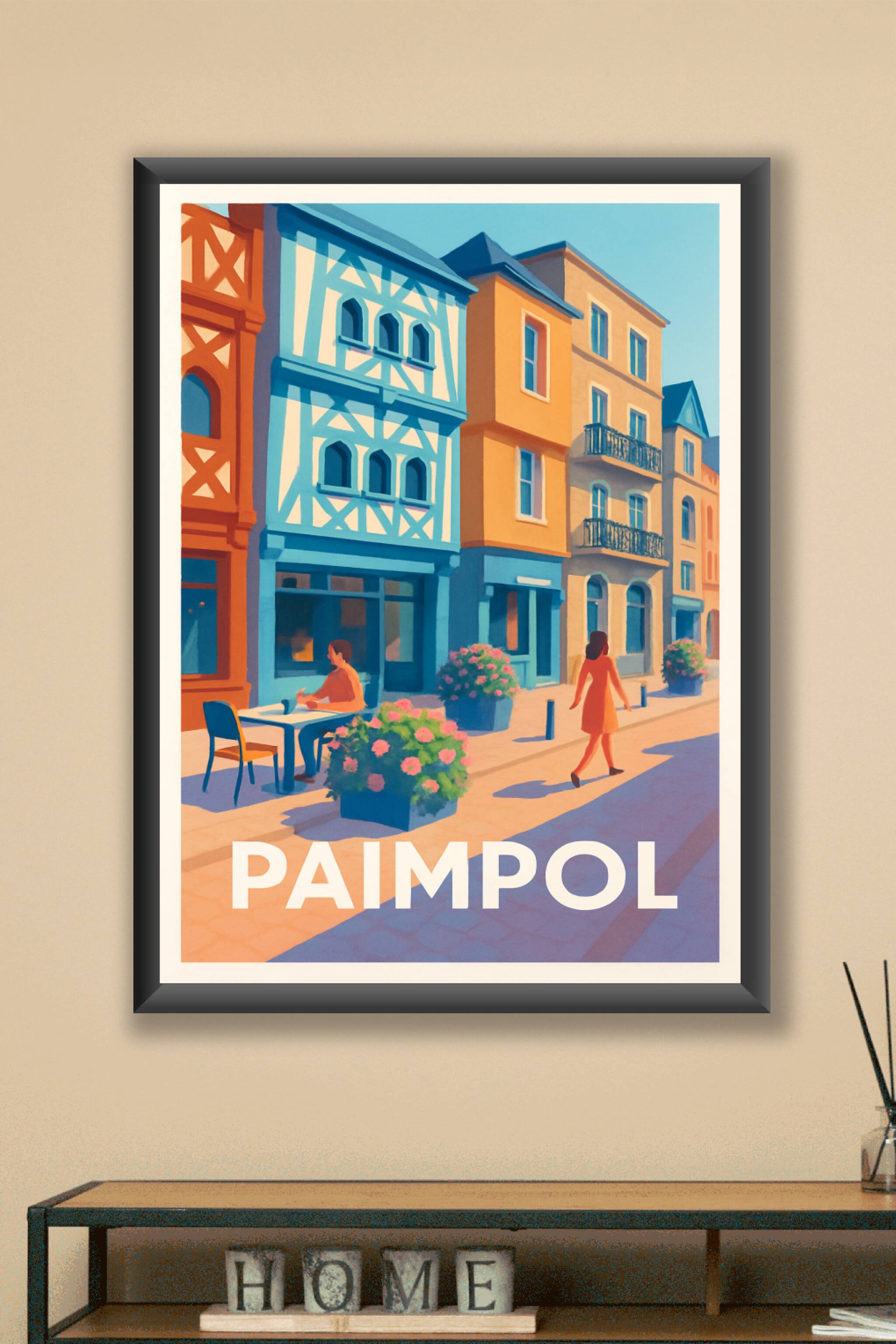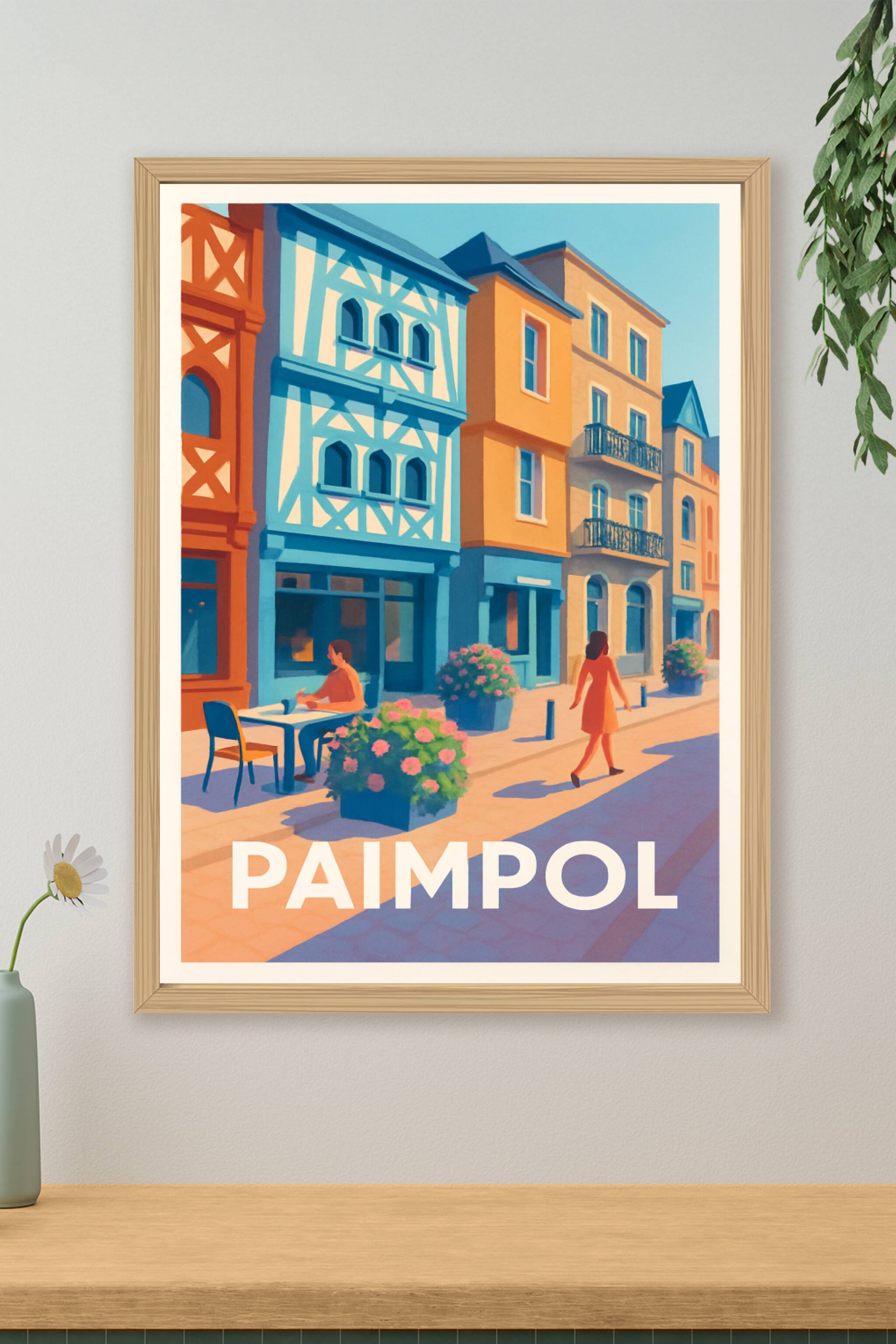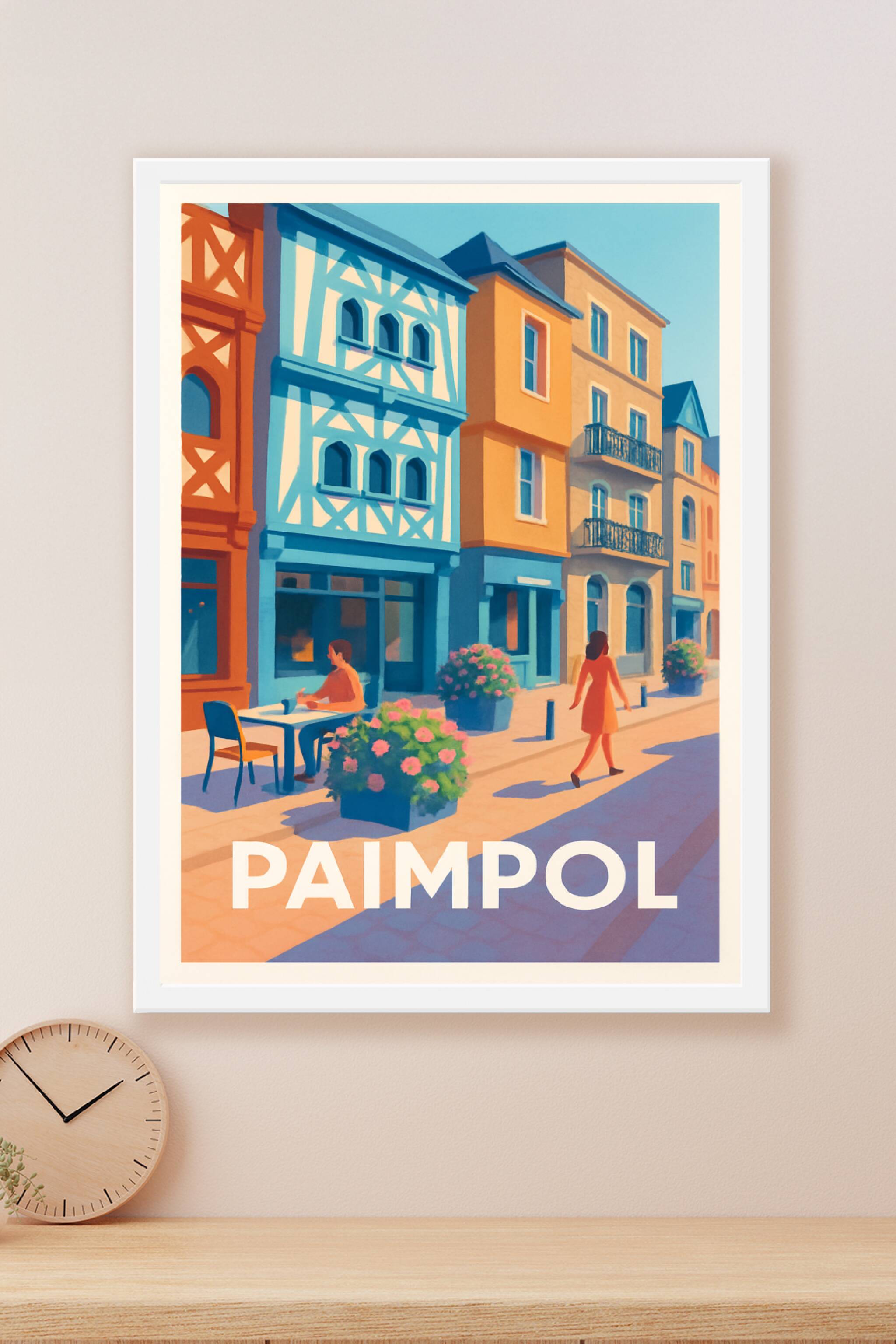 Découvrez l'élégance et la douceur de vivre de Paimpol à travers cette affiche illustrée empreinte de couleurs vives et d'architecture typique bret...