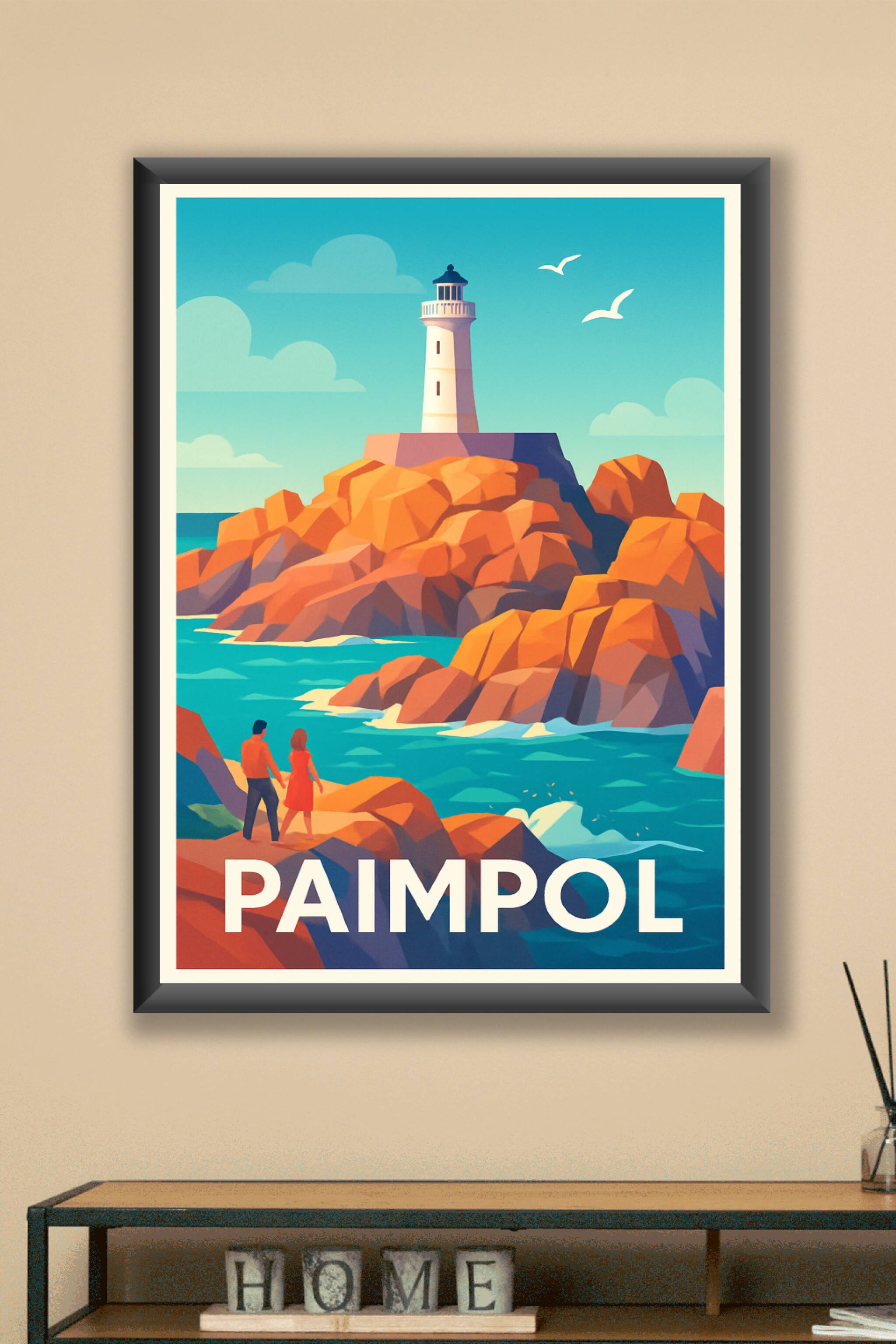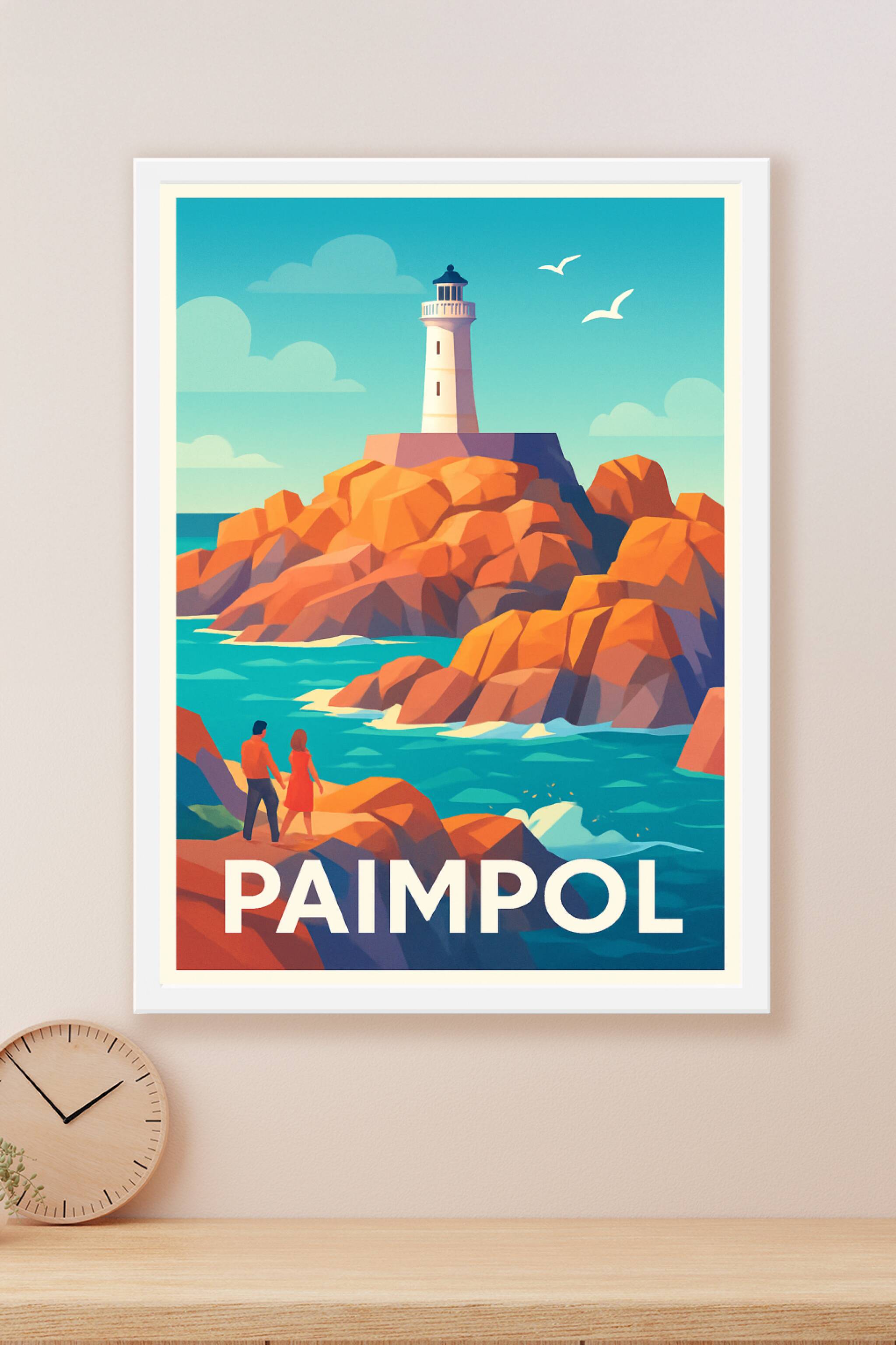 Découvrez la beauté saisissante de Paimpol à travers cette affiche illustrée mettant en scène un phare emblématique posé sur les rochers orangés, baigné par une mer turquoise et un ciel azur. Ce poster évoque l'atmosphère paisible et romantique de cette charmante cité bretonne, idéale pour apporter une touche d'évasion à votre décoration intérieure. Imprimé en tirage "Fine Art" sur un papier 305g coton haute qualité, ce poster garantit des couleurs éclatantes et une finition impeccable. Disponible en plusieurs formats allant du A1 au A4, avec ou sans cadre, cette affiche de Paimpol est parfaite pour sublimer votre intérieur ou pour offrir un cadeau élégant et authentique aux amoureux de la Bretagne.