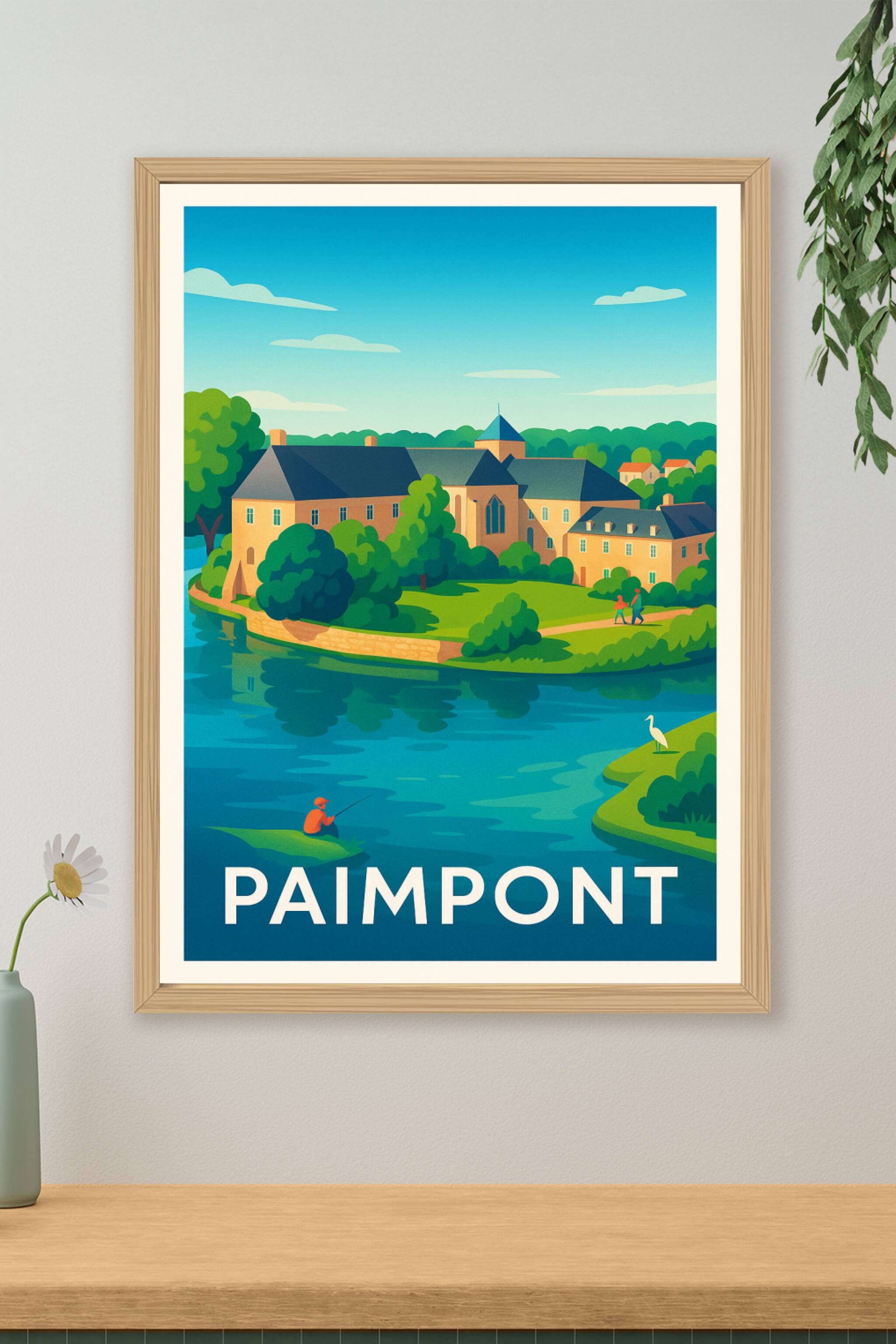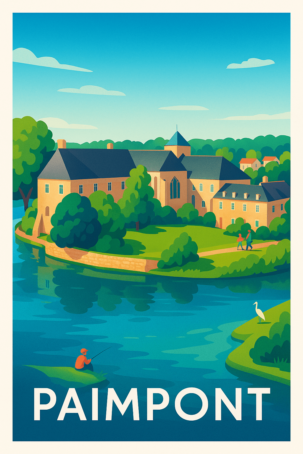Découvrez la sérénité intemporelle de Paimpont avec cette affiche illustrée, mettant en valeur le charme paisible de son patrimoine naturel et arch...