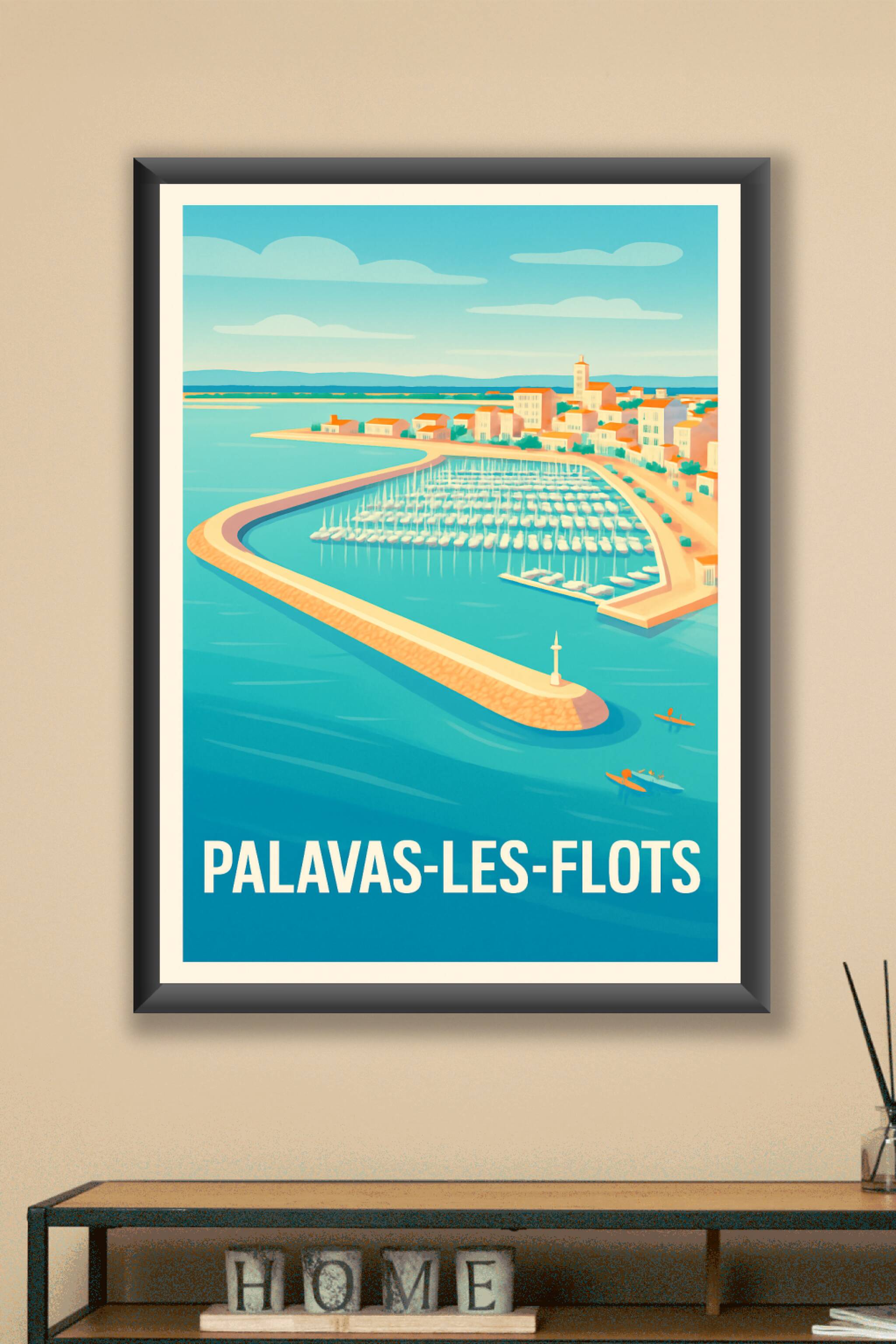 Découvrez le charme authentique de Palavas-les-Flots avec cette affiche au style rétro mettant en lumière son port de plaisance emblématique et ses...