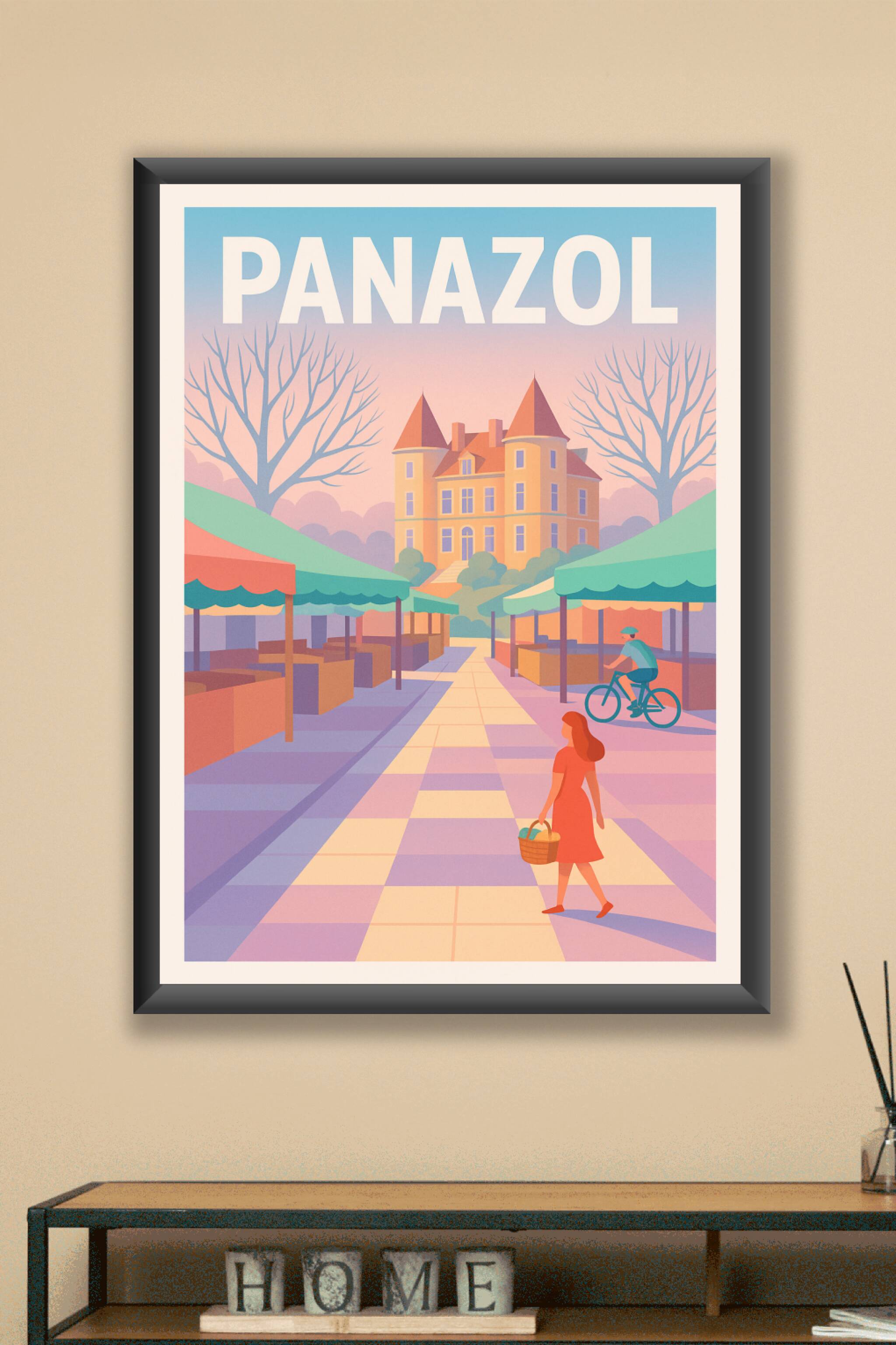 Découvrez l'atmosphère douce et sereine de Panazol à travers cette affiche illustrée dans des teintes pastel chaleureuses. Le poster met en scène u...