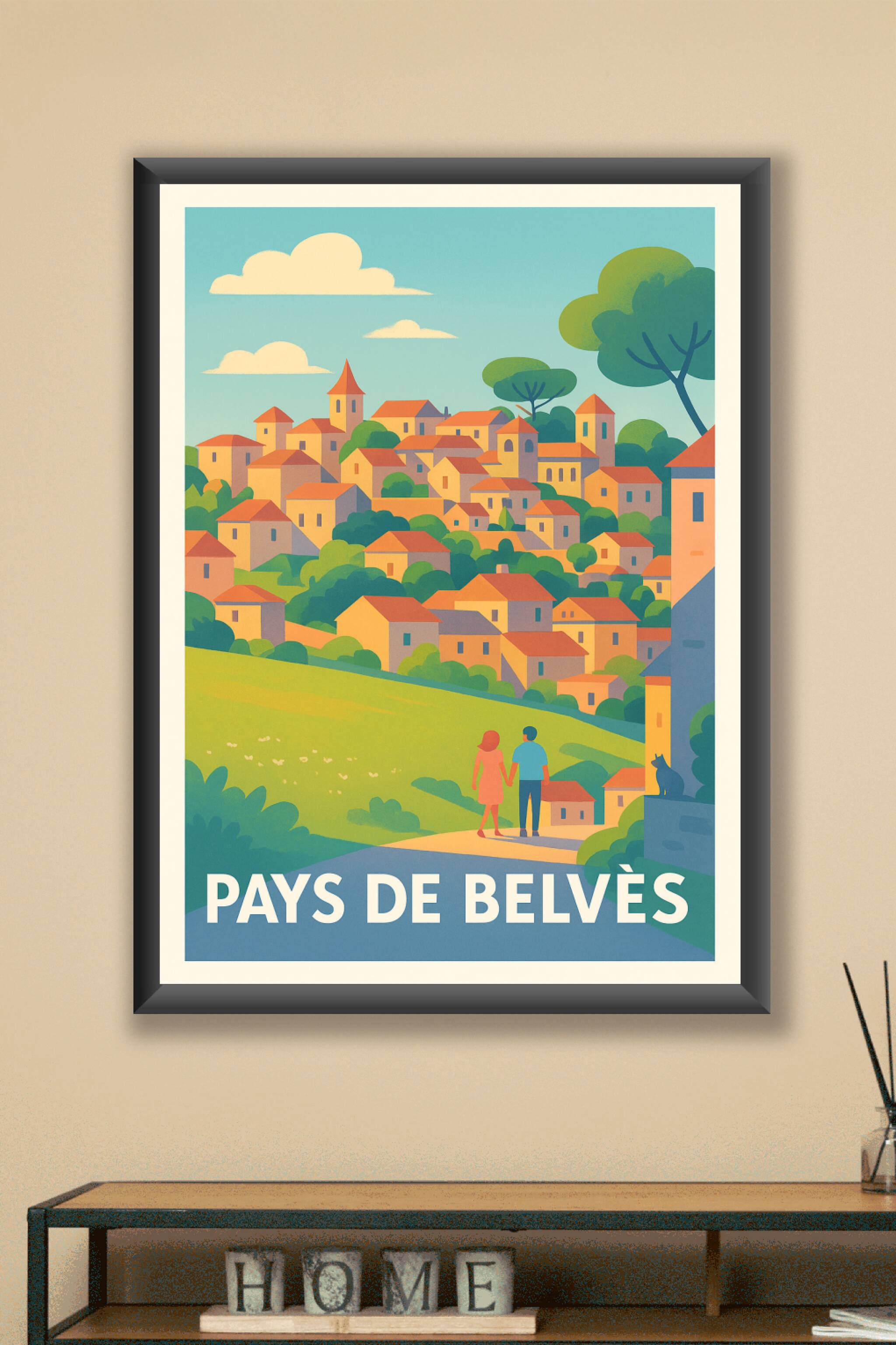 Découvrez le paysage bucolique et pittoresque du Pays de Belvès avec cette affiche au style rétro et coloré, qui met en lumière le charme authentique des villages périgourdins. Illustré avec douceur, ce poster vous invite à une promenade romantique au cœur des toits ocres et des collines verdoyantes.Ce poster est imprimé en tirage "Fine Art" sur papier 305g coton, garantissant une qualité d'impression exceptionnelle et des couleurs lumineuses qui dureront dans le temps. Disponible en formats A1 à A4, avec ou sans cadre, cette affiche est idéale pour sublimer votre décoration intérieure ou offrir un souvenir élégant de la Dordogne. Fabriquée en France avec soin, elle apportera chaleur et poésie à votre espace de vie.