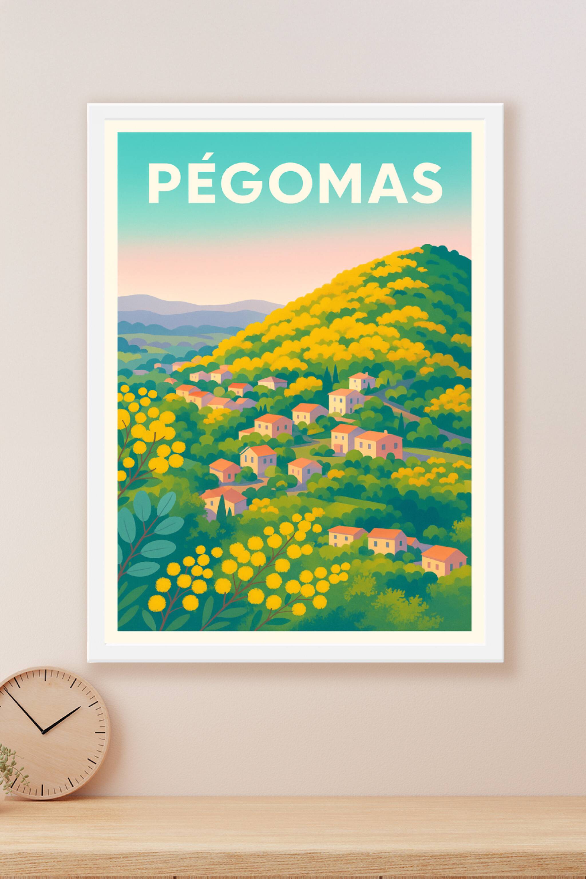 Apportez une touche de nature et de douceur provençale à votre intérieur avec ce poster illustré vibrant, mettant en scène le village de Pégomas et...
