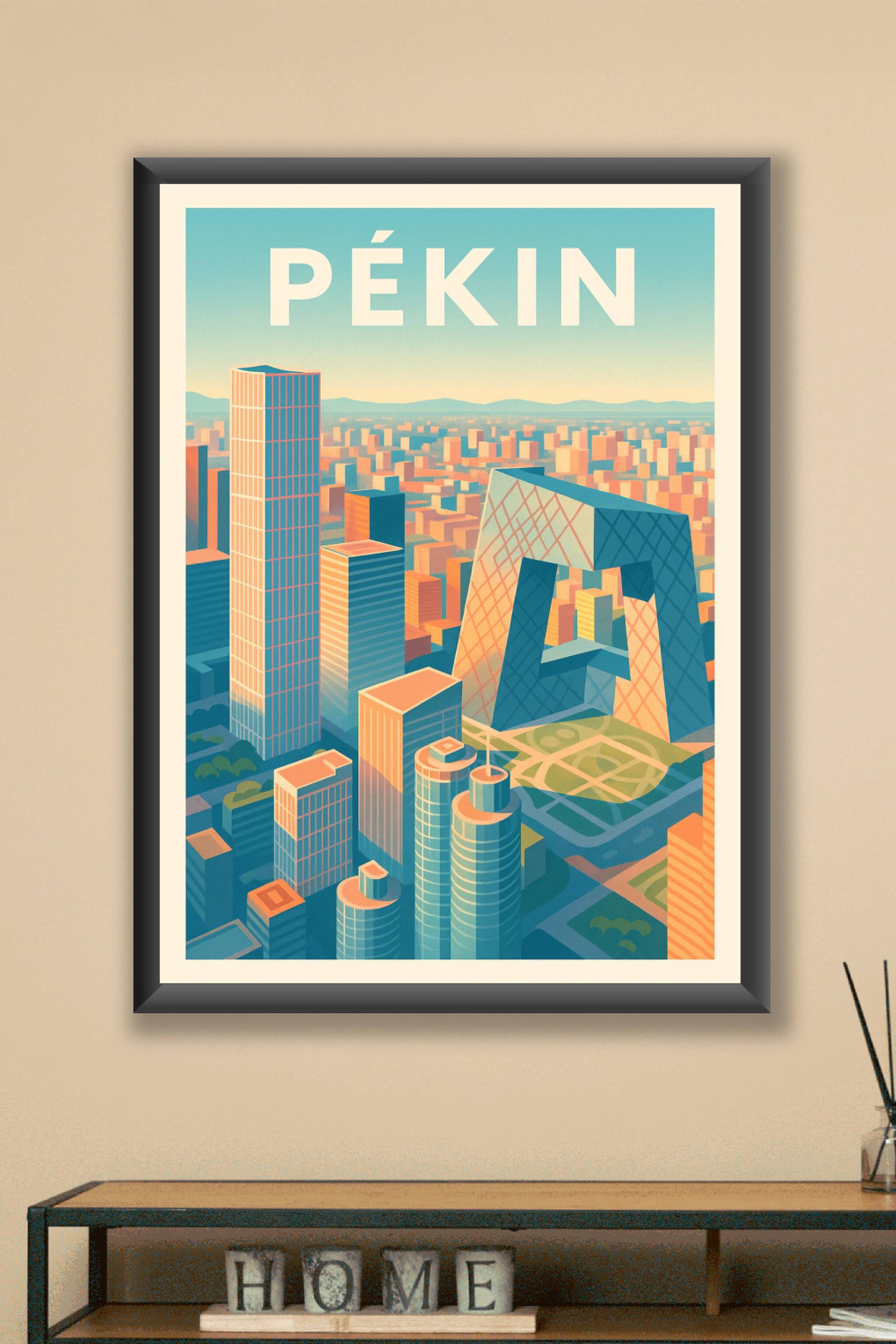 Découvrez l'effervescence architecturale de Pékin avec cette affiche illustrée qui capture la modernité et le dynamisme de la capitale chinoise. Ce...