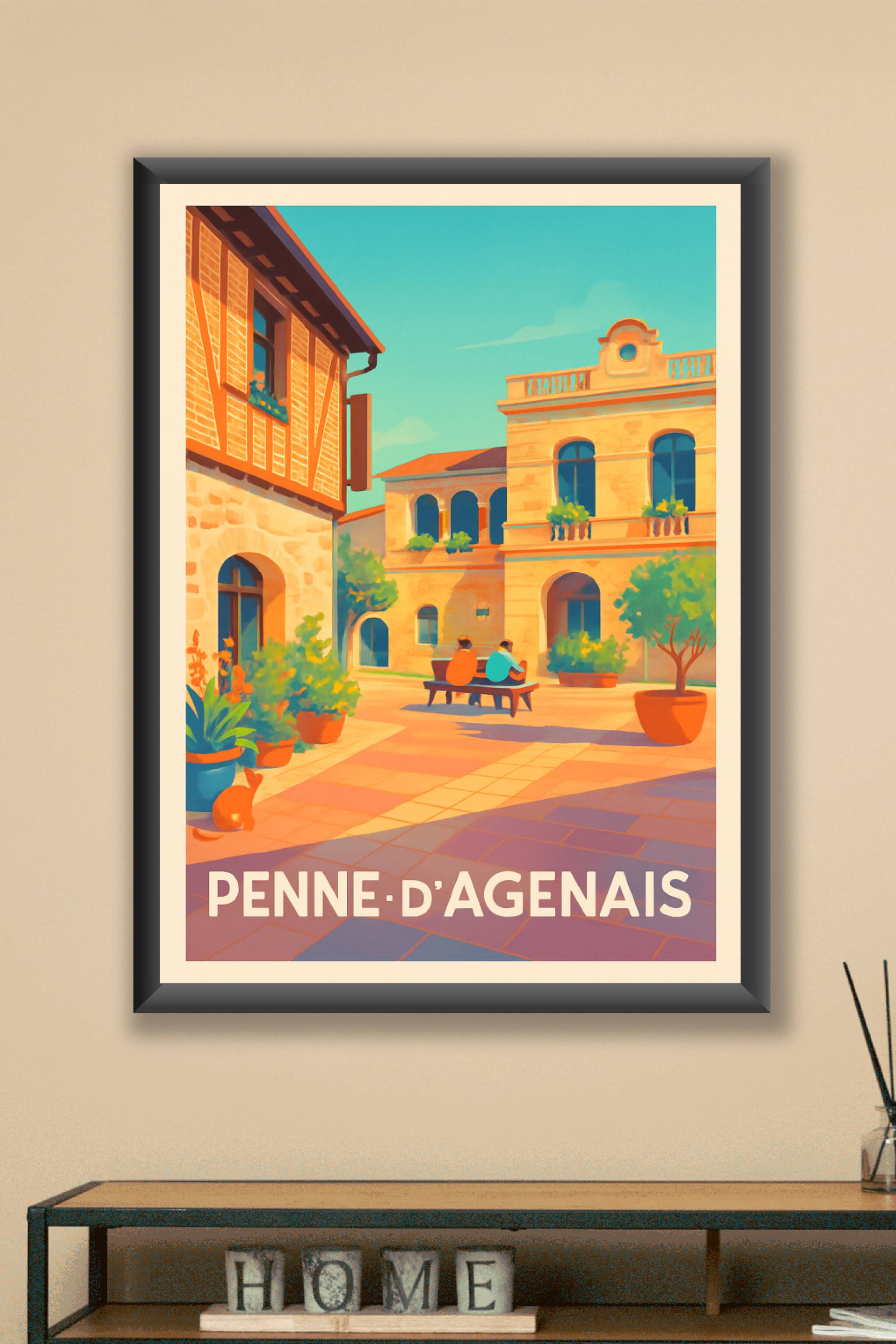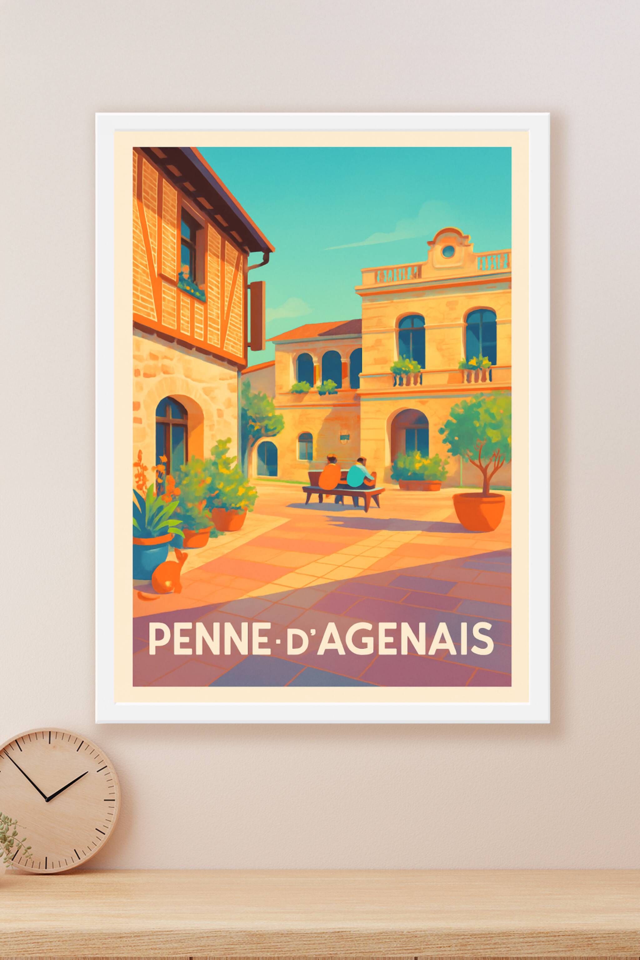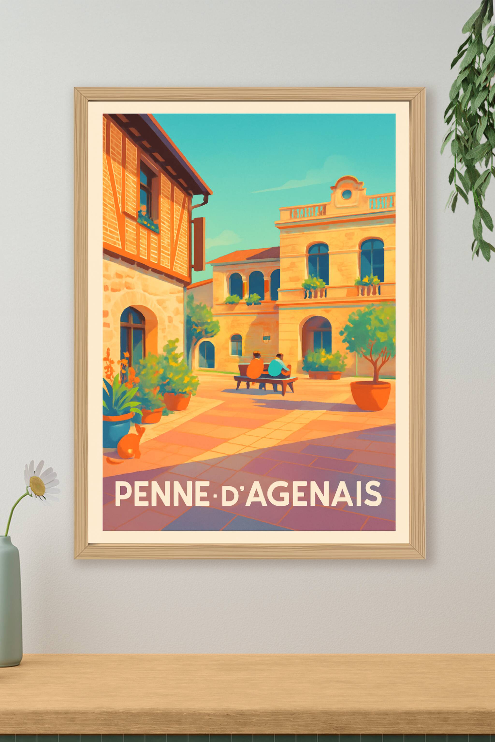 Découvrez l'atmosphère paisible et ensoleillée de Penne-d'Agenais avec cette affiche artistiquement illustrée d'une place typique, sublimée par des...