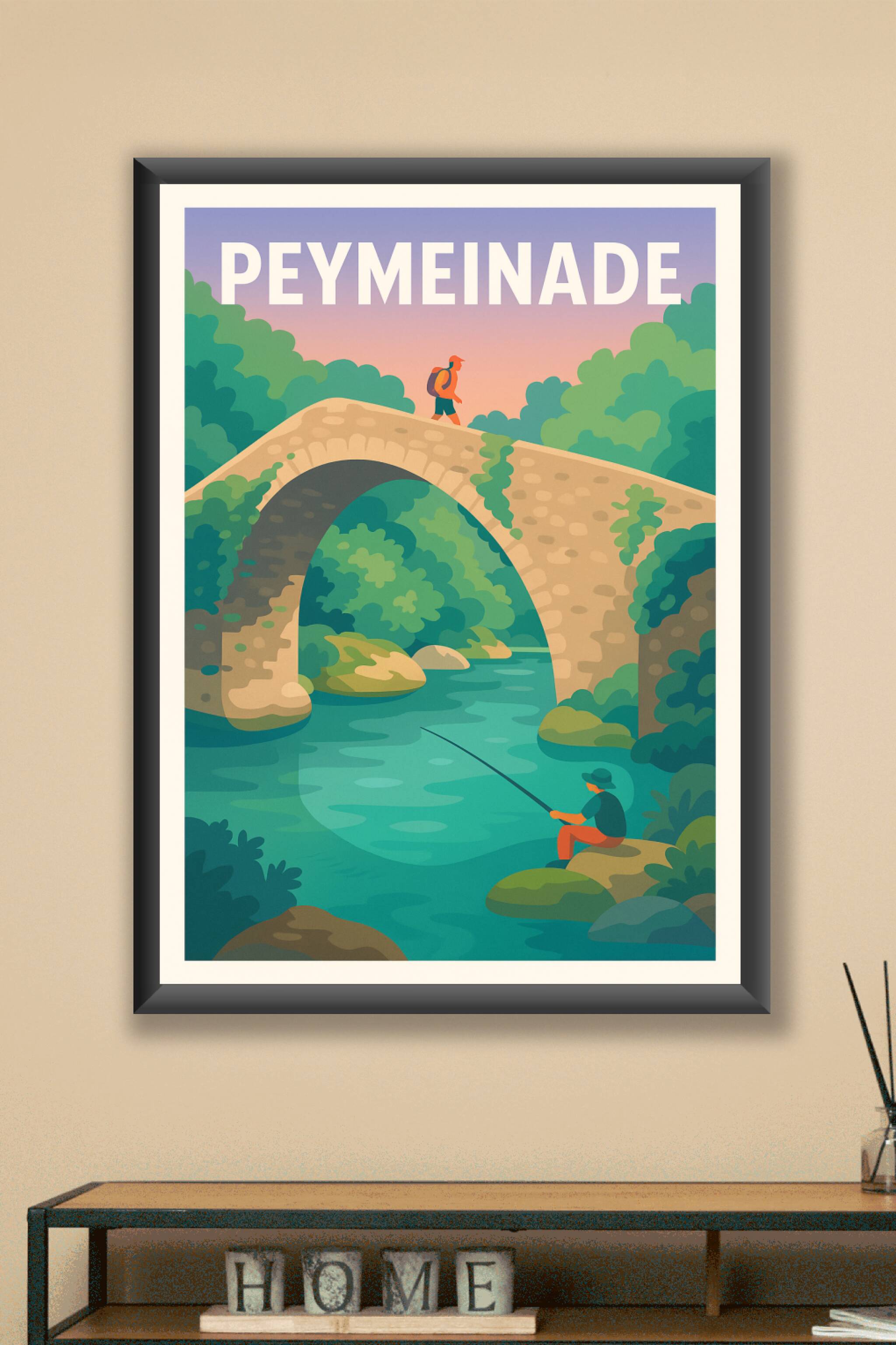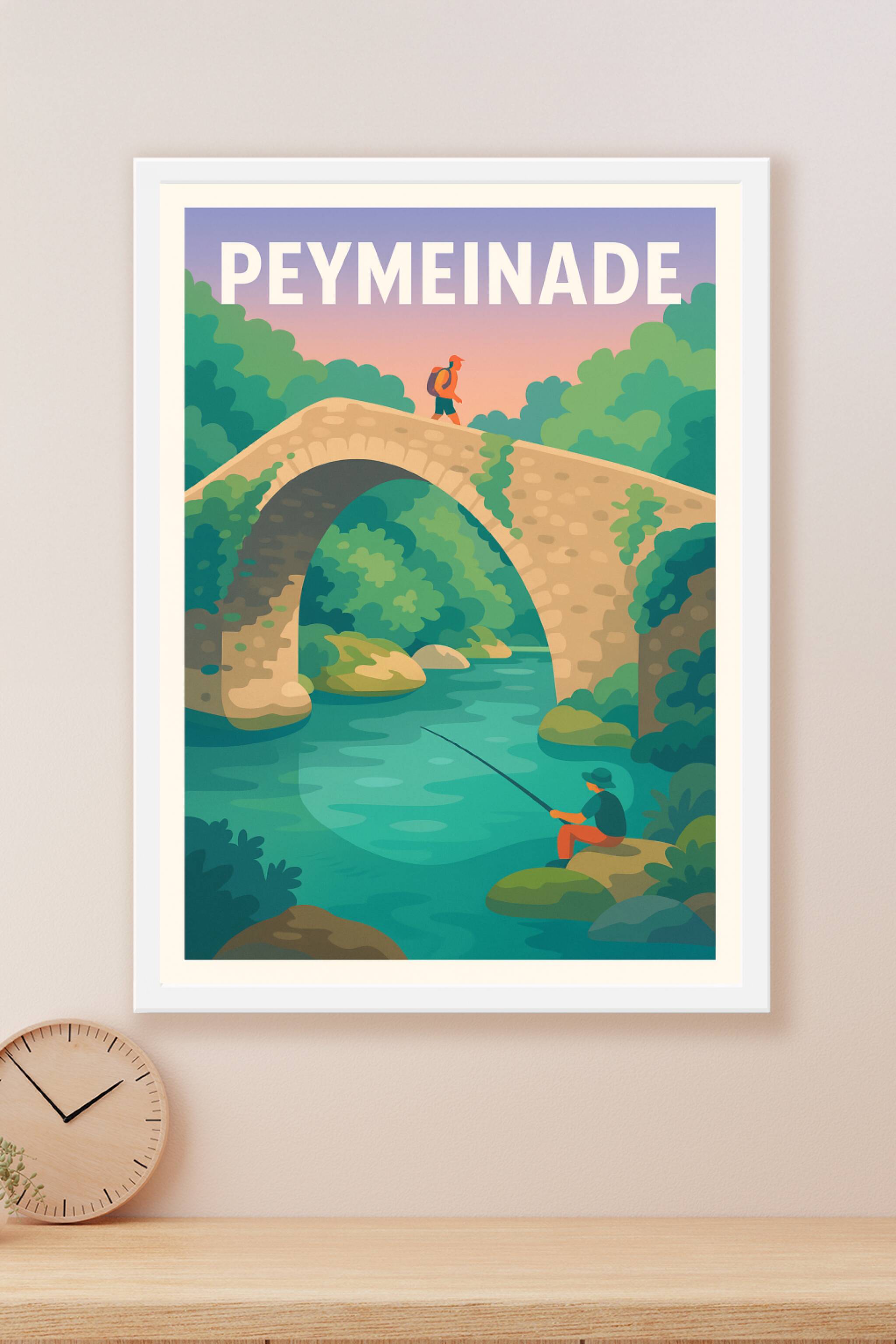 Découvrez l'ambiance paisible de Peymeinade avec cette superbe affiche illustrant un paysage naturel typique, où un pêcheur profite du calme au bord de l'eau tandis qu'un randonneur traverse un vieux pont en pierre. Ce poster incarne la beauté des espaces verts et la douceur de vivre de cette charmante commune. Imprimée en tirage "Fine Art" sur papier 305g coton, cette affiche garantit une qualité d'impression irréprochable et des couleurs éclatantes. Disponible en formats A1 à A4, avec ou sans cadre, elle est parfaite pour apporter une touche bucolique et apaisante à votre intérieur. Un produit 100% fabriqué en France, idéal pour les amateurs de décoration et les amoureux des paysages provençaux.