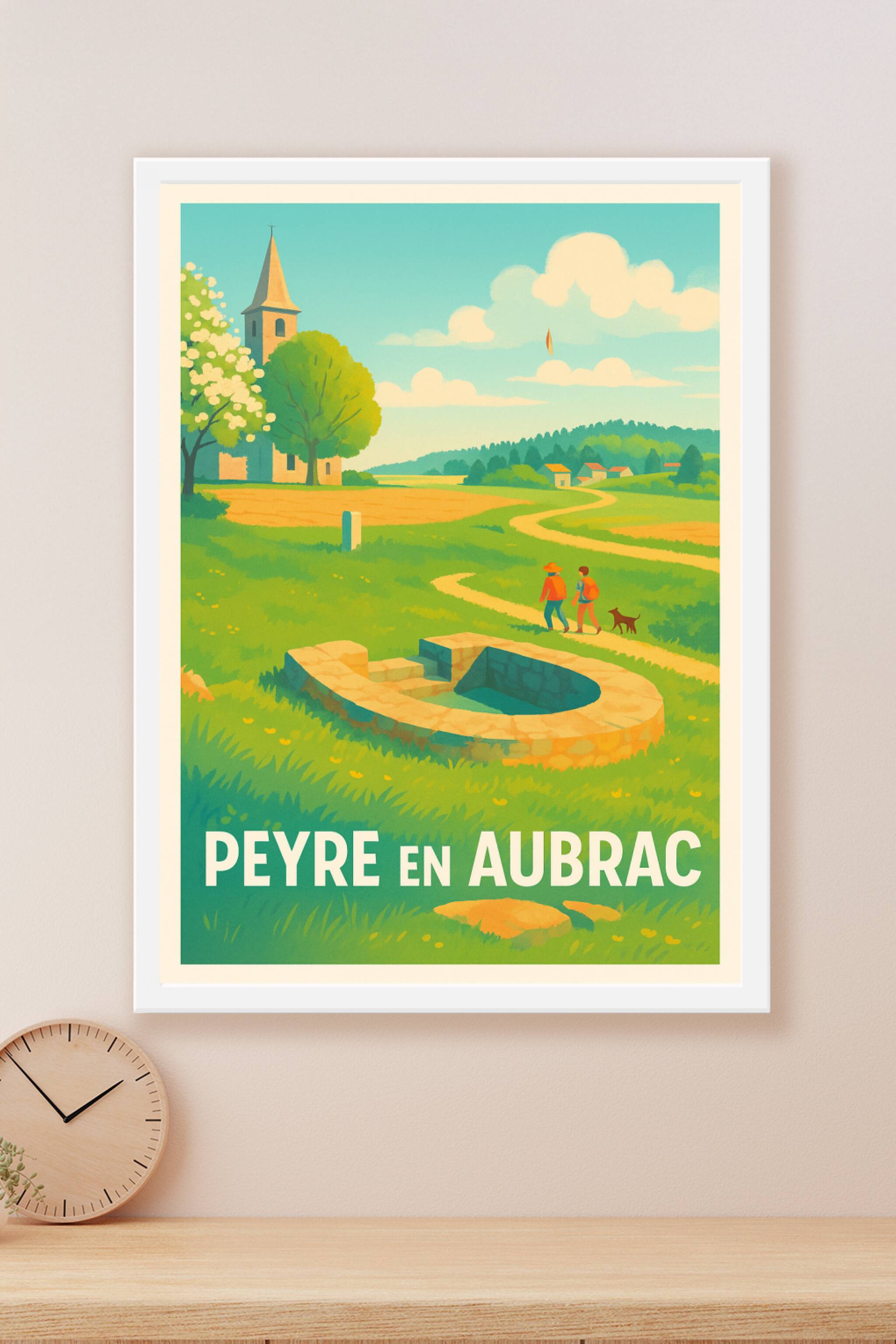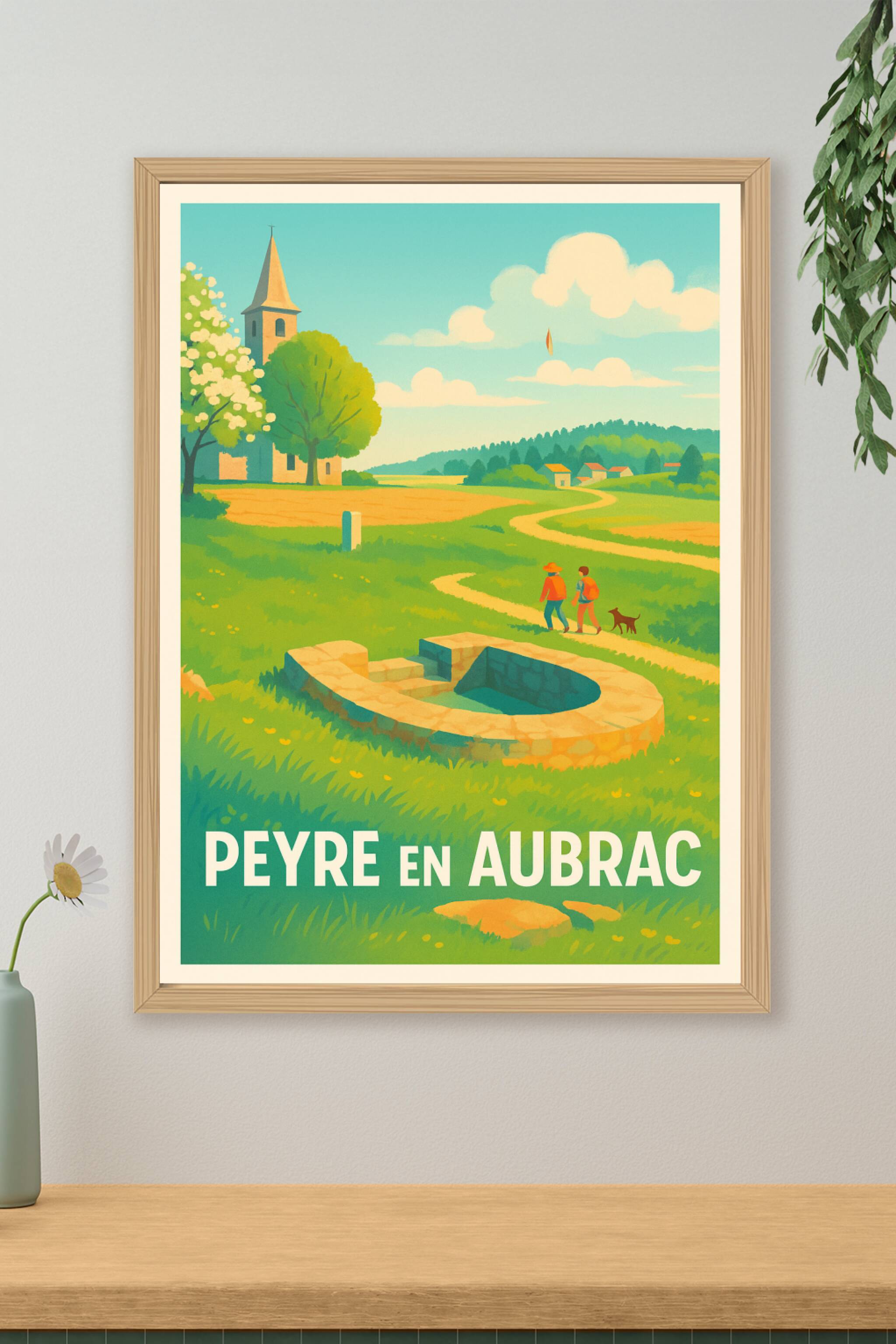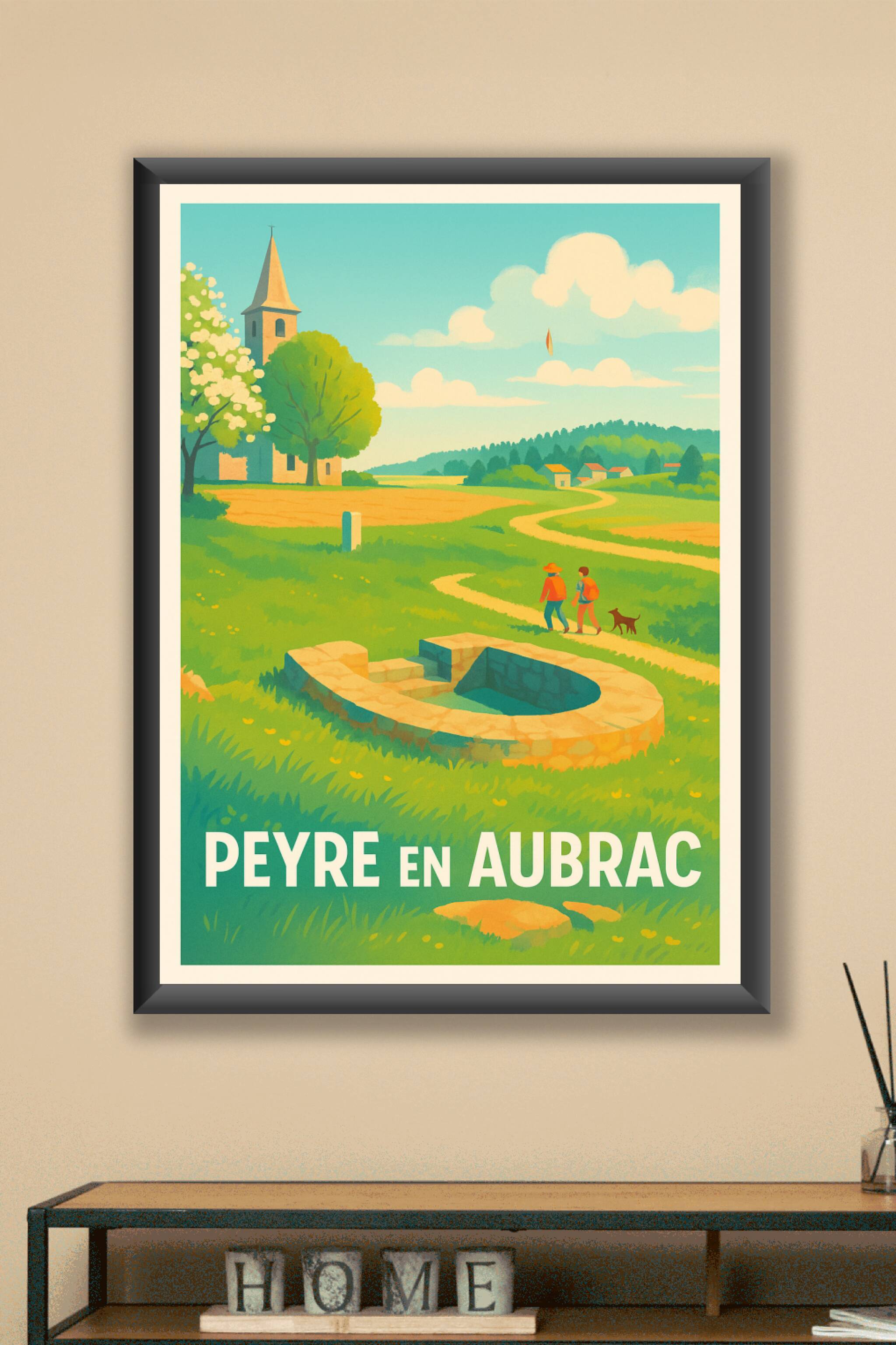 Découvrez la sérénité et le charme rural de Peyre en Aubrac à travers cette affiche artistique qui capture un moment paisible au cœur des paysages ...