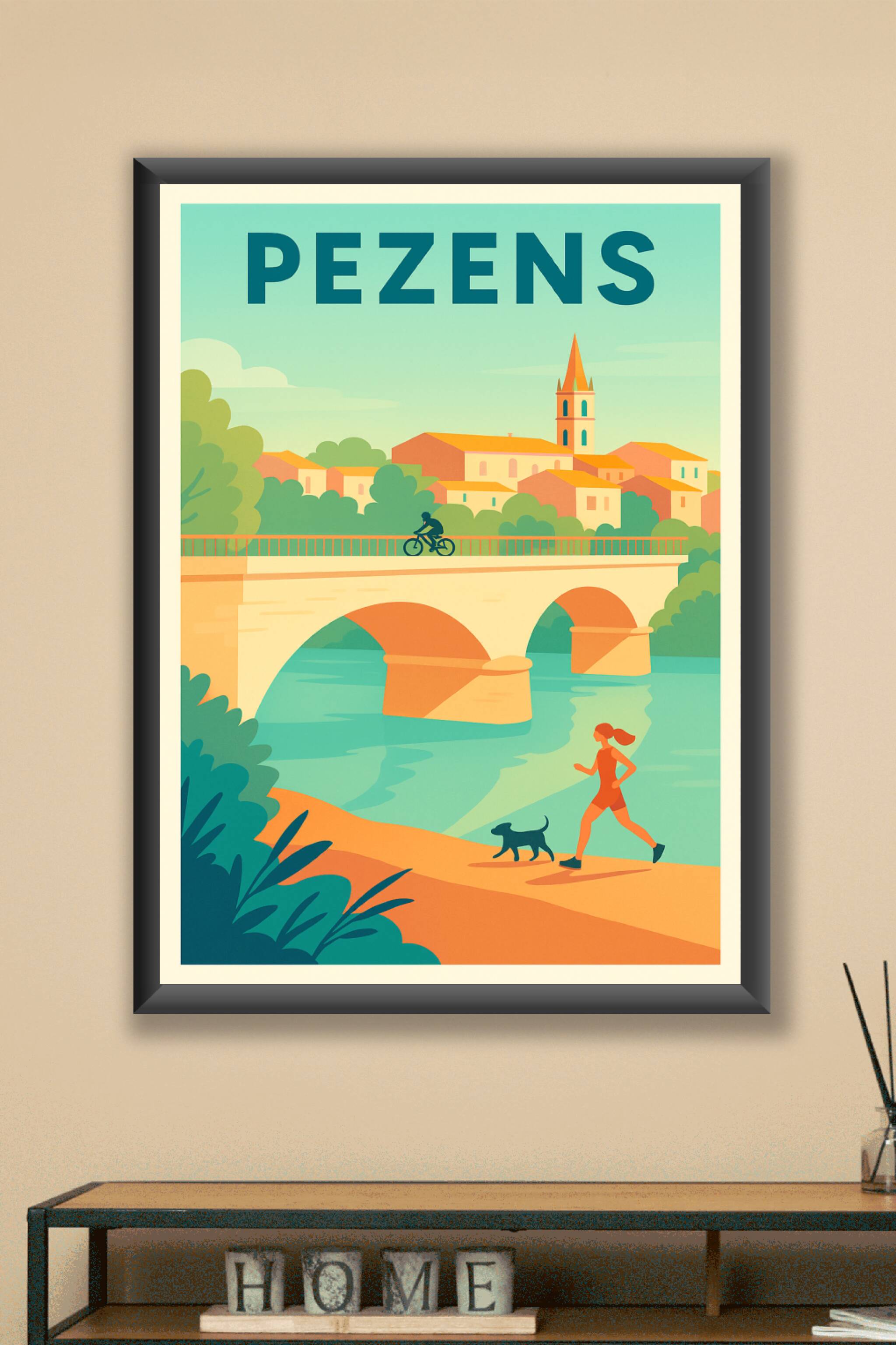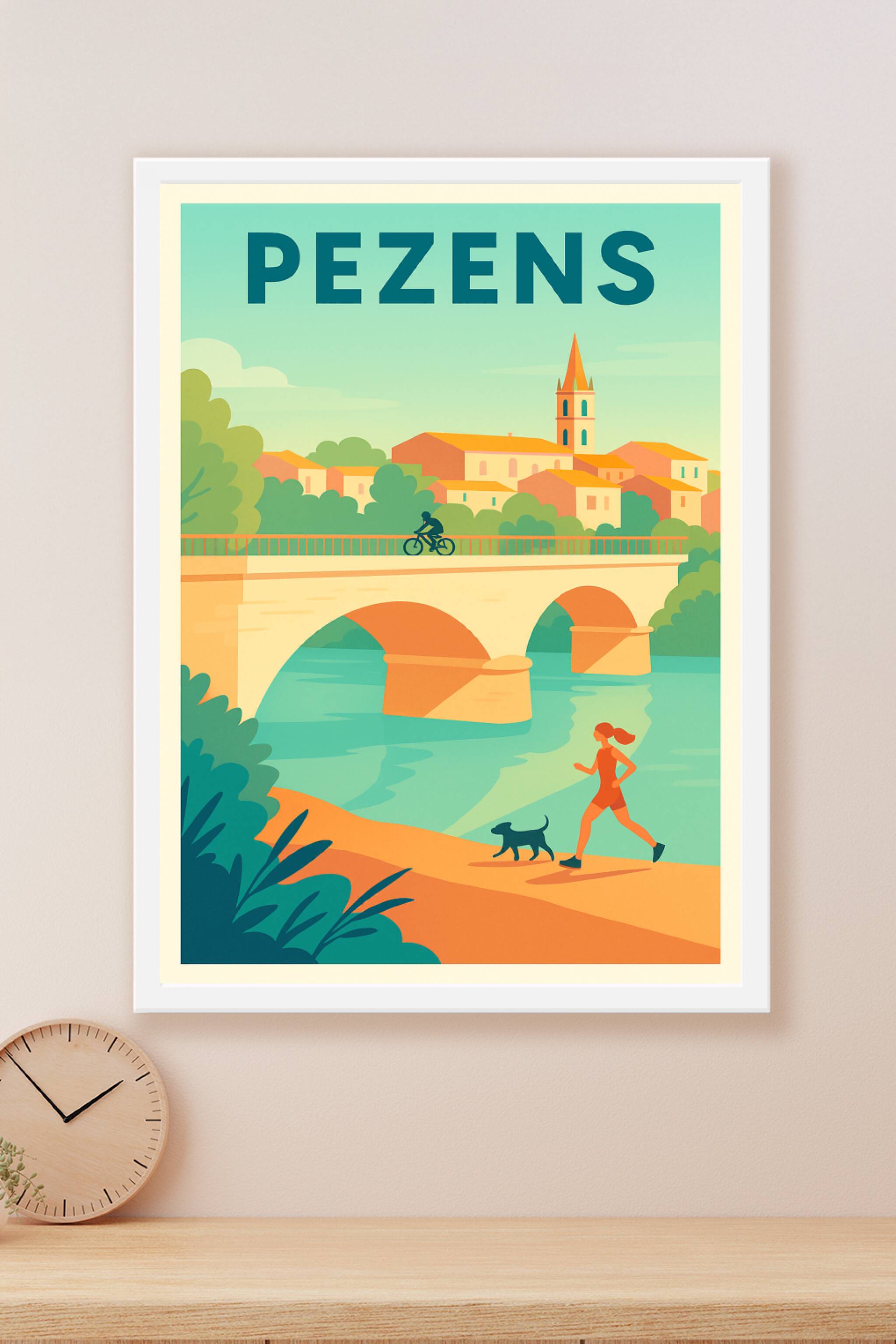 Découvrez le charme tranquille de Pezens à travers cette affiche illustrée célébrant la douceur de vivre entre paysages naturels et architecture locale. L'image met en scène un pont historique enjambant une rivière paisible, soulignant l'équilibre parfait entre nature et village. Ce poster est imprimé en tirage "Fine Art" sur papier coton 305g pour garantir une qualité d'impression exceptionnelle. Disponible en formats A1 à A4, avec ou sans cadre, cette affiche apportera une touche élégante et apaisante à votre décoration intérieure ou un cadeau unique aux amoureux de Pezens. Profitez d'une fabrication 100% française pour sublimer votre espace avec ce poster à la fois moderne et chaleureux.
