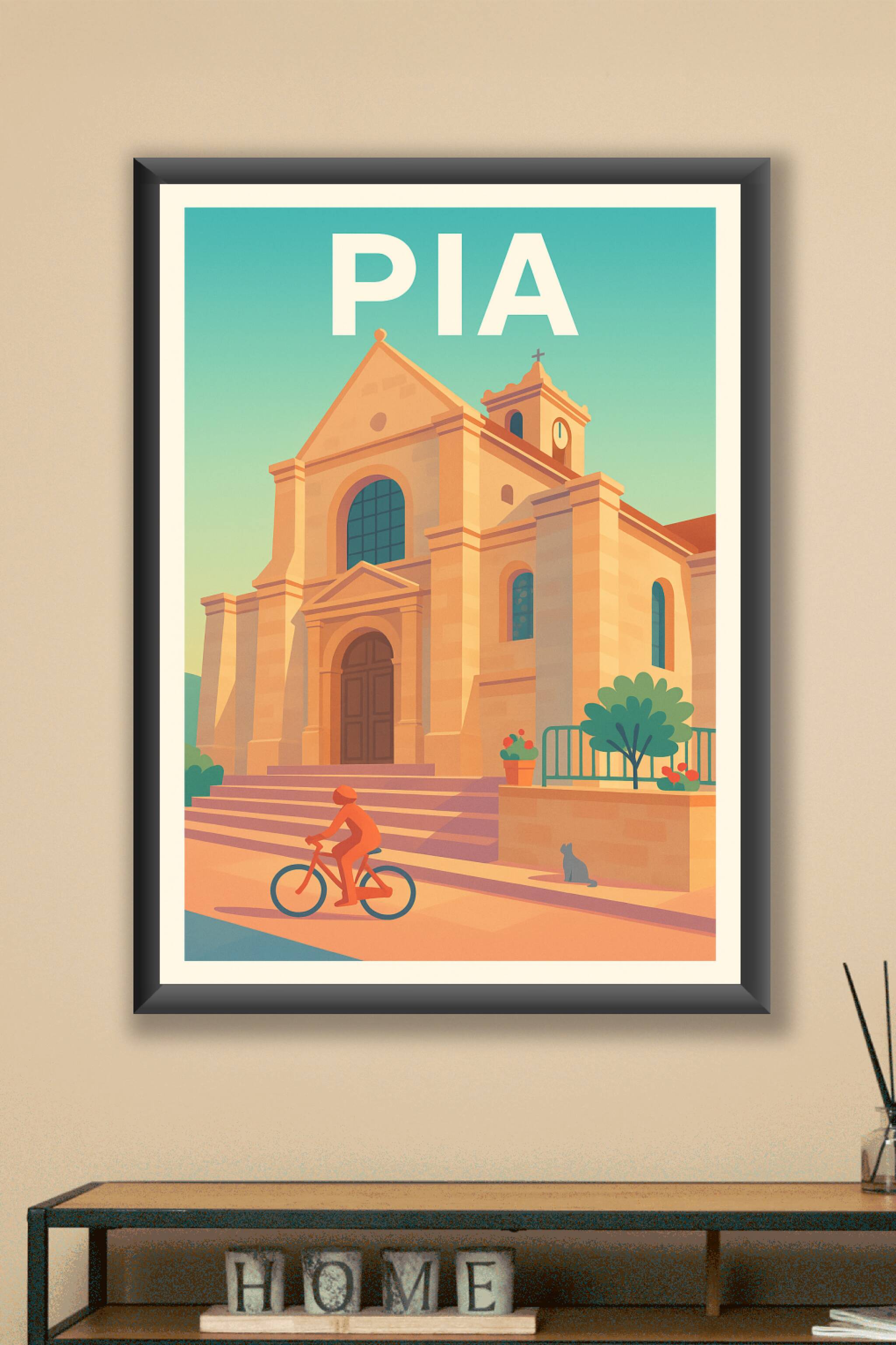 Découvrez l'élégance intemporelle de Pia à travers cette affiche illustrée qui met en scène une architecture locale baignée par la lumière douce du...