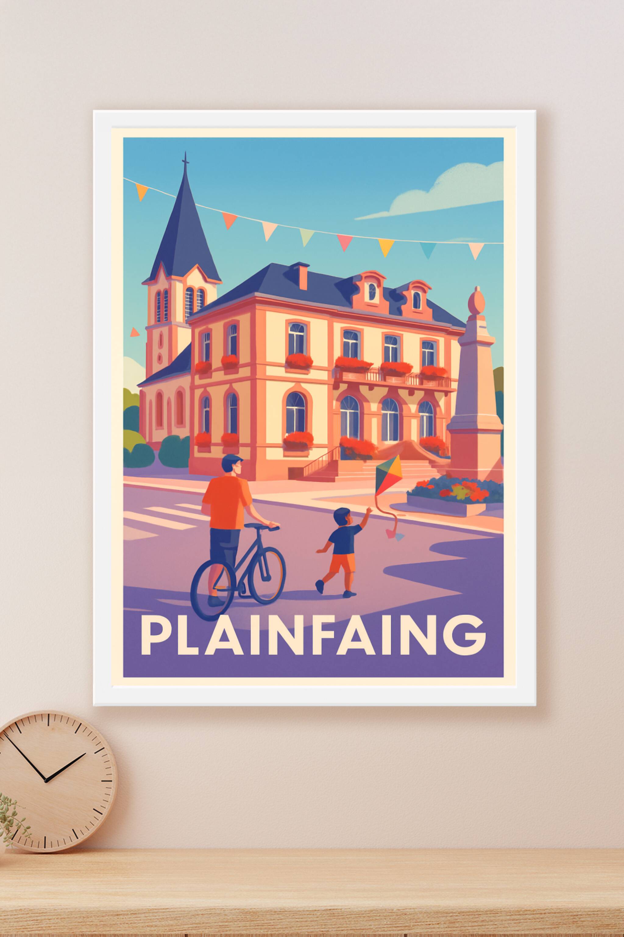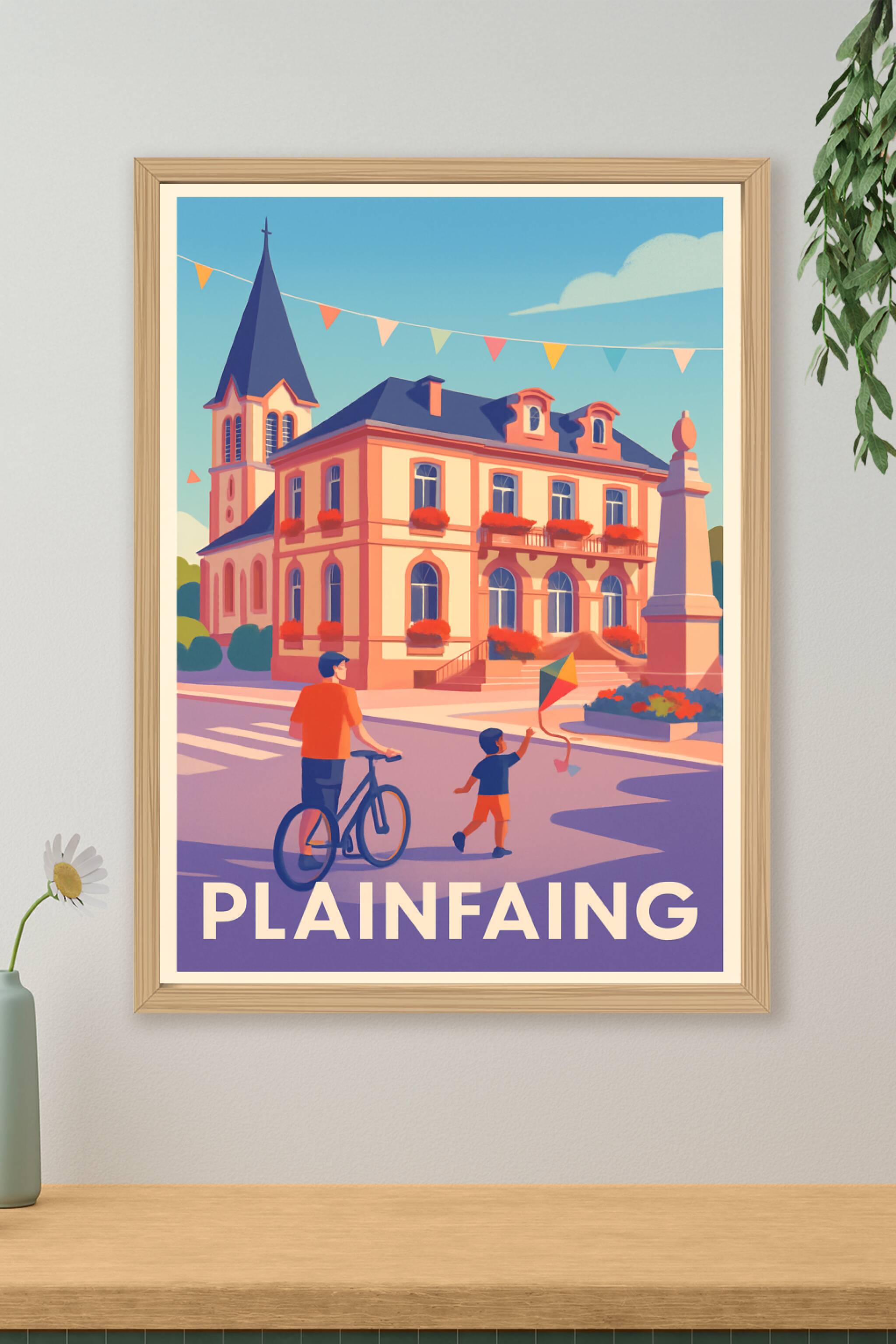 Offrez-vous une immersion dans la charmante atmosphère de Plainfaing avec cette affiche illustrée mettant en scène un moment de vie paisible, entre...