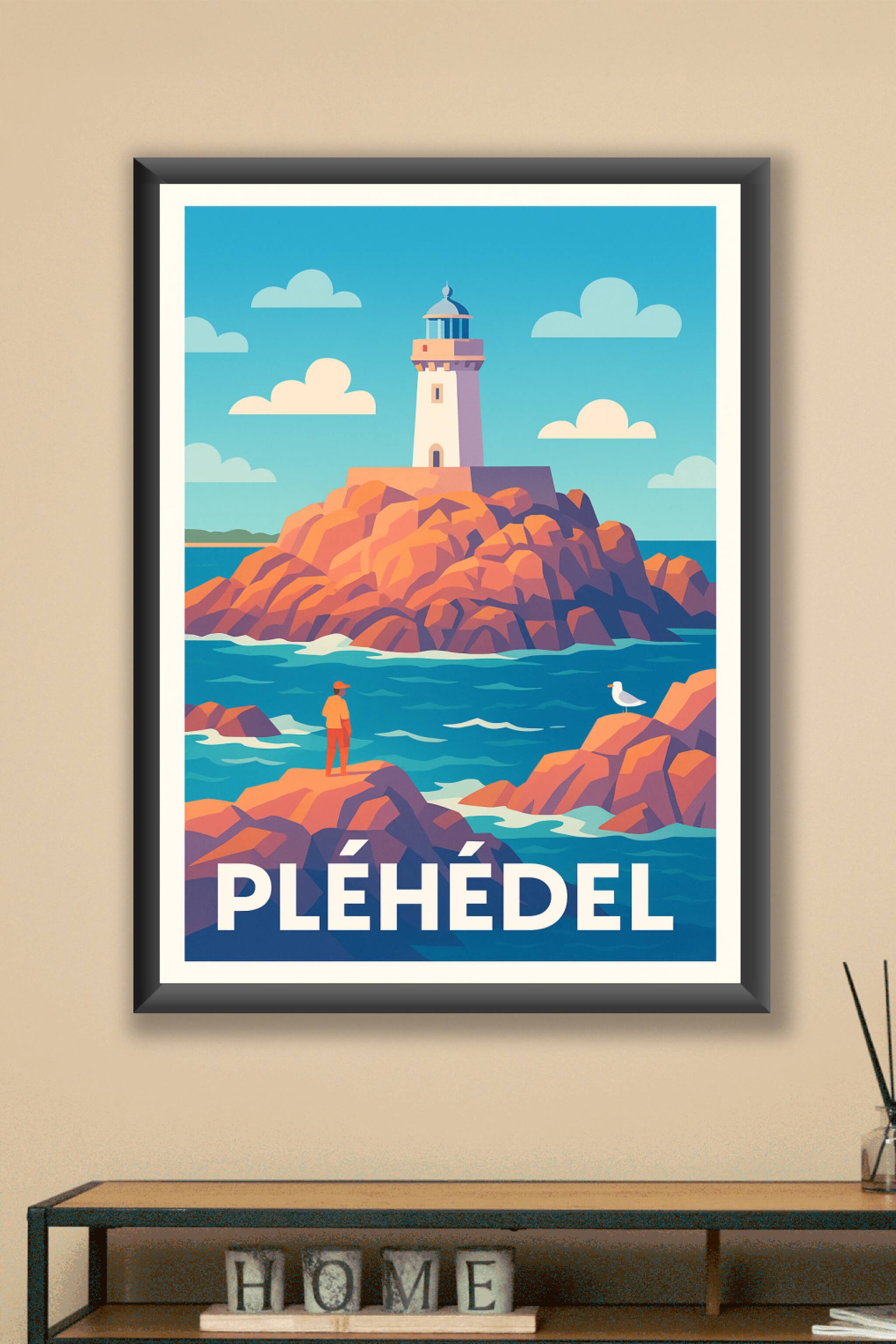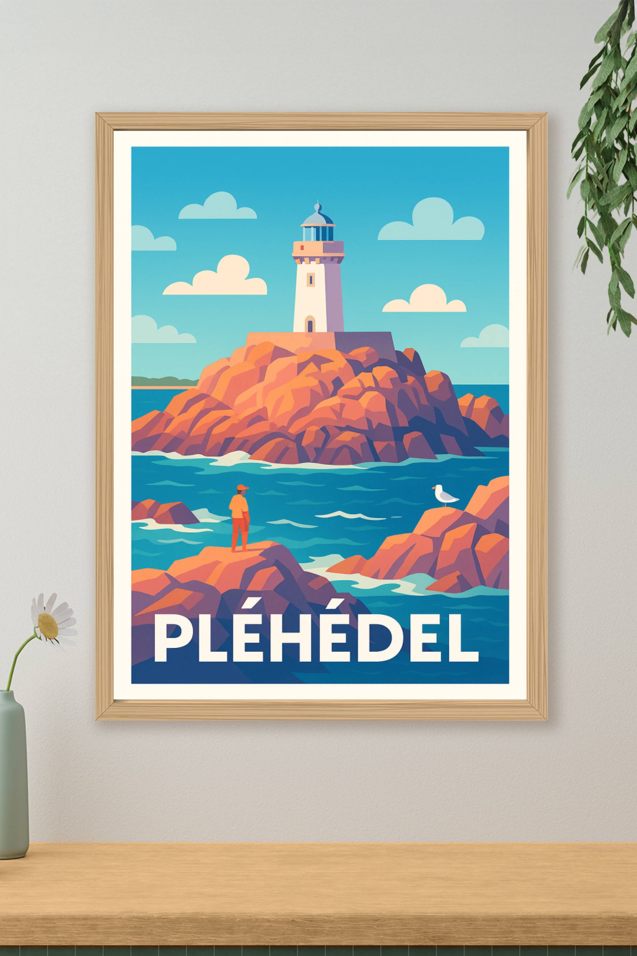 Apportez un souffle marin et une touche d'évasion à votre décoration avec cette affiche illustrant le phare emblématique de Pléhédel, posé sur un î...