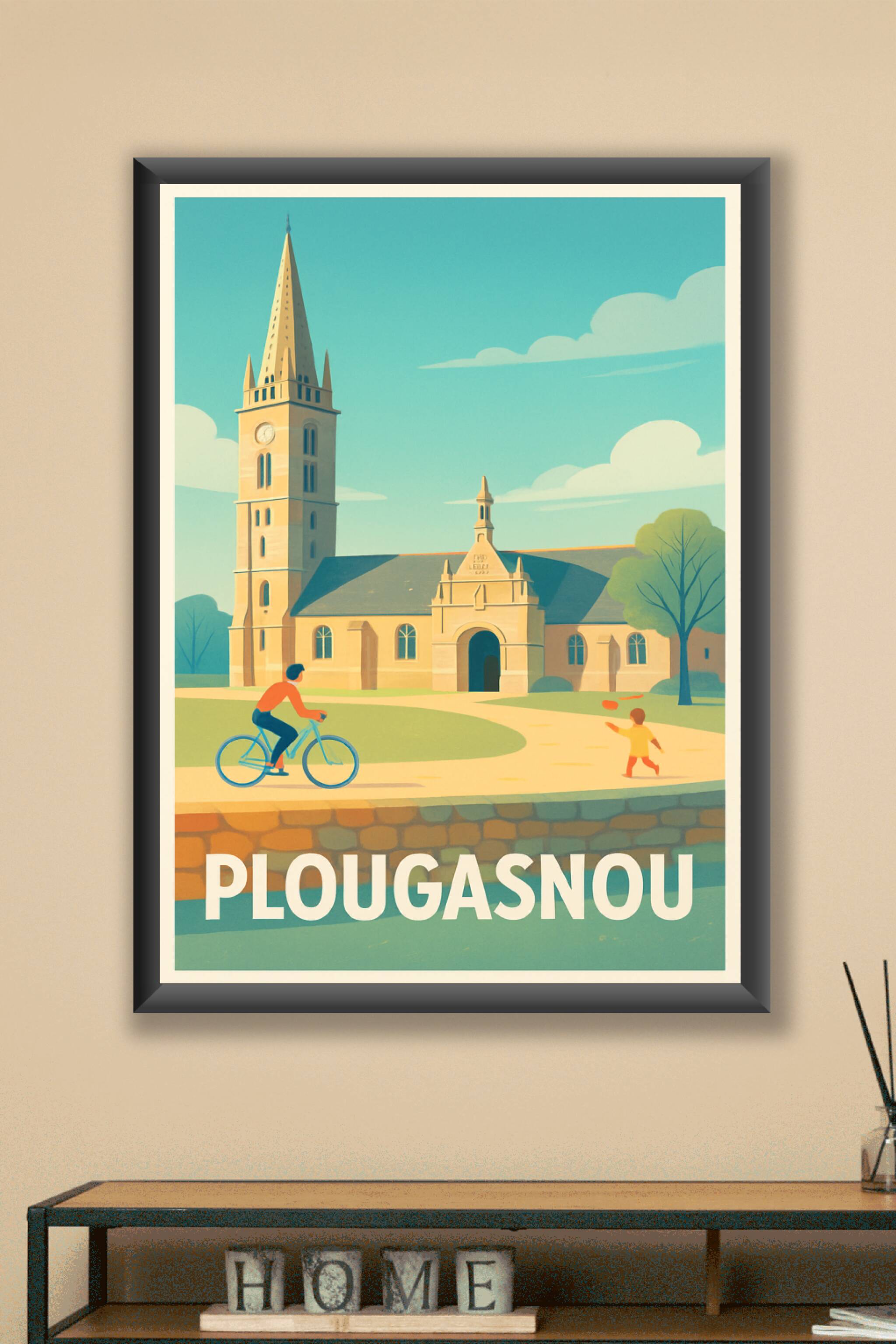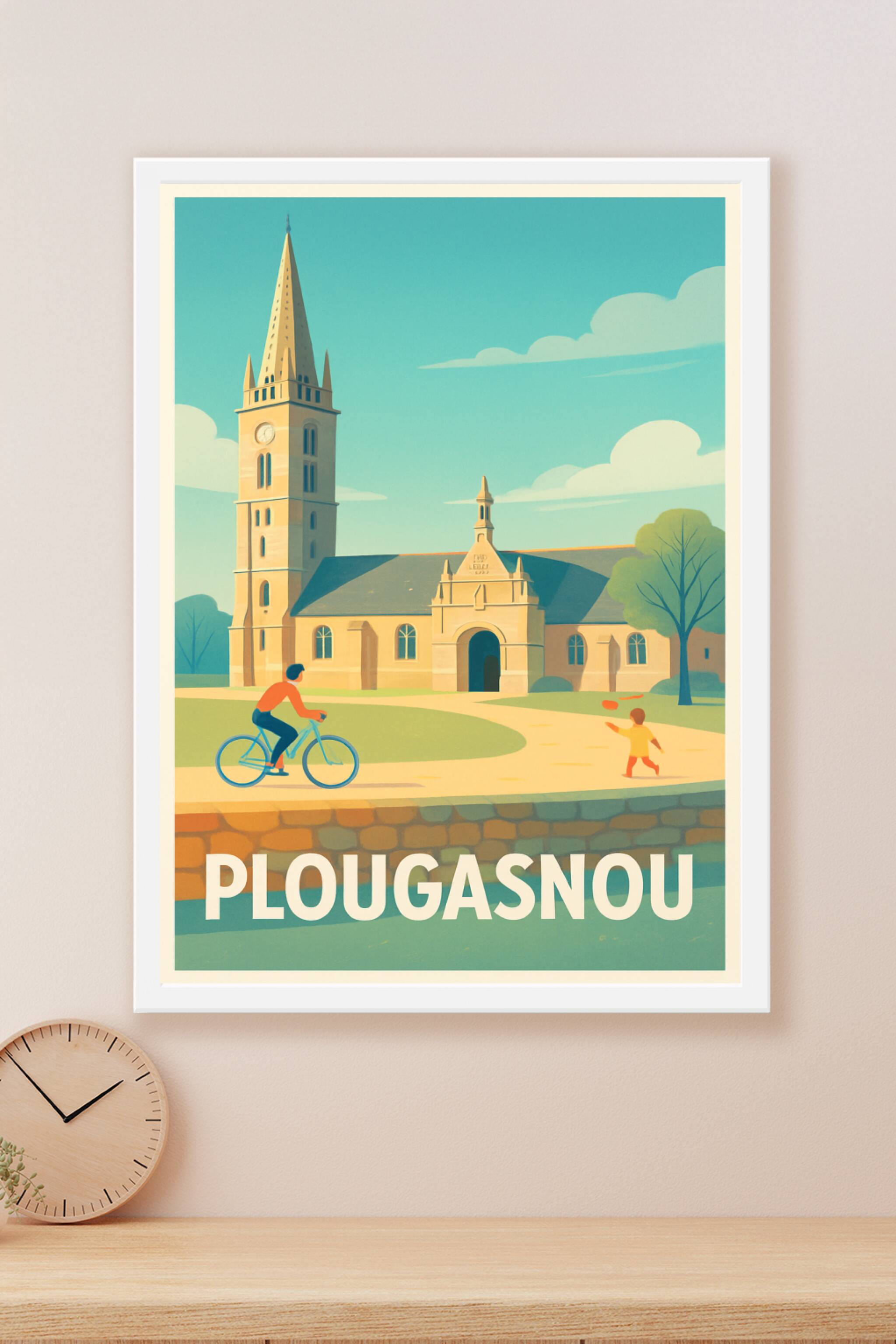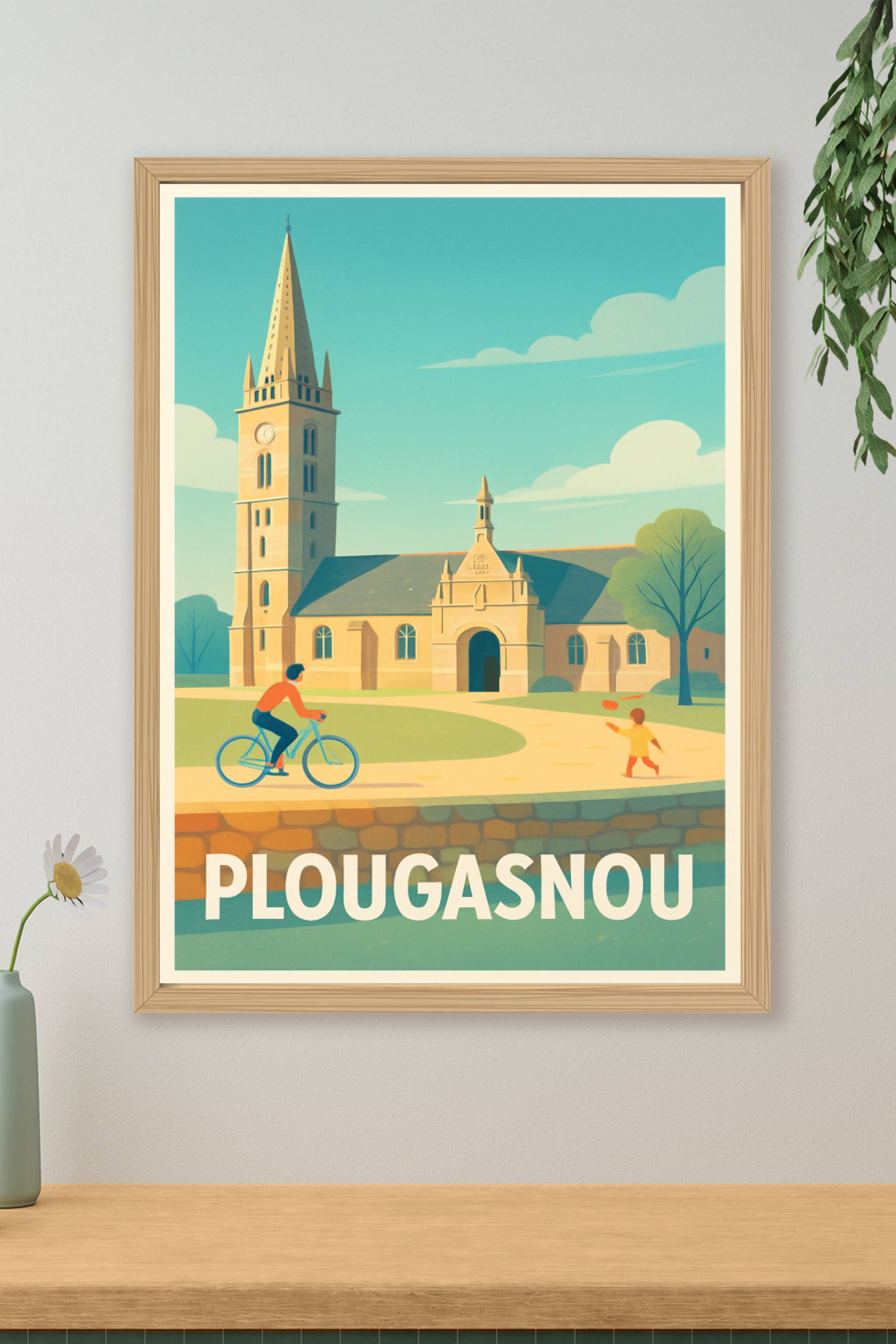 Découvrez l'ambiance paisible et authentique de Plougasnou avec cette affiche poétique illustrant son église emblématique et la douceur de vie loca...