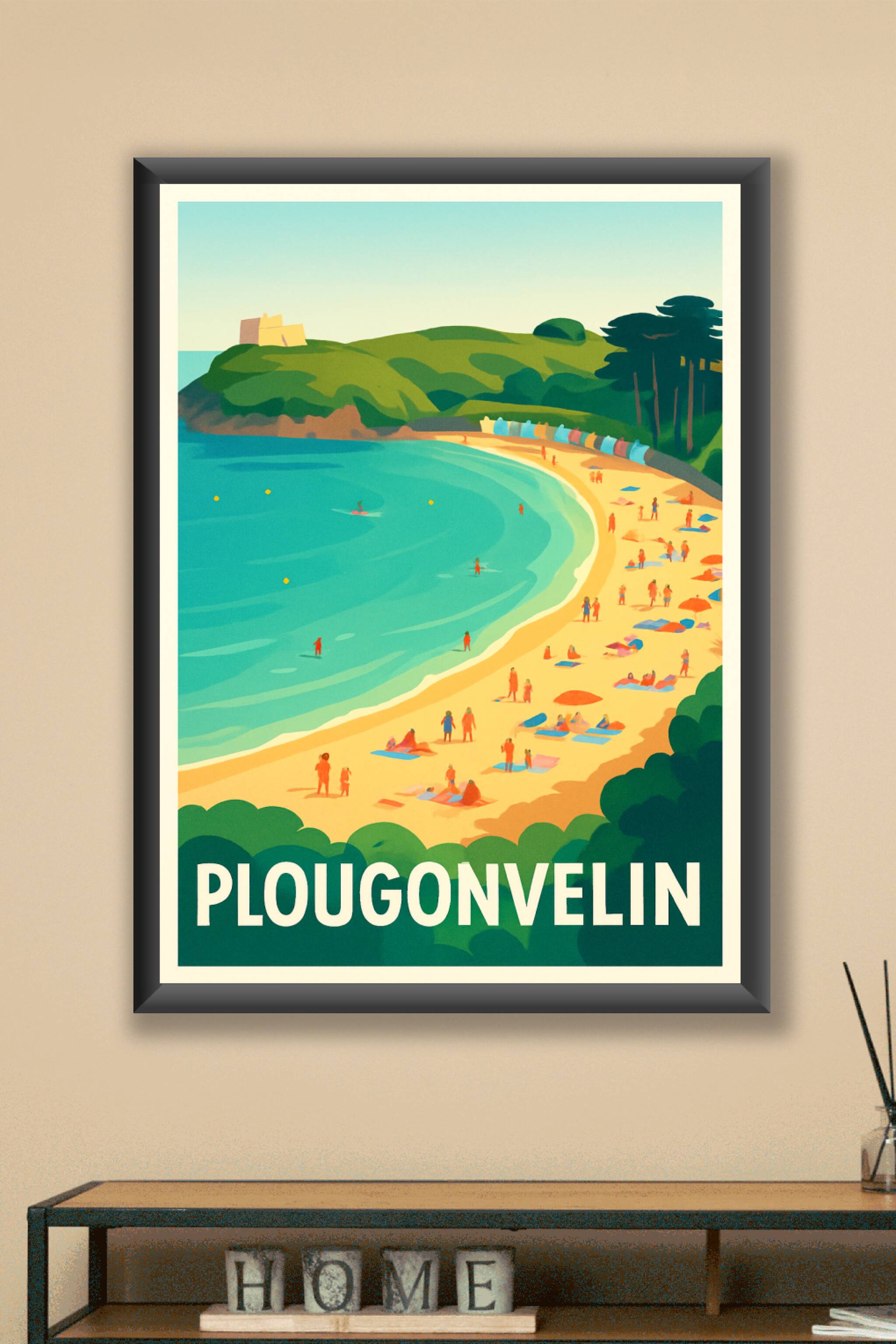 Découvrez la beauté naturelle de Plougonvelin avec cette affiche plein de fraîcheur et de lumière, représentant une plage animée bordée de dunes vertes et d’une mer turquoise. Cet artwork évoque les journées d’évasion, le calme de la Bretagne et la magie de ses paysages côtiers. Ce poster est imprimé en tirage "Fine Art" sur un papier 305g coton offrant une qualité d'impression exceptionnelle, avec des couleurs vives et durables. Disponible en formats A1 à A4, avec ou sans cadre, il s'intégrera parfaitement dans votre intérieur, apportant une touche de nature et d’évasion. Offrez-vous ou offrez à un proche ce tirage premium, made in France, pour sublimer votre décoration ou conserver un souvenir précieux de Plougonvelin.