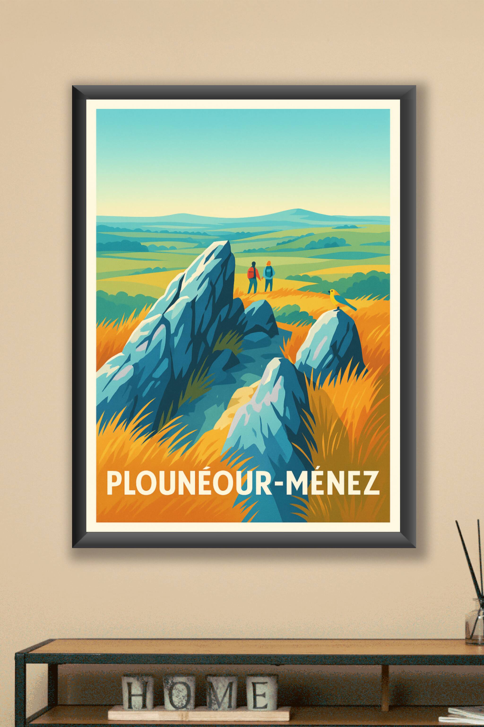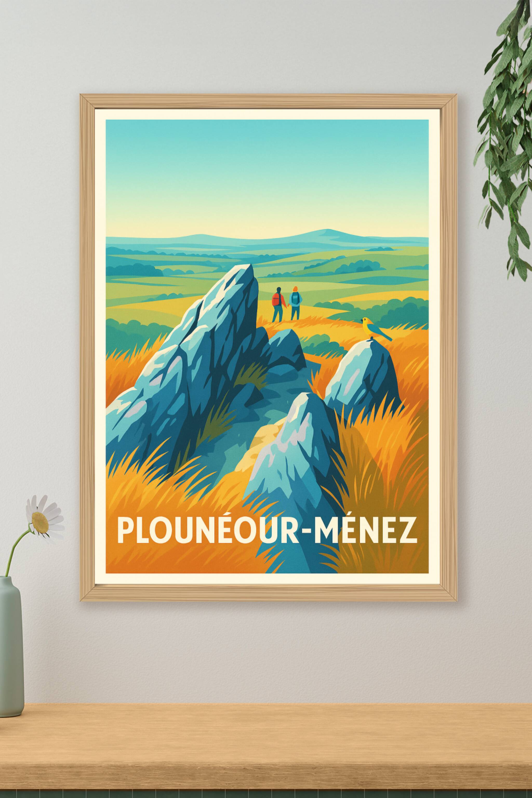 Découvrez l'esprit sauvage et authentique des Monts d'Arrée avec cette affiche illustrée aux couleurs vibrantes. Ce poster évoque les vastes étendues et les formations rocheuses emblématiques de Plounéour-Ménez, invitant à l'aventure et à la découverte en pleine nature. Imprimée en tirage "Fine Art" sur un papier de haute qualité 305g coton, cette affiche sublime chaque détail avec une fidélité et une profondeur incomparables. Disponible en formats A1 à A4, avec ou sans cadre, elle se prête parfaitement à la décoration d'intérieur, apportant une touche de sérénité et de nature. Offrez-vous un morceau de Bretagne, en profitant d'une impression premium 100% fabriquée en France.