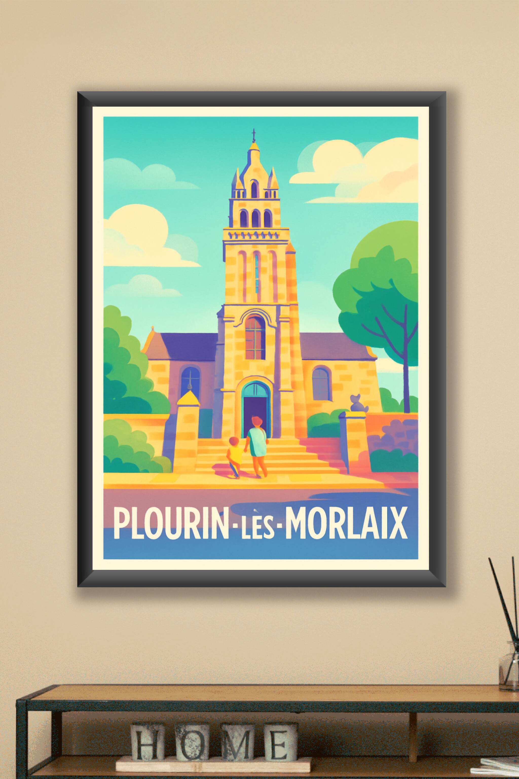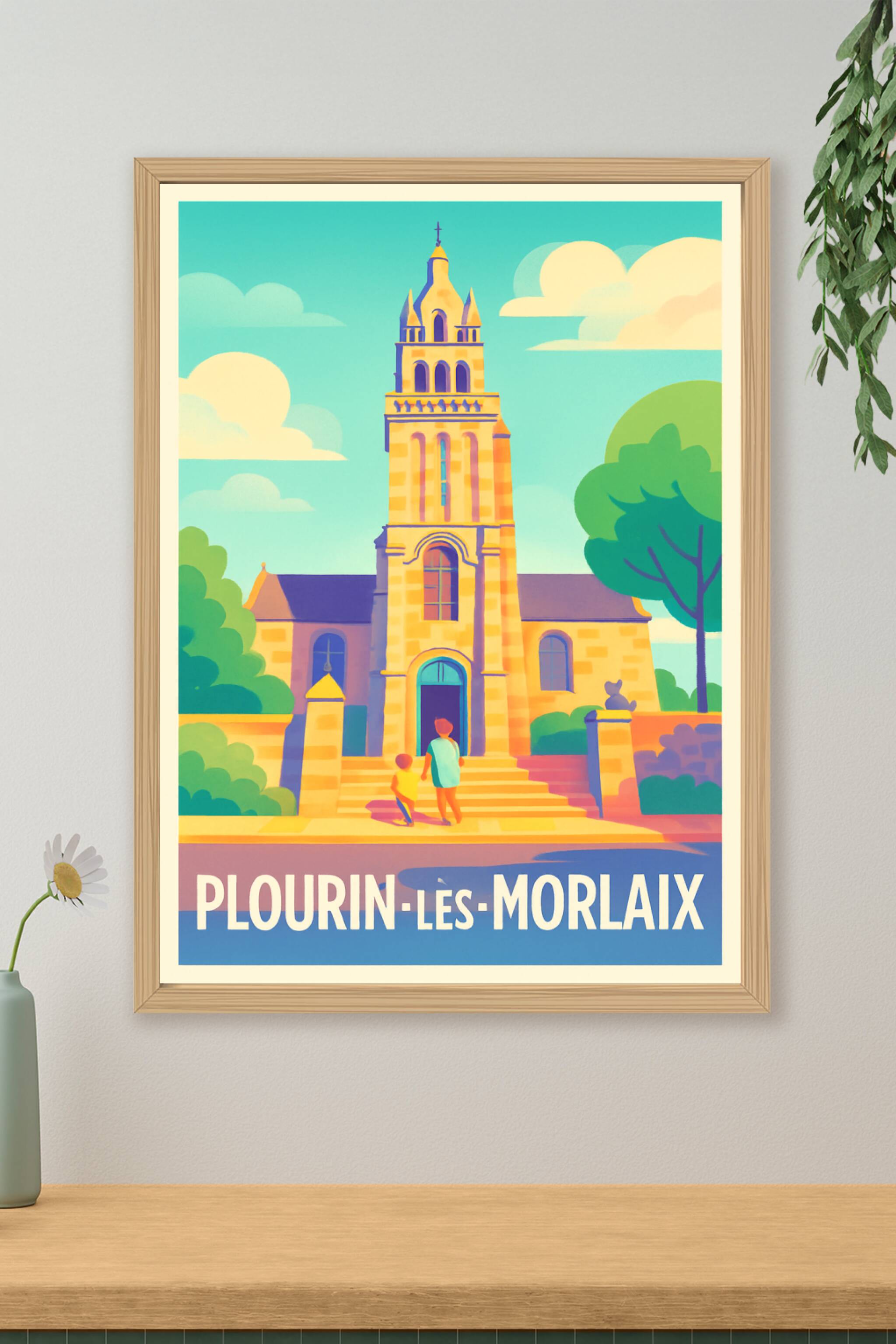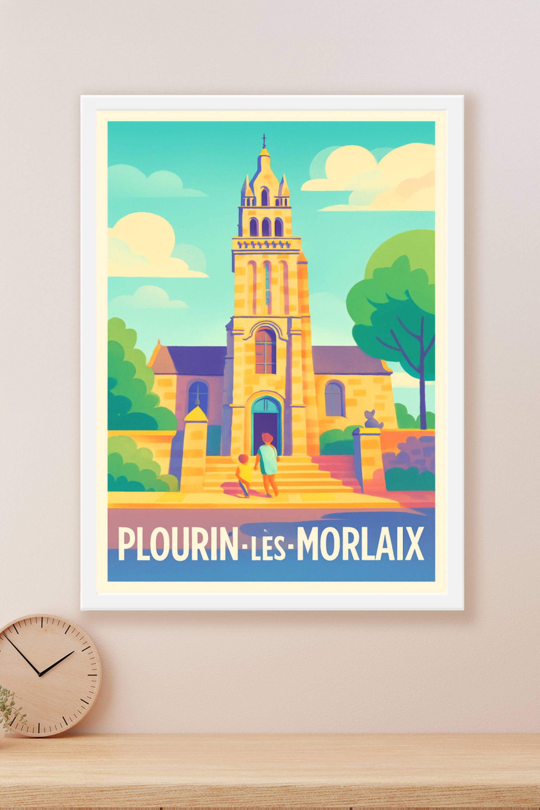 Découvrez l'ambiance paisible et authentique de Plourin-lès-Morlaix avec cette affiche captivante mettant en scène l'architecture emblématique de l...