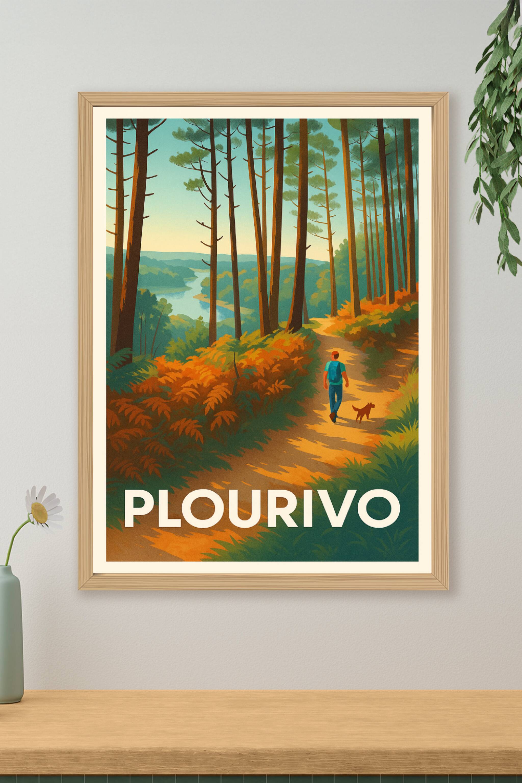 Découvrez la sérénité des paysages bretons avec cette affiche illustrant une balade paisible au cœur des forêts de Plourivo. Cette création chaleur...