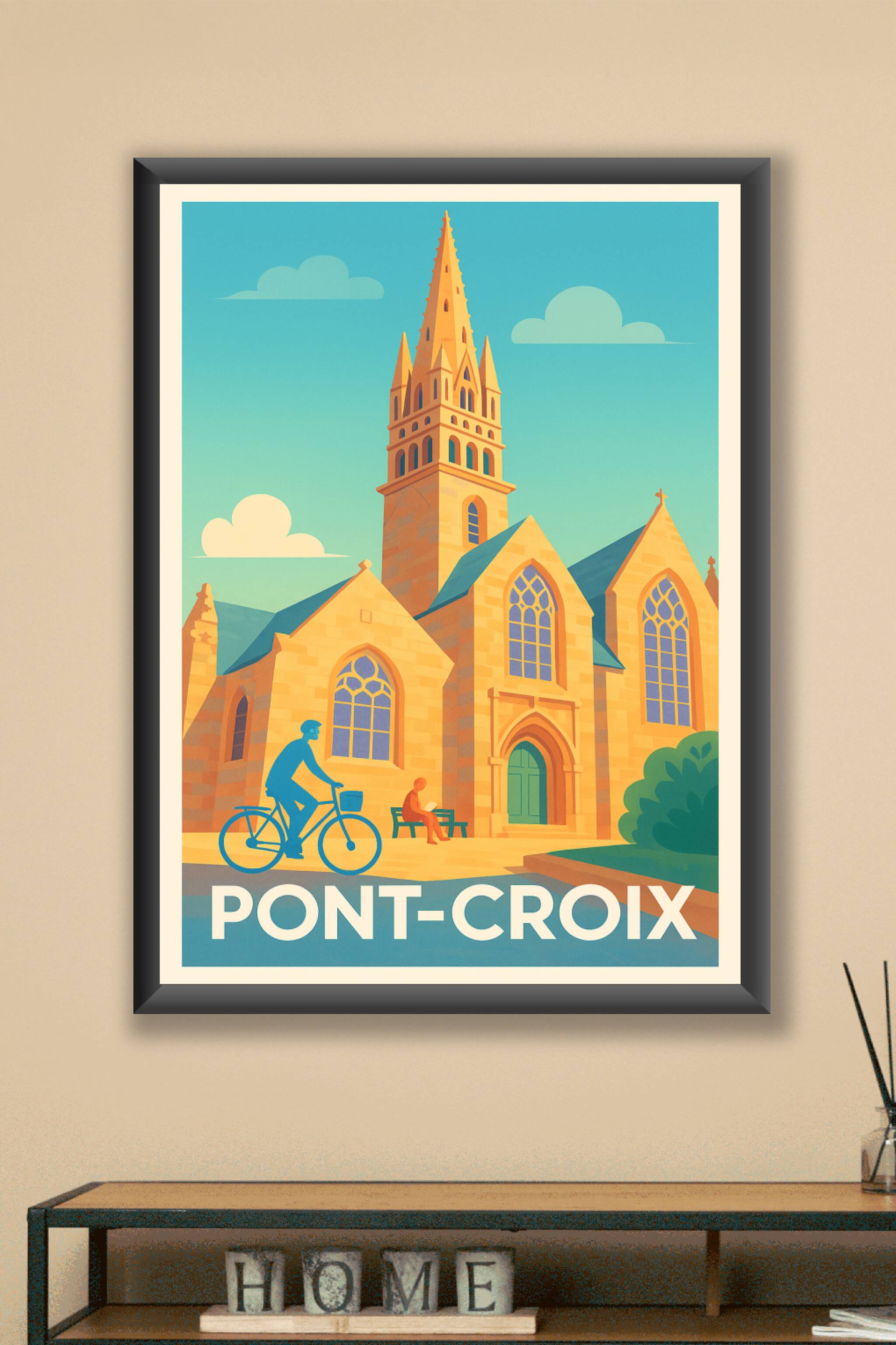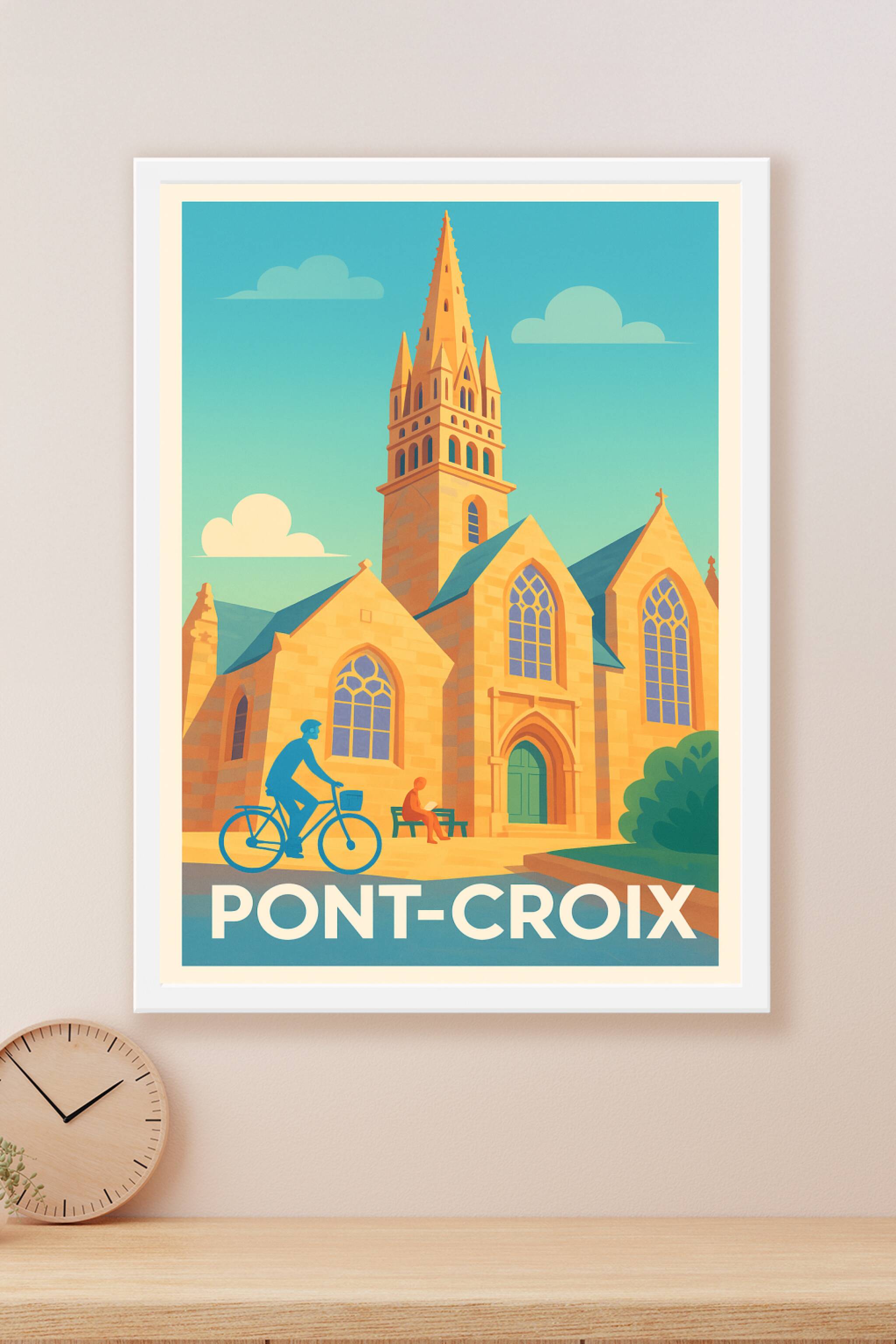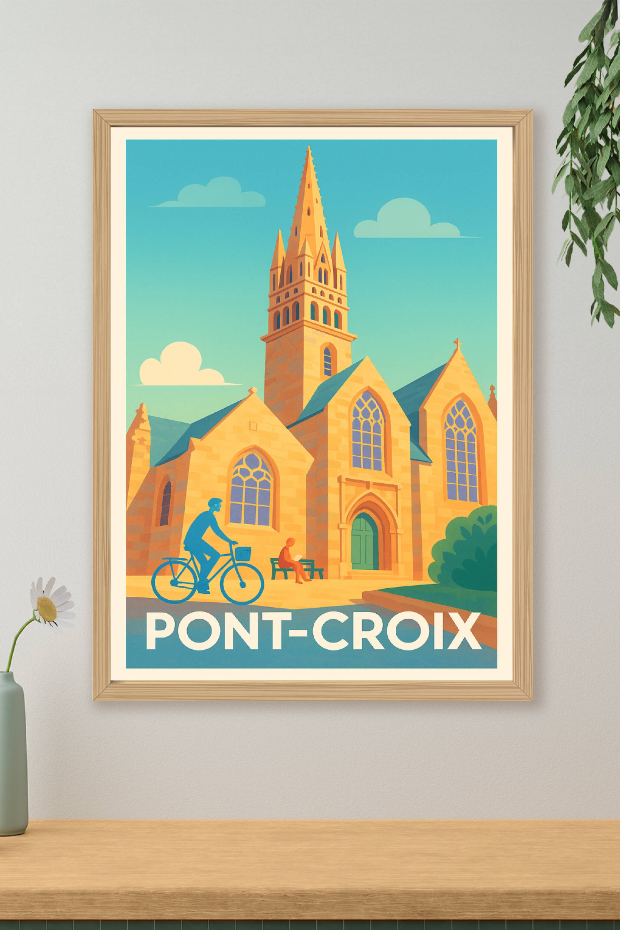 Découvrez le charme pittoresque de Pont-Croix avec cette affiche illustrée mettant en avant l'élégante architecture locale. Ce poster capture la do...