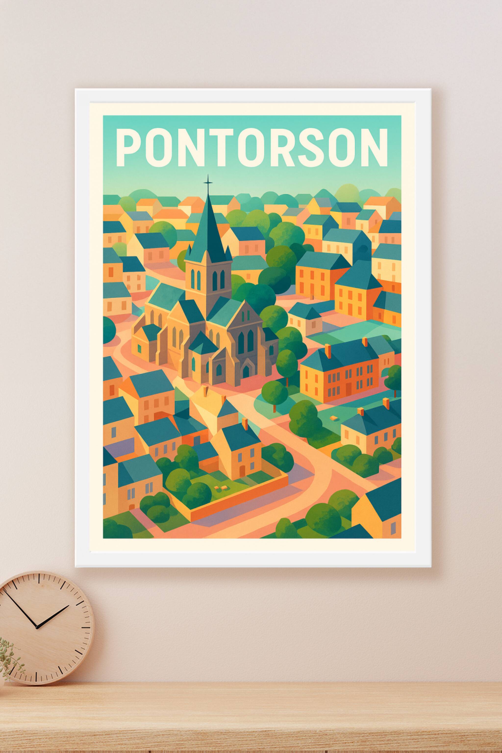 Découvrez le charme authentique de Pontorson avec cette affiche illustrée d'un style lumineux et contemporain mettant en avant son architecture typ...