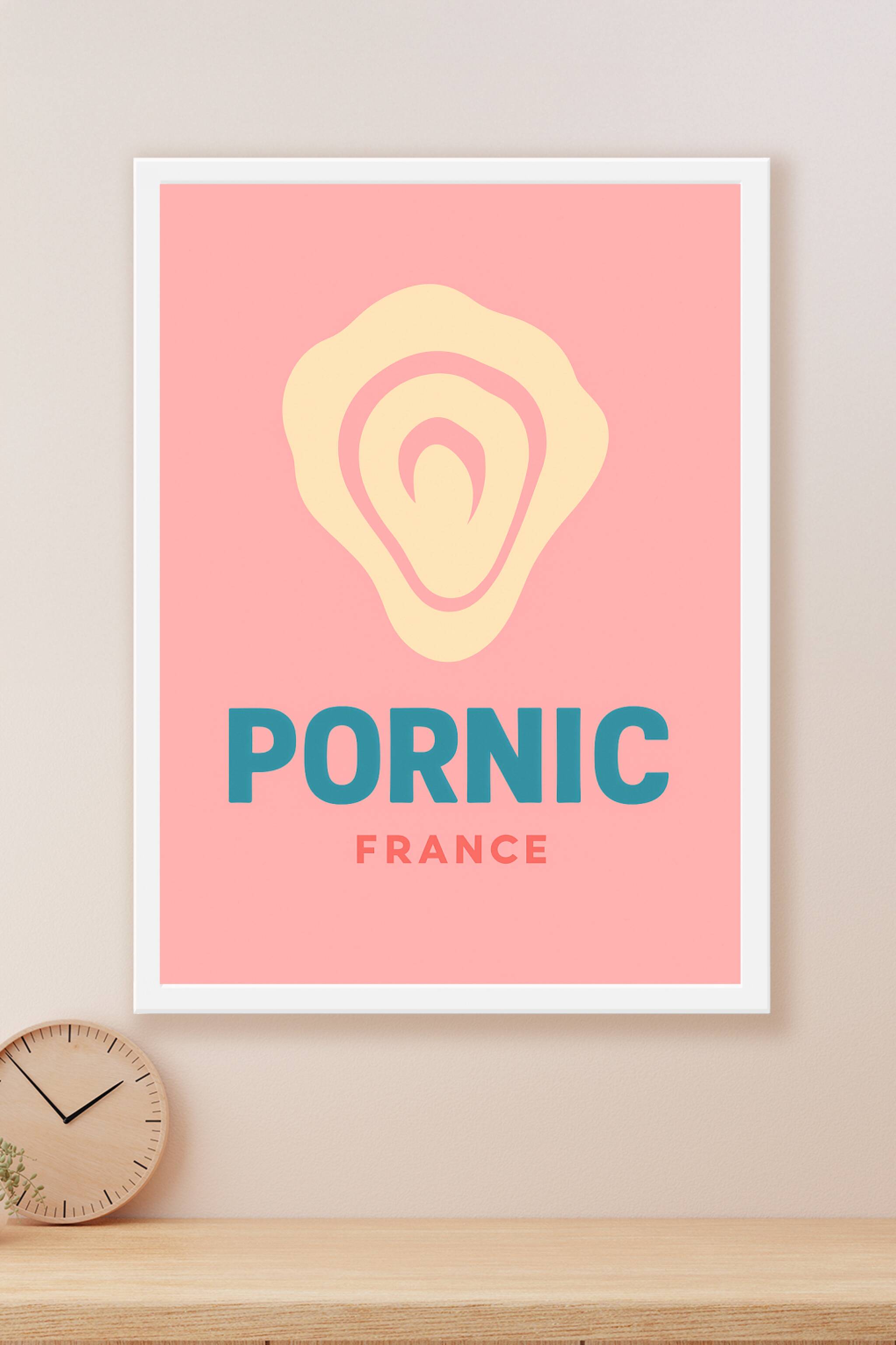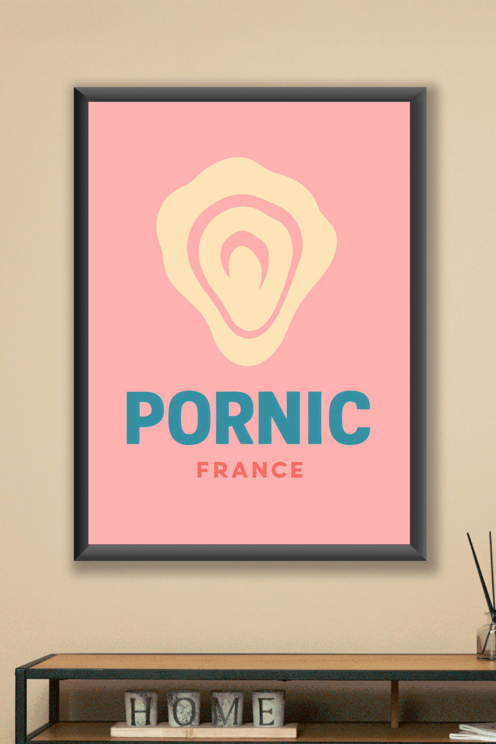 Découvrez cette affiche au design minimaliste et élégant mettant à l'honneur la charmante ville de Pornic, joyau de la côte Atlantique française. S...