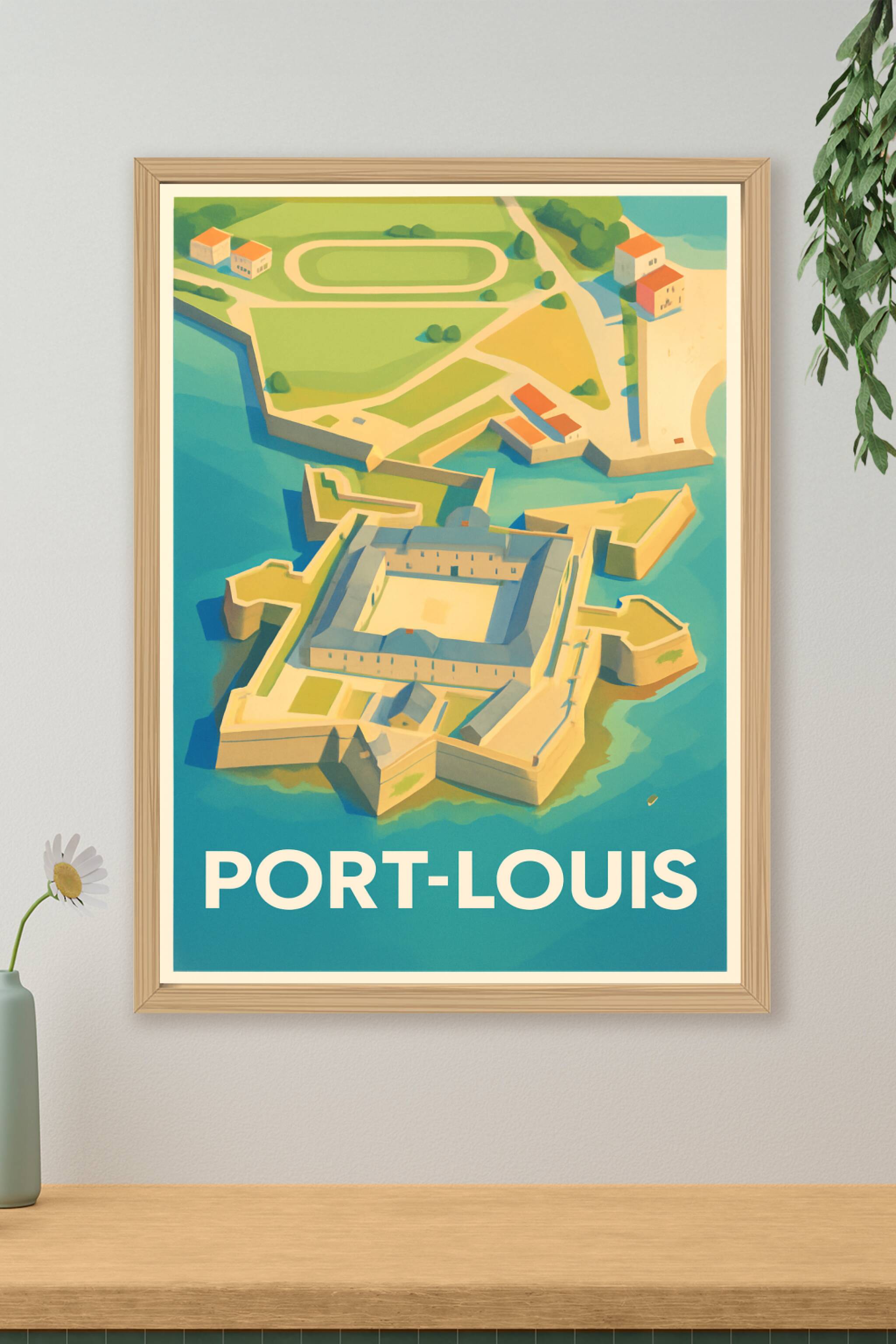 Embarquez pour un voyage visuel unique au cœur de Port-Louis avec cette affiche au design épuré et lumineux, mettant en avant la splendide architecture de sa citadelle vue du ciel. Ce poster inspire à la fois histoire et tranquillité maritime, idéal pour apporter une touche d'élégance et de charme historique à votre intérieur. Disponible en tirage "Fine Art" sur papier 305g coton de haute qualité, ce poster garantit une impression remarquable et une durabilité optimale. Choisissez parmi les formats A1 à A4, avec ou sans cadre, pour personnaliser selon votre espace et vos envies. Une affiche d'exception, 100% fabriquée en France, parfaite pour les amateurs d'art et de patrimoine.
