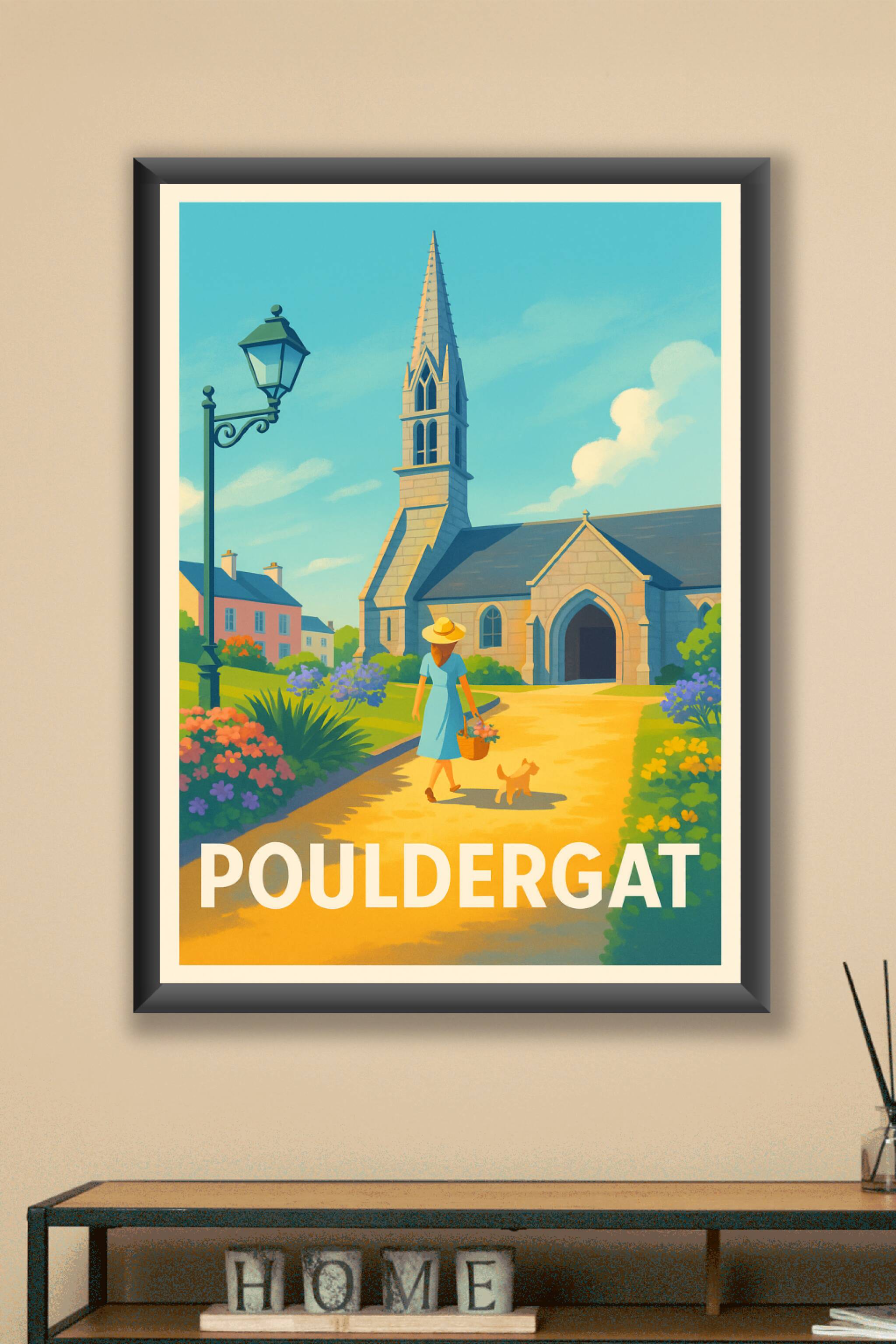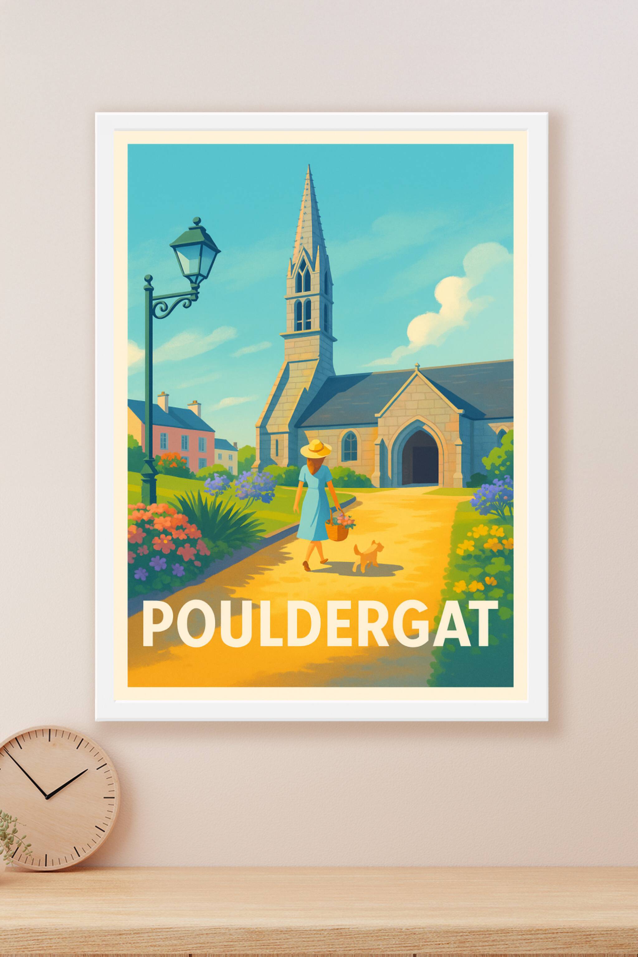 Découvrez la tranquillité et le charme pittoresque de Pouldergat avec cette affiche illustrée au style rétro inspirant la douceur de vivre. Cette s...