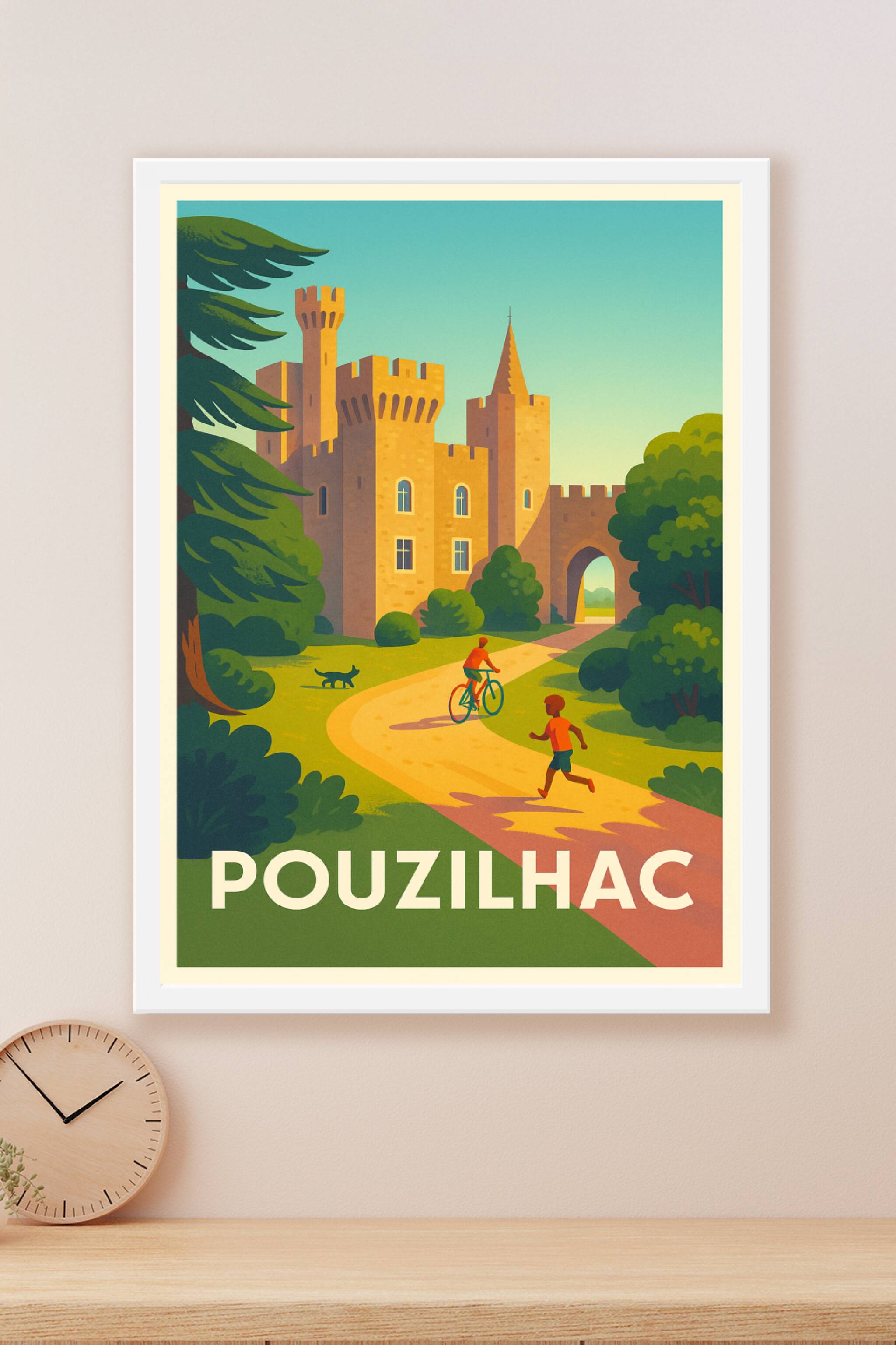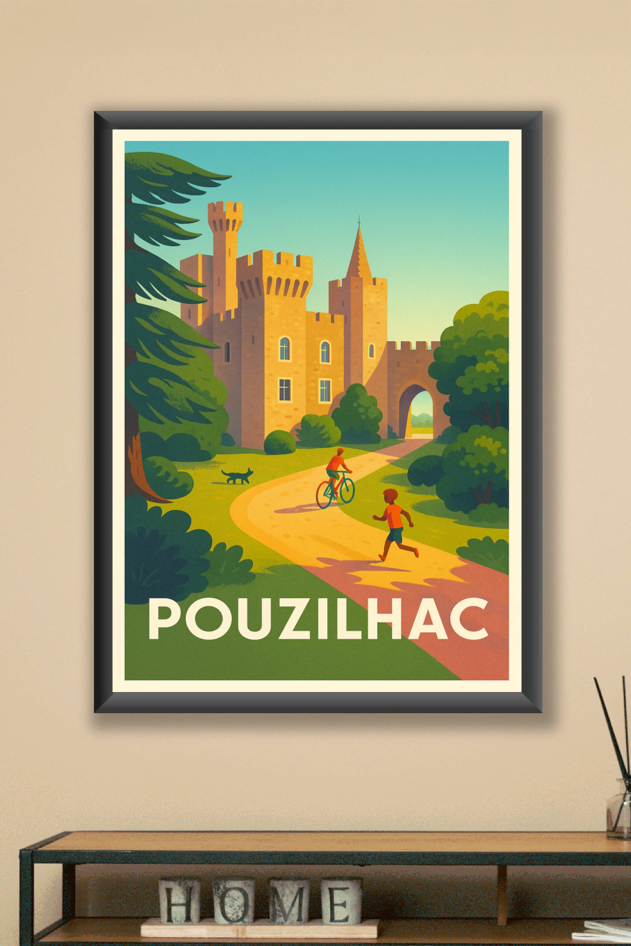 Découvrez la beauté intemporelle de Pouzilhac avec cette affiche au style vintage mettant en scène son château médiéval et ses allées paisibles. Ce...
