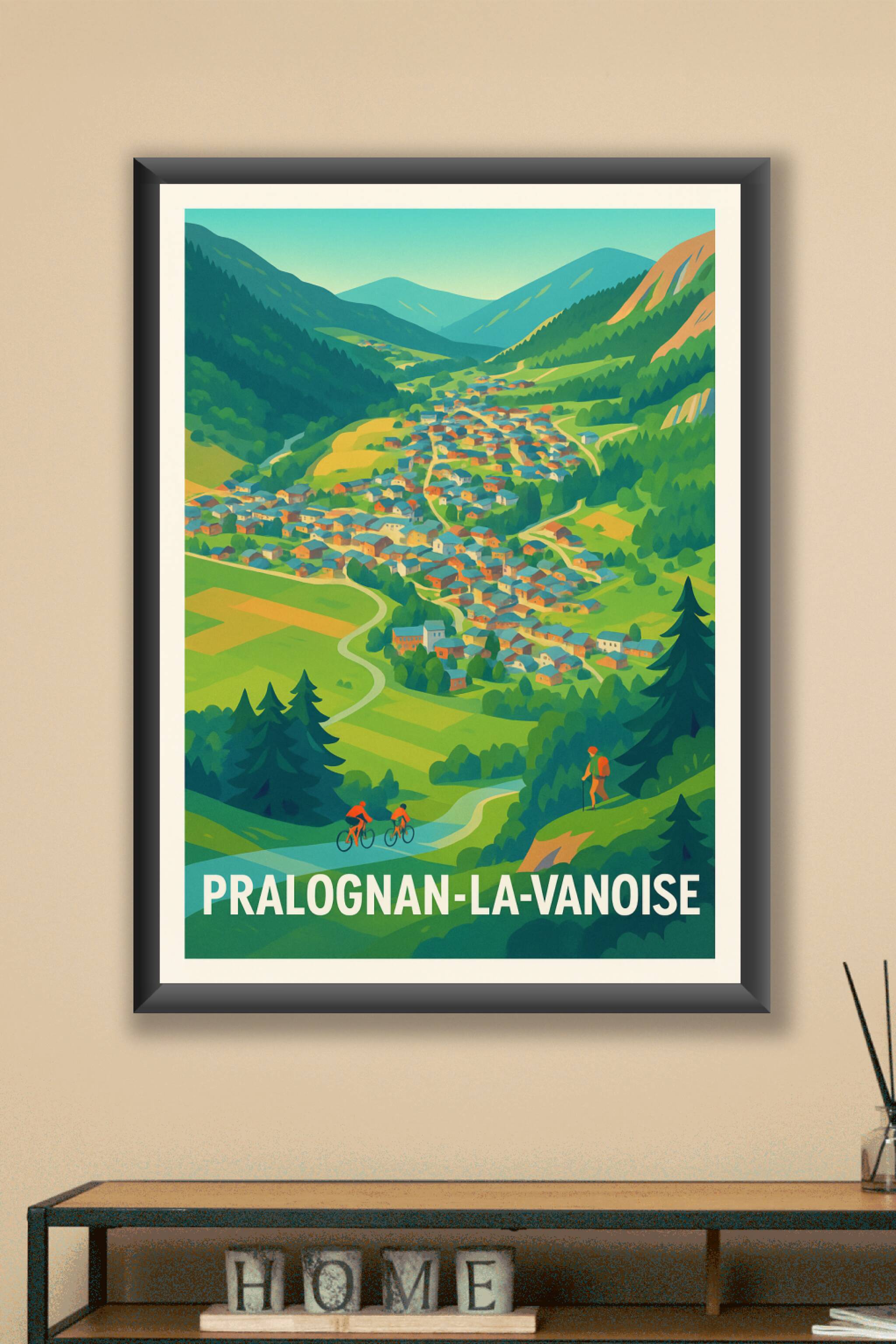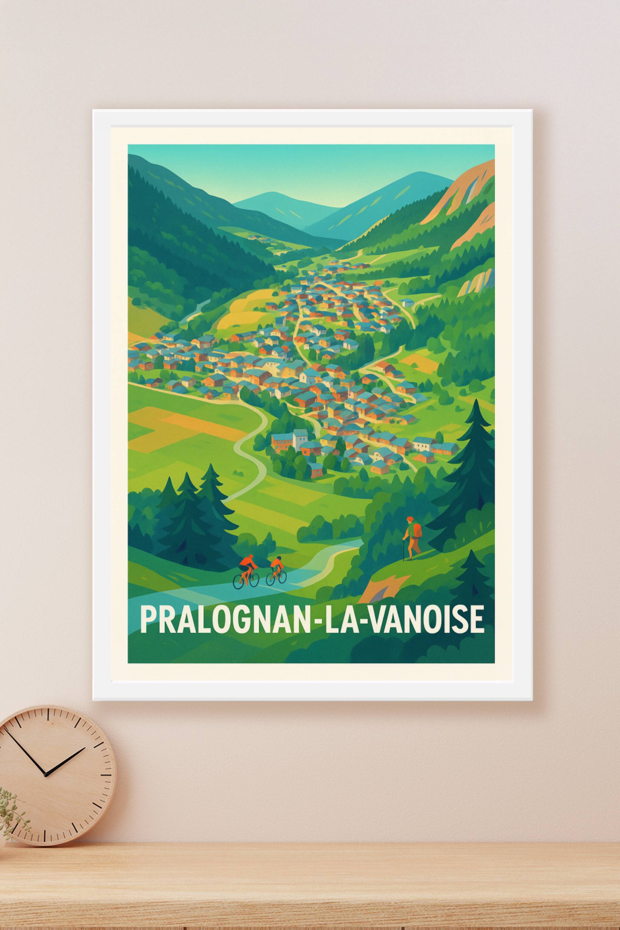 Découvrez l'envoûtant paysage de Pralognan-la-Vanoise à travers cette superbe affiche illustrée qui capture parfaitement la beauté et la sérénité d...