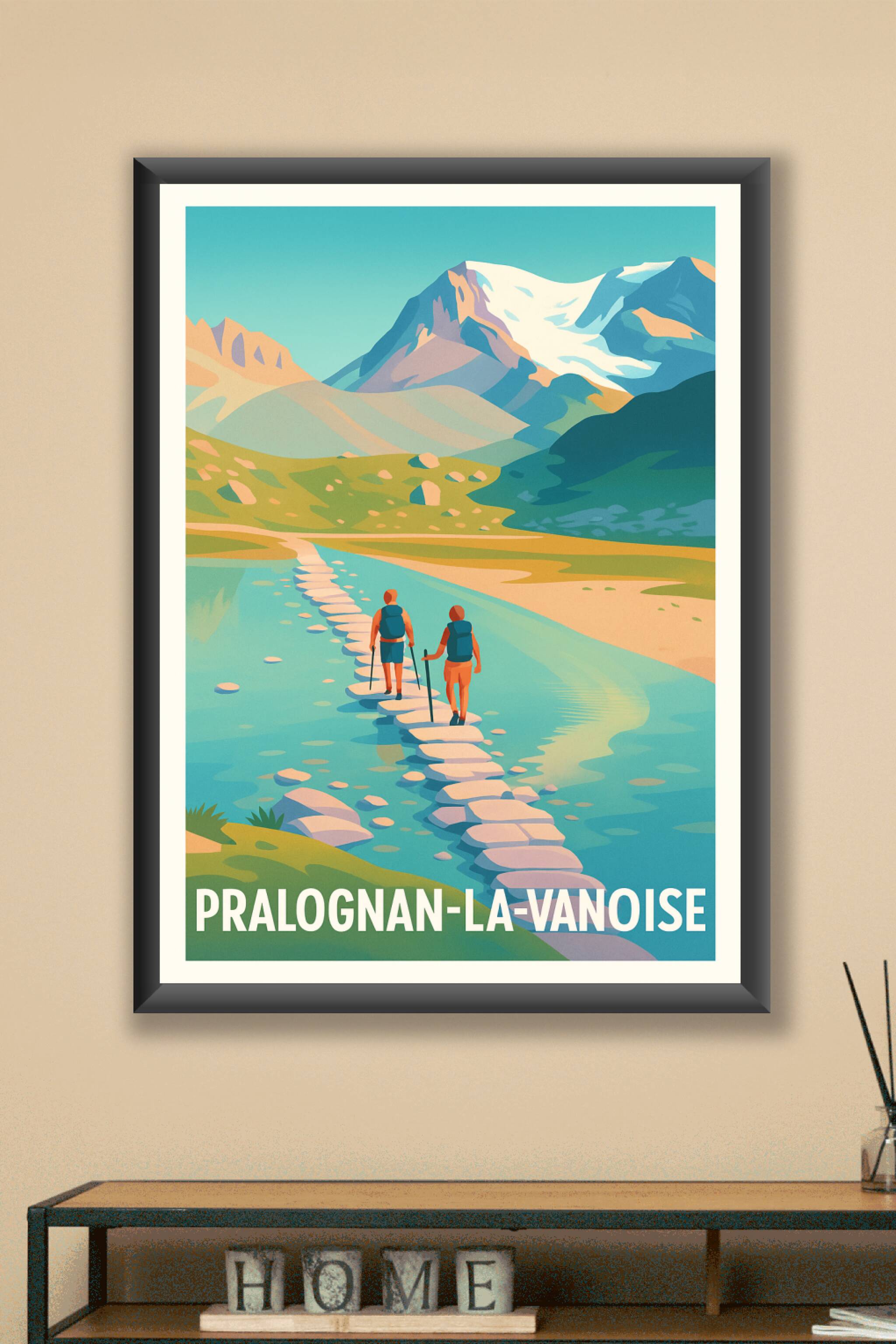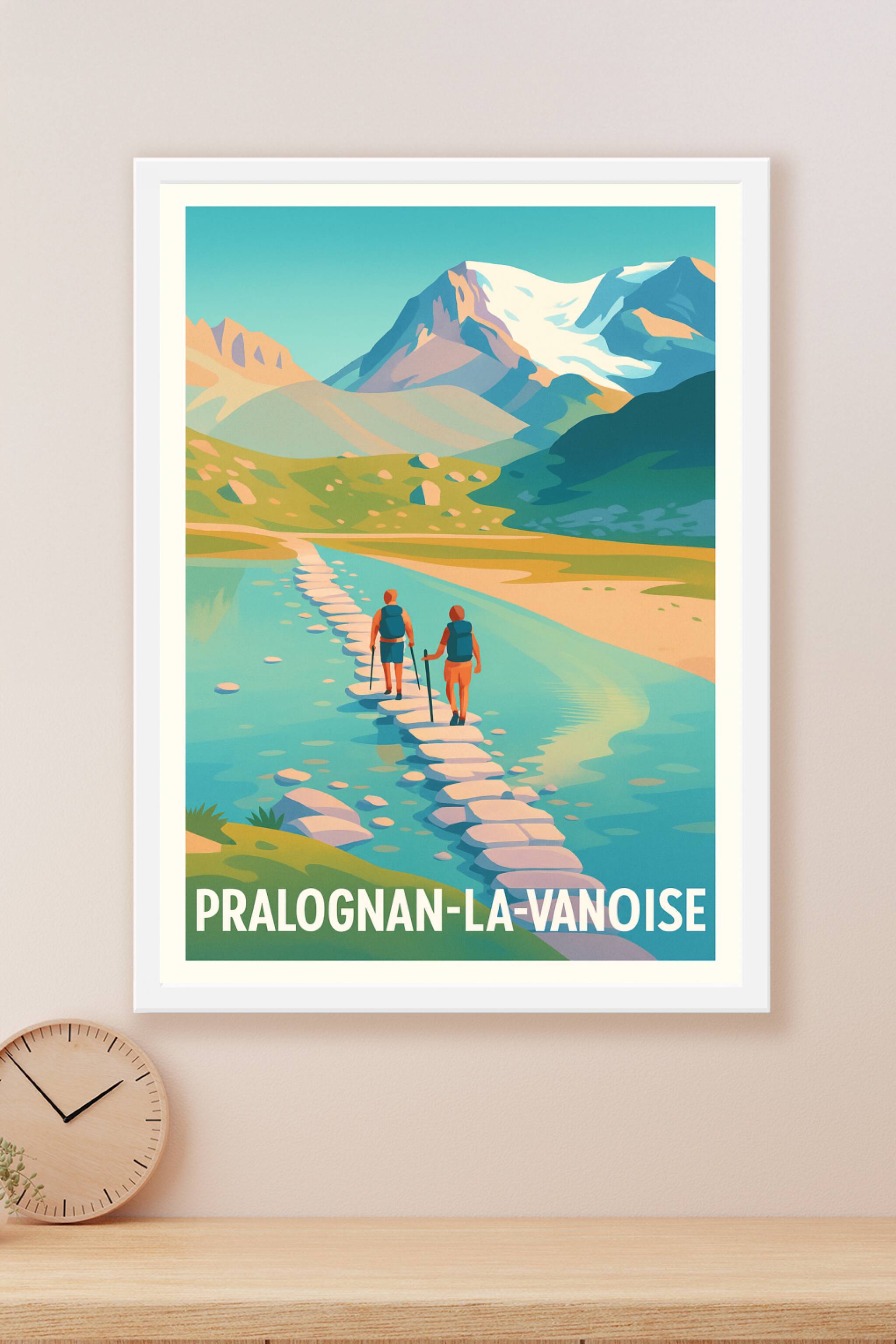 Découvrez toute la splendeur des Alpes avec cette affiche illustrée représentant deux randonneurs traversant un cours d'eau sur des pierres, au cœur du massif de la Vanoise. Ce poster capture la beauté naturelle et l'esprit d'aventure de Pralognan-la-Vanoise, une destination prisée des amoureux de montagne. Imprimée en tirage "Fine Art" sur un papier 305g coton de haute qualité, cette affiche assure une précision des couleurs et une durabilité remarquables. Disponible en formats A1 à A4, avec ou sans cadre, elle s'adapte parfaitement à votre décoration intérieure, pour apporter une touche de fraîcheur et de dynamisme à votre espace. Offrez-vous ou offrez à un proche ce poster exclusif, 100% fabriqué en France, pour un souvenir élégant et inspirant.