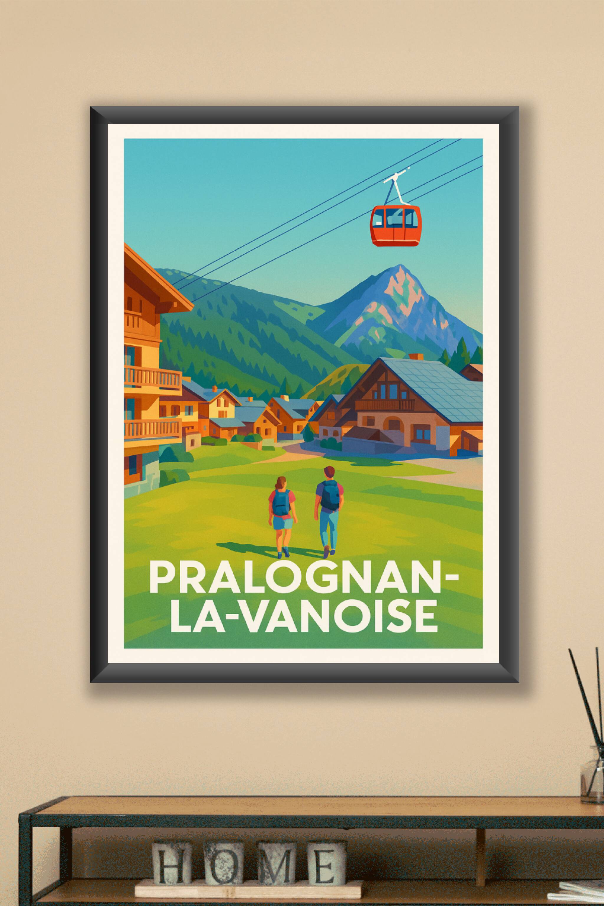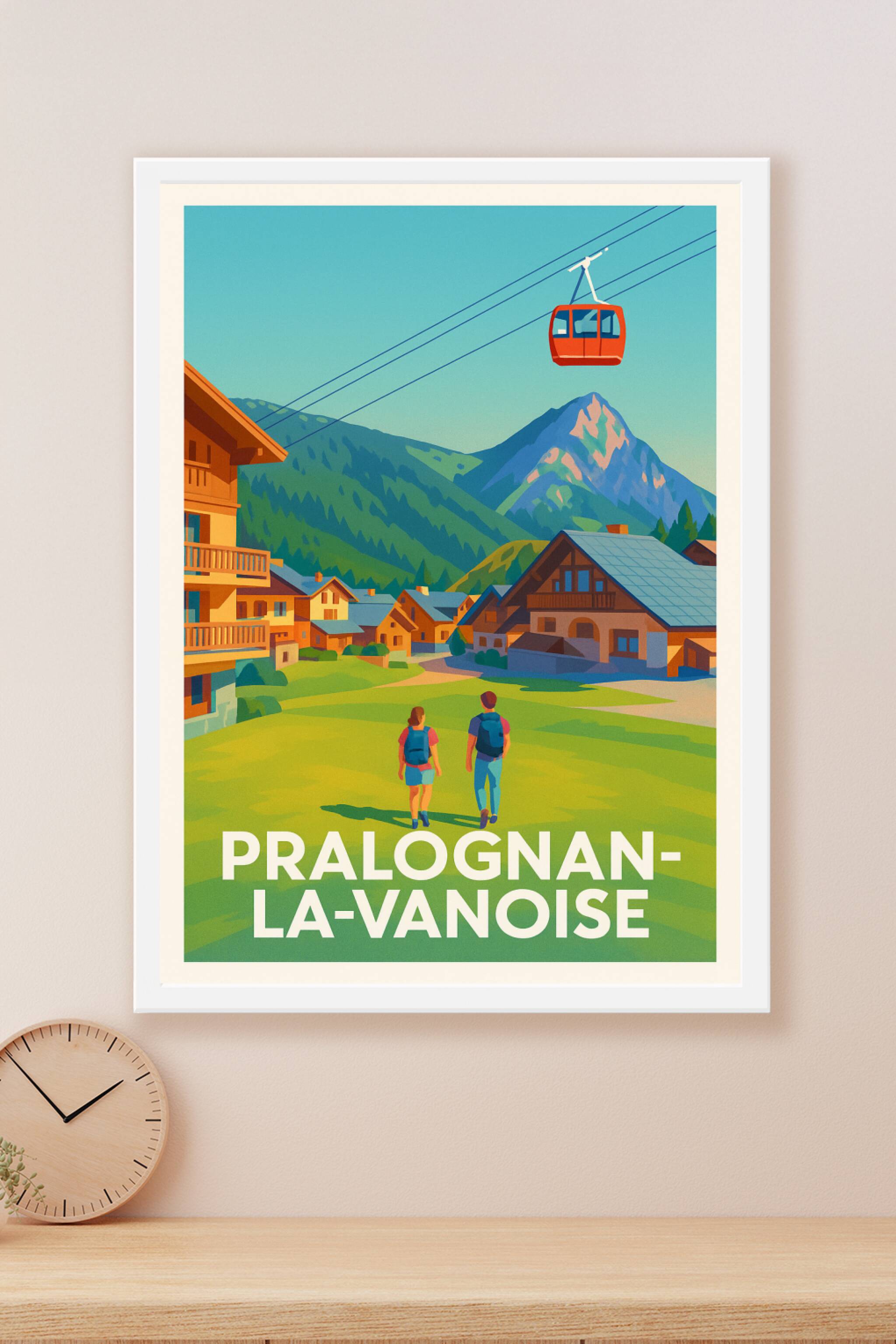 Découvrez la magnifique station de Pralognan-la-Vanoise à travers ce poster illustré aux couleurs lumineuses et chaleureuses, évoquant une escapade...