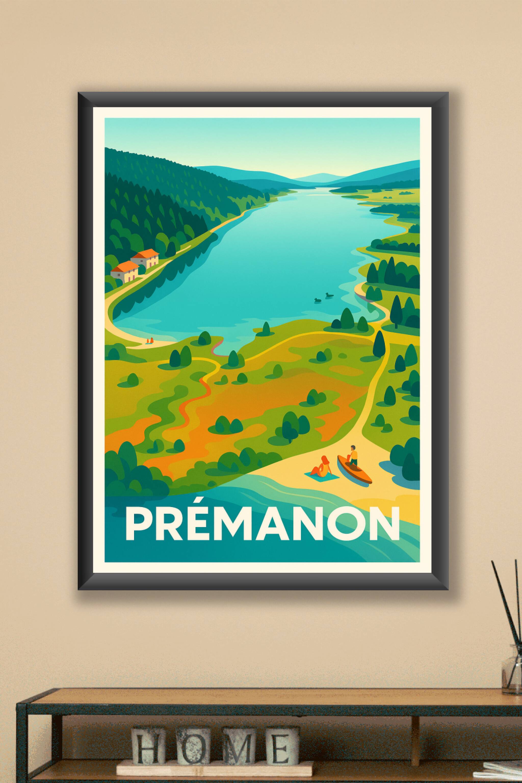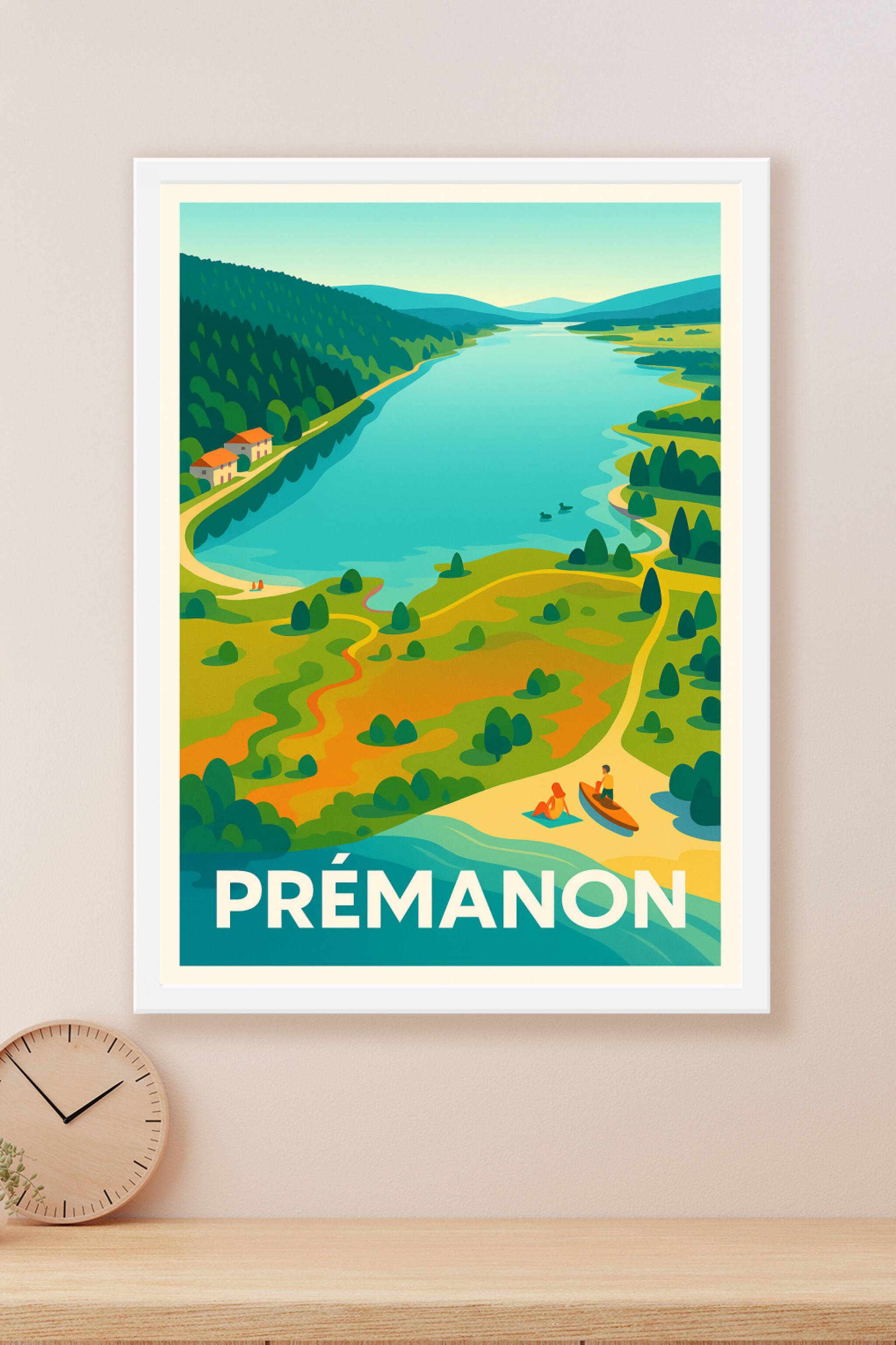 Découvrez la beauté paisible et authentique du lac de Prémanon avec cette affiche illustrée aux couleurs apaisantes et au style vintage revisité. C...