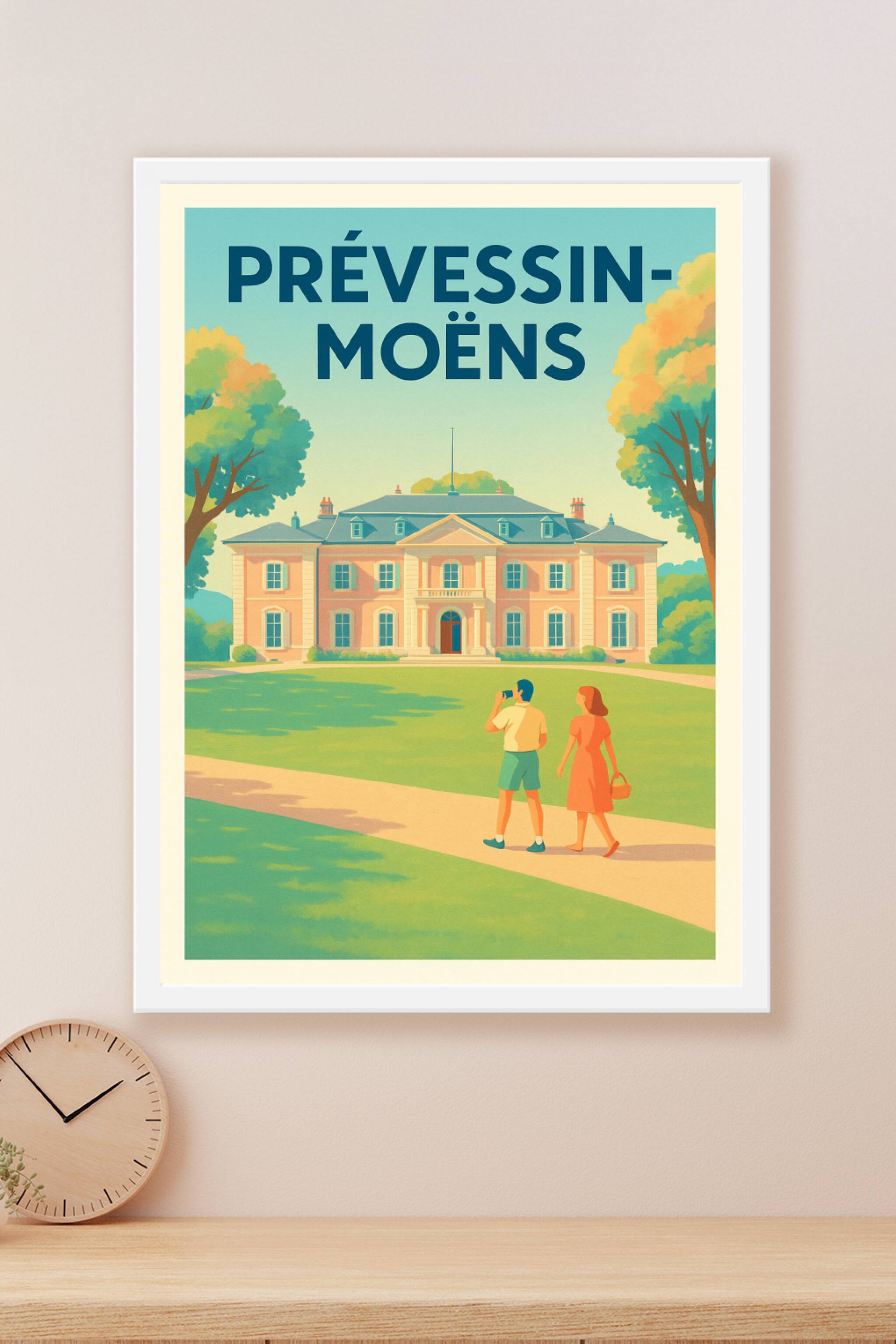 Découvrez cette superbe affiche illustrée qui met en lumière le charme paisible et l'élégance architecturale de Prévessin-Moëns. Cette scène pleine de douceur capture un couple admirant un bâtiment historique au cœur d'un paysage verdoyant, parfait pour ajouter une ambiance sereine et raffinée à tout intérieur. Ce poster est disponible en tirage "Fine Art" haute qualité, imprimé sur papier 305g coton, garantissant des couleurs vibrantes et une texture premium qui subliment les détails de l'illustration. Choisissez parmi les formats A1 à A4, avec ou sans cadre, pour personnaliser votre décoration ou offrir un souvenir unique de Prévessin-Moëns. Une impression 100% française qui allie esthétisme et durabilité pour un rendu d'exception.