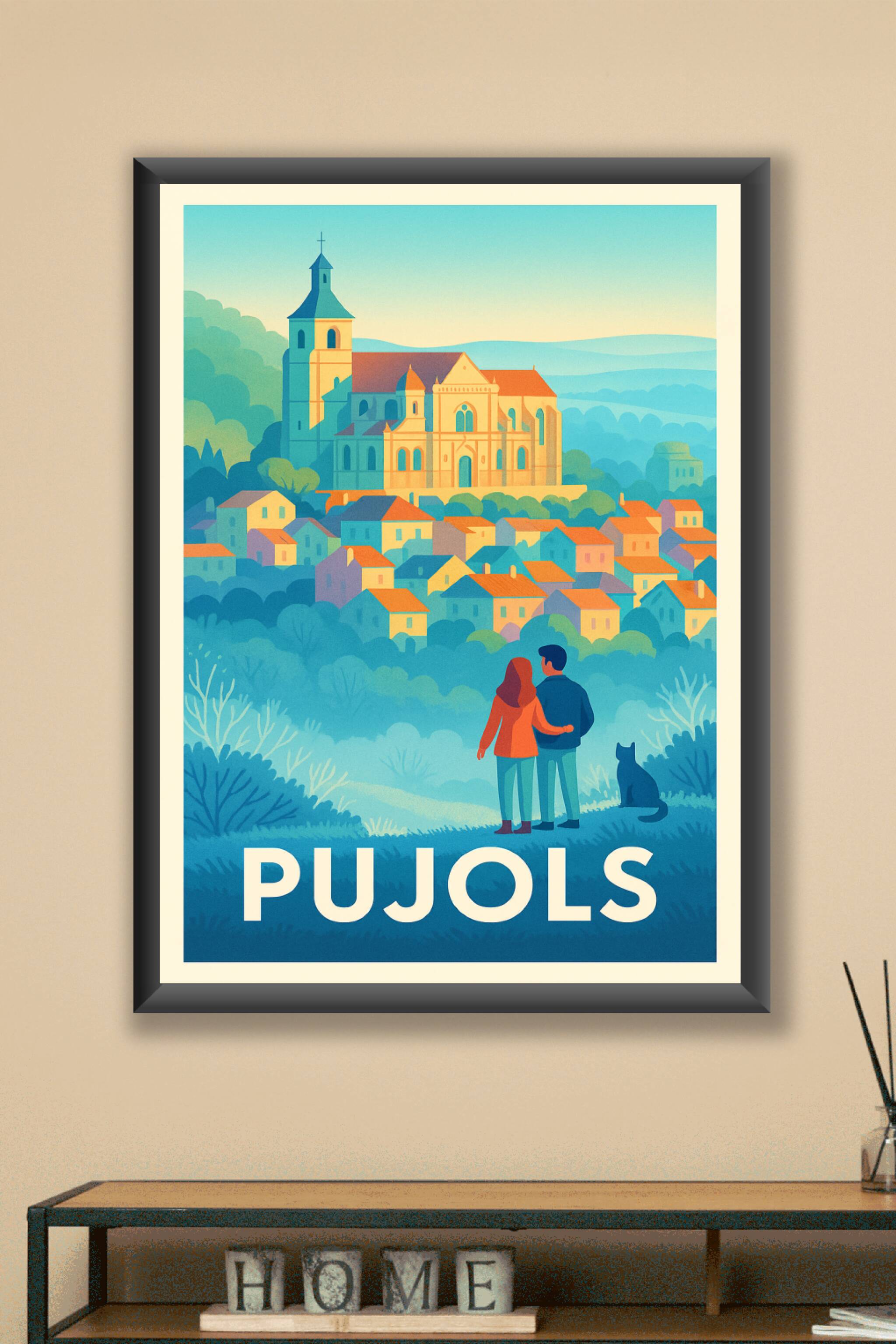 Découvrez l'élégance intemporelle de Pujols avec cette affiche illustrée mettant en lumière son village perché et son architecture pittoresque sous...
