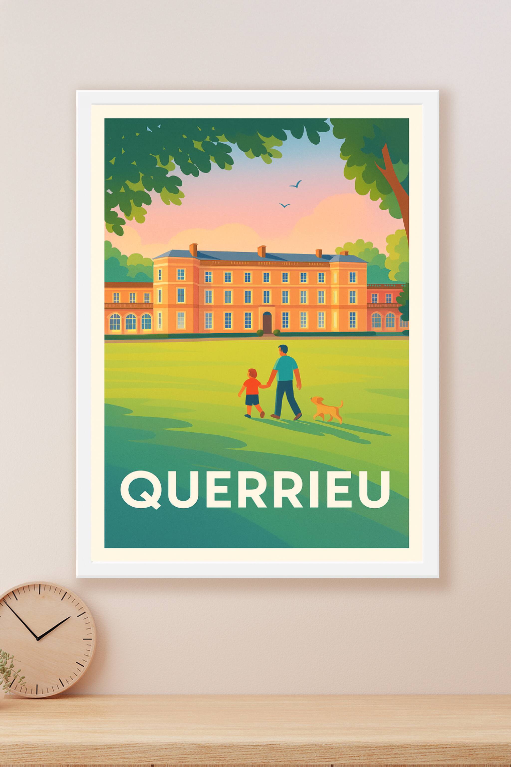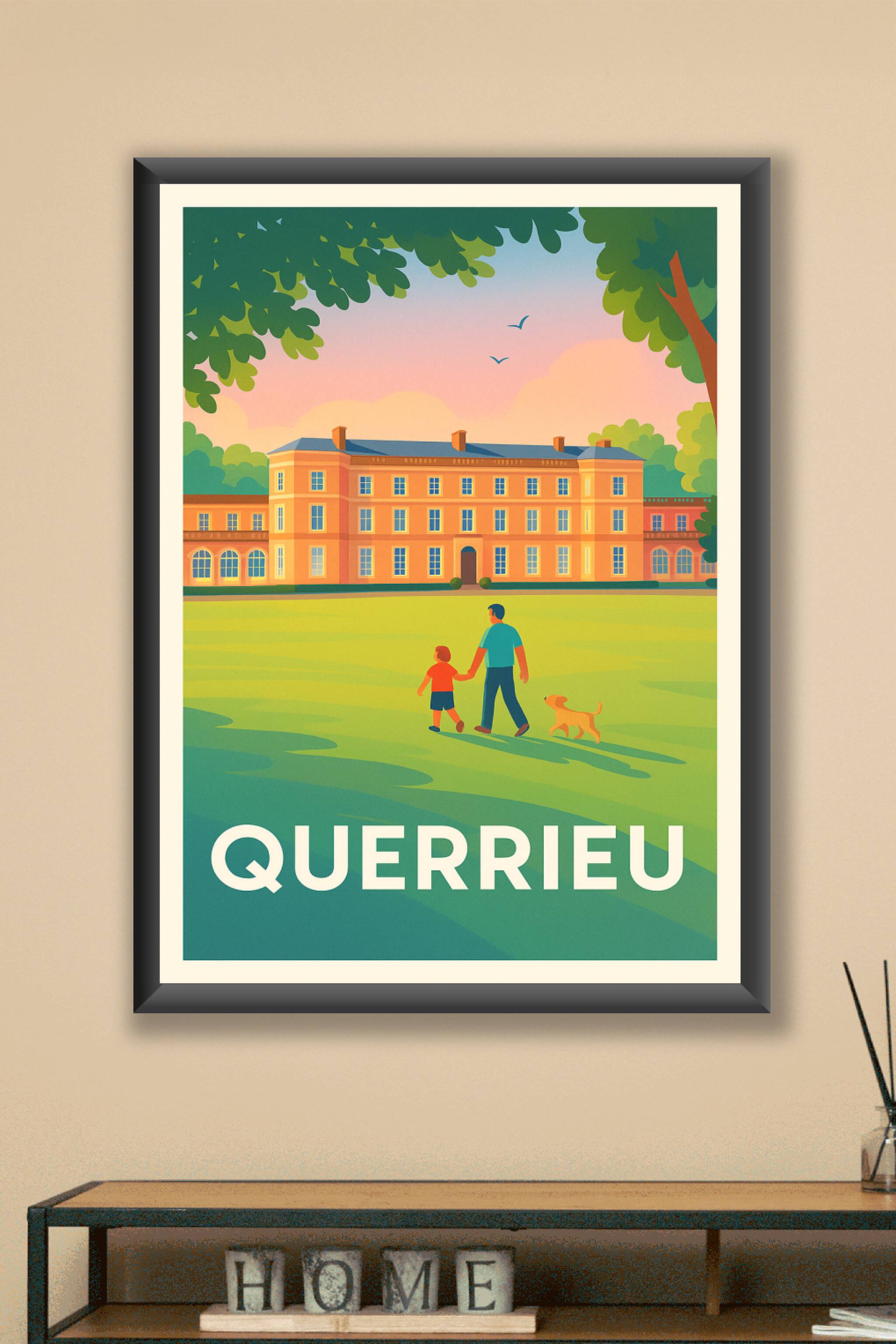 Découvrez l'élégance paisible de Querrieu avec cette affiche mettant en scène le château emblématique dans une ambiance douce et chaleureuse au cré...