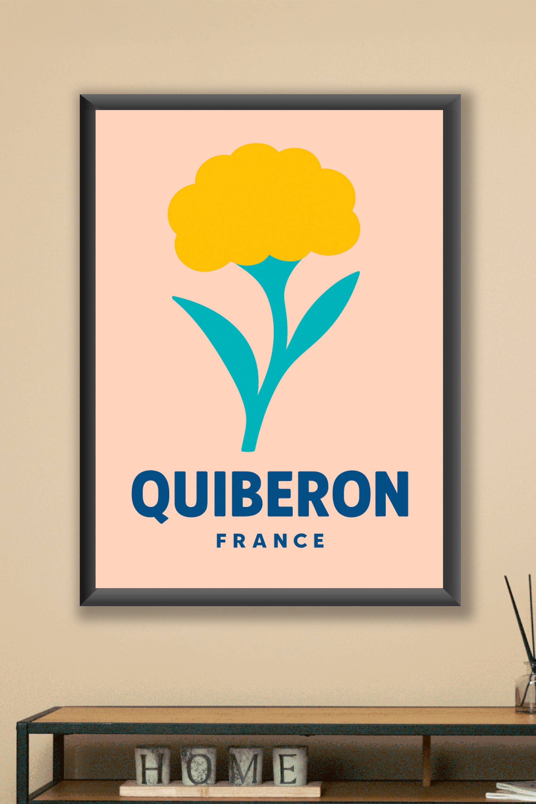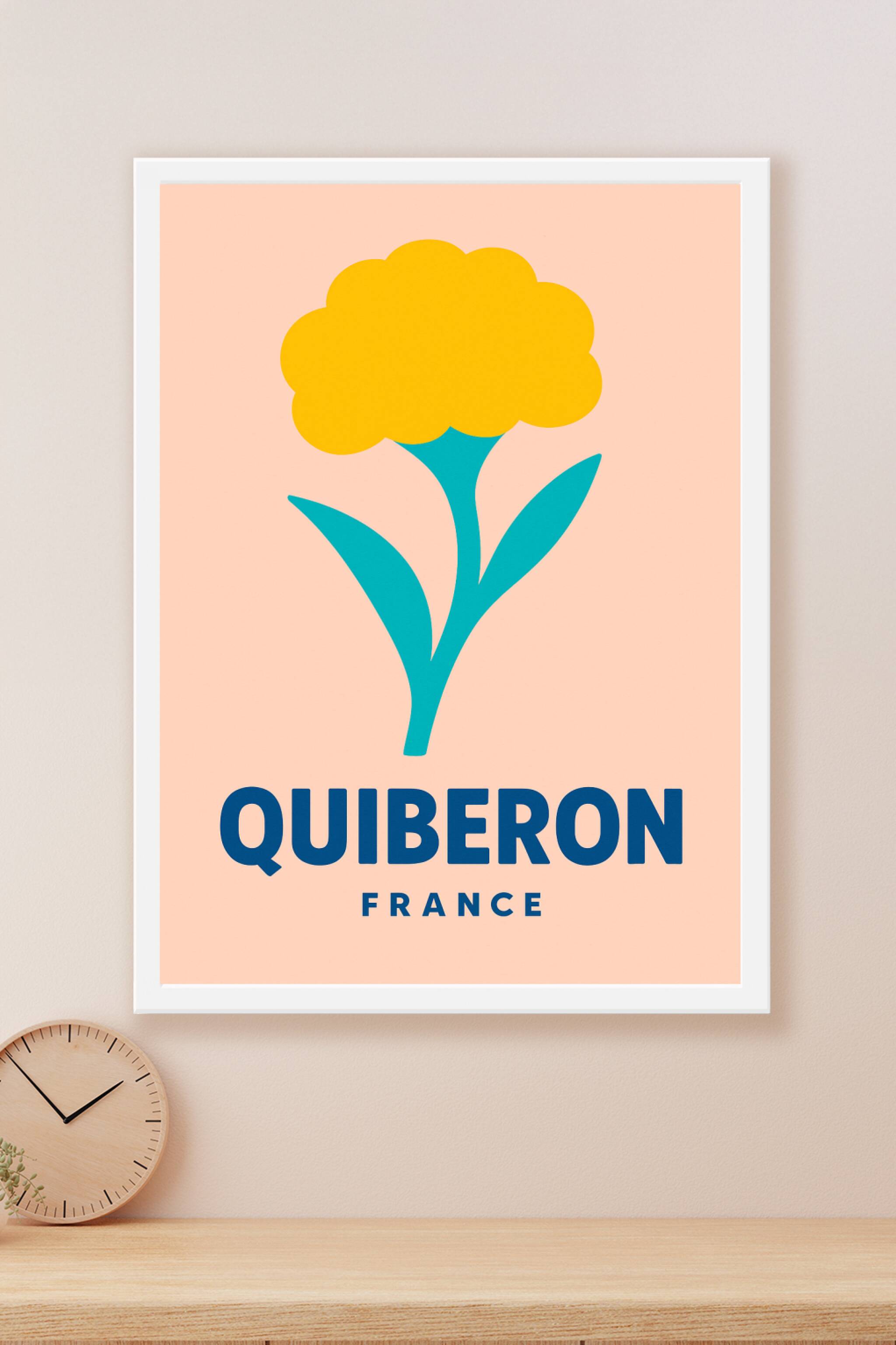 Découvrez la simplicité et la fraîcheur de Quiberon à travers cette affiche au design épuré mettant en avant une fleur stylisée aux couleurs vives....