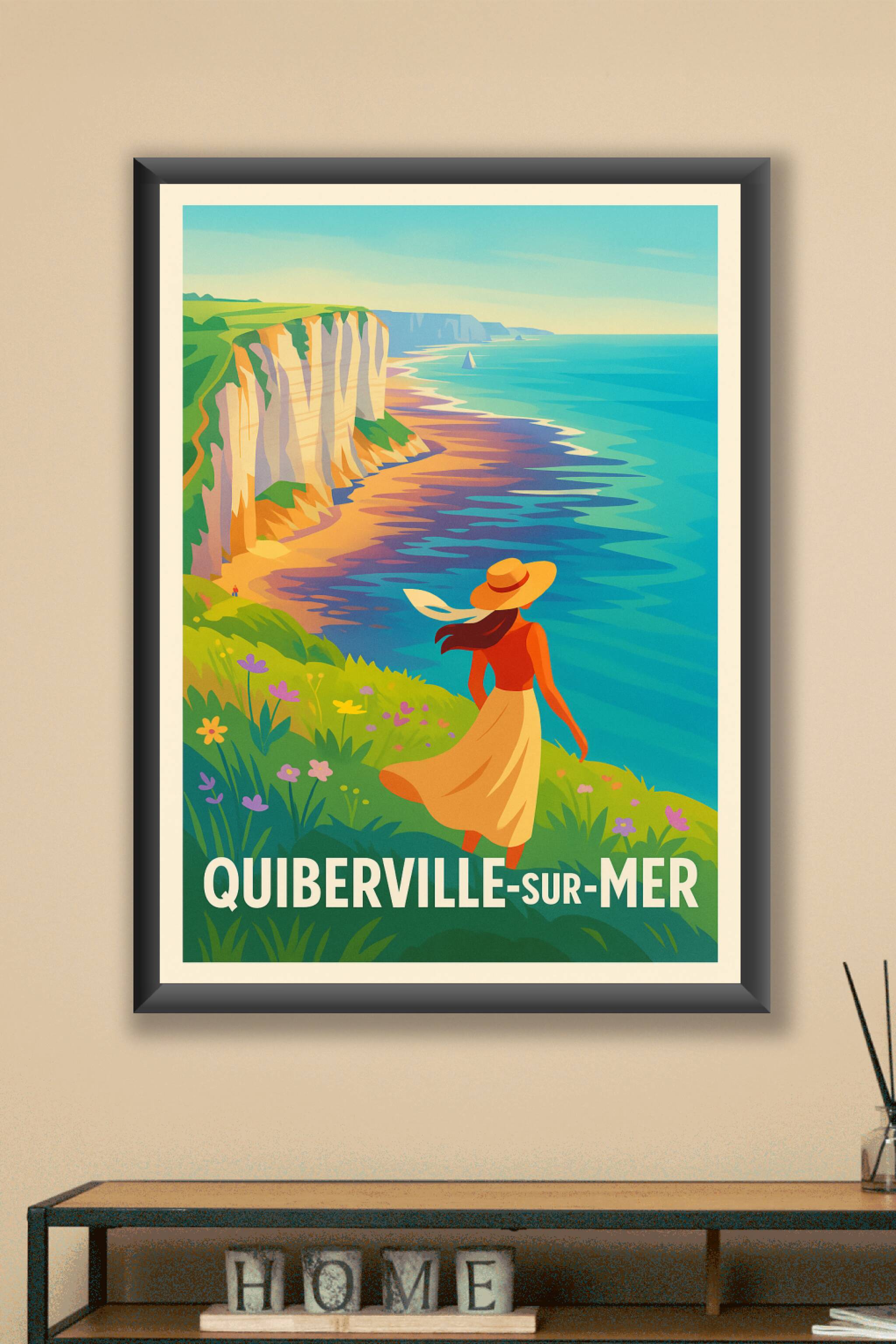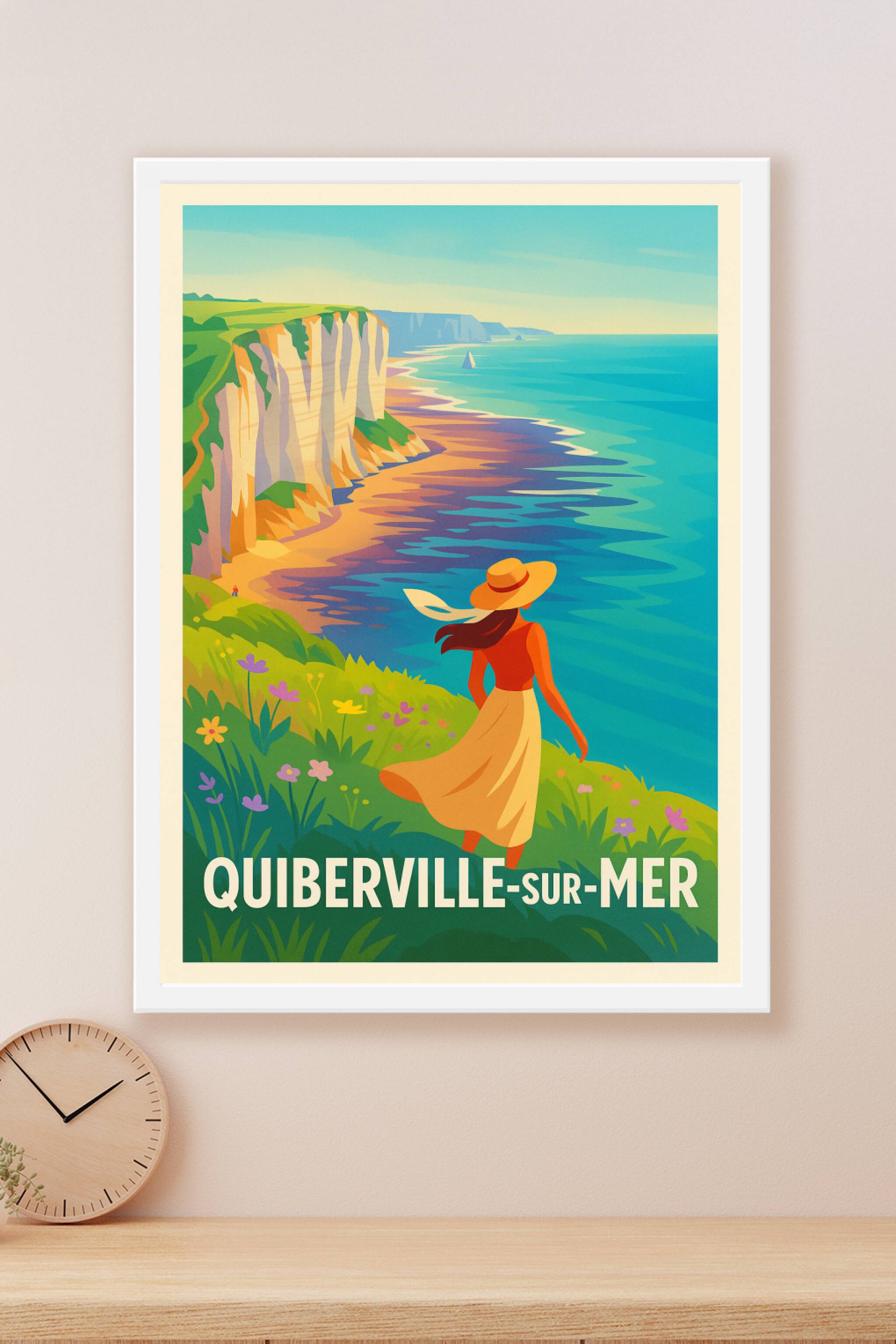 Découvrez la magie des falaises de Quiberville-sur-Mer avec cette affiche au style vintage coloré et apaisant. Ce poster capture l'essence de la cô...