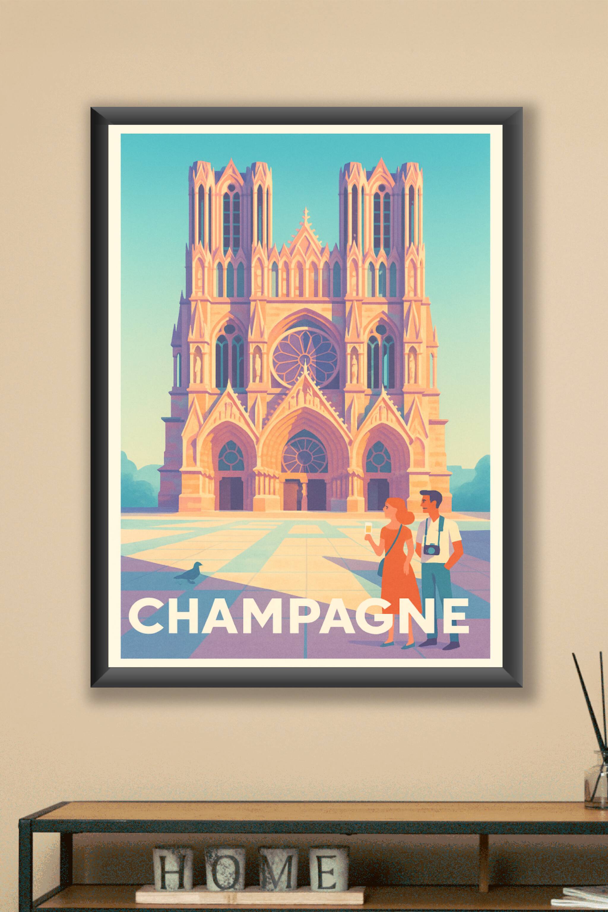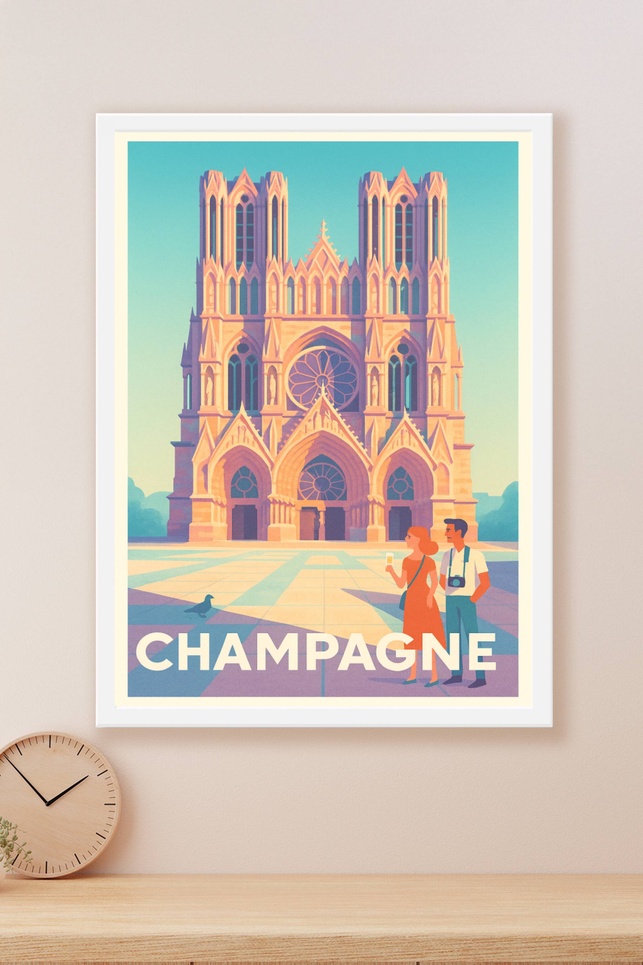 Découvrez la majestueuse cathédrale de Reims, joyau architectural et symbole historique de la région Champagne, magnifiquement illustrée sur cette affiche au style vintage et lumineux. Ce poster capture l'ambiance paisible et la splendeur médiévale de la ville, invitant à un voyage visuel dans le temps et l'art gothique. Imprimée en tirage "Fine Art" sur un papier de qualité supérieure 305g coton, cette affiche offre une finesse et une durabilité remarquables. Disponible en formats A1 à A4, avec ou sans cadre, elle s'adapte parfaitement à toutes vos envies de décoration. Optez pour une décoration élégante et authentique avec ce poster aux couleurs douces, 100% fabriqué en France, idéal pour les amateurs d'art, d'histoire et de voyages.