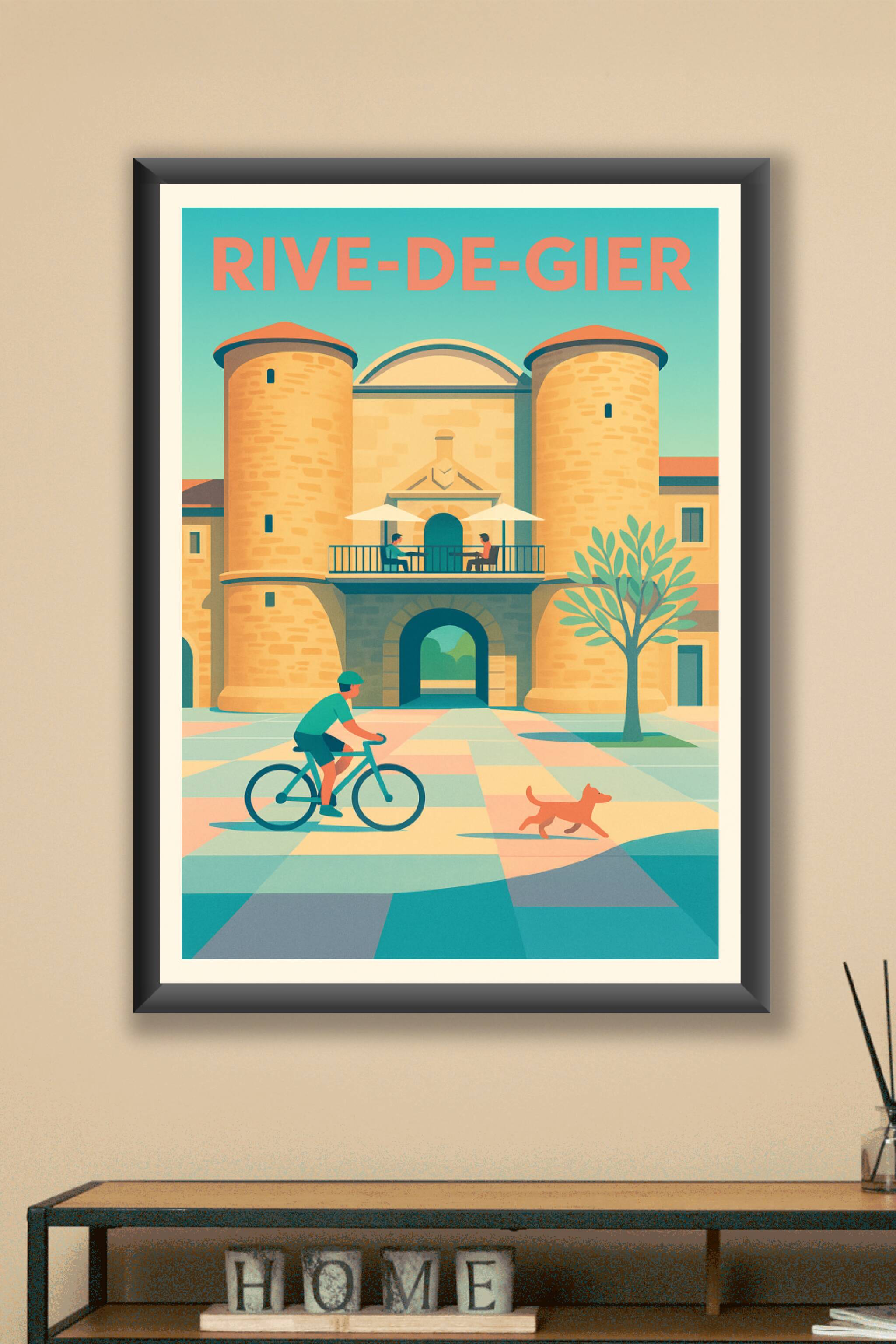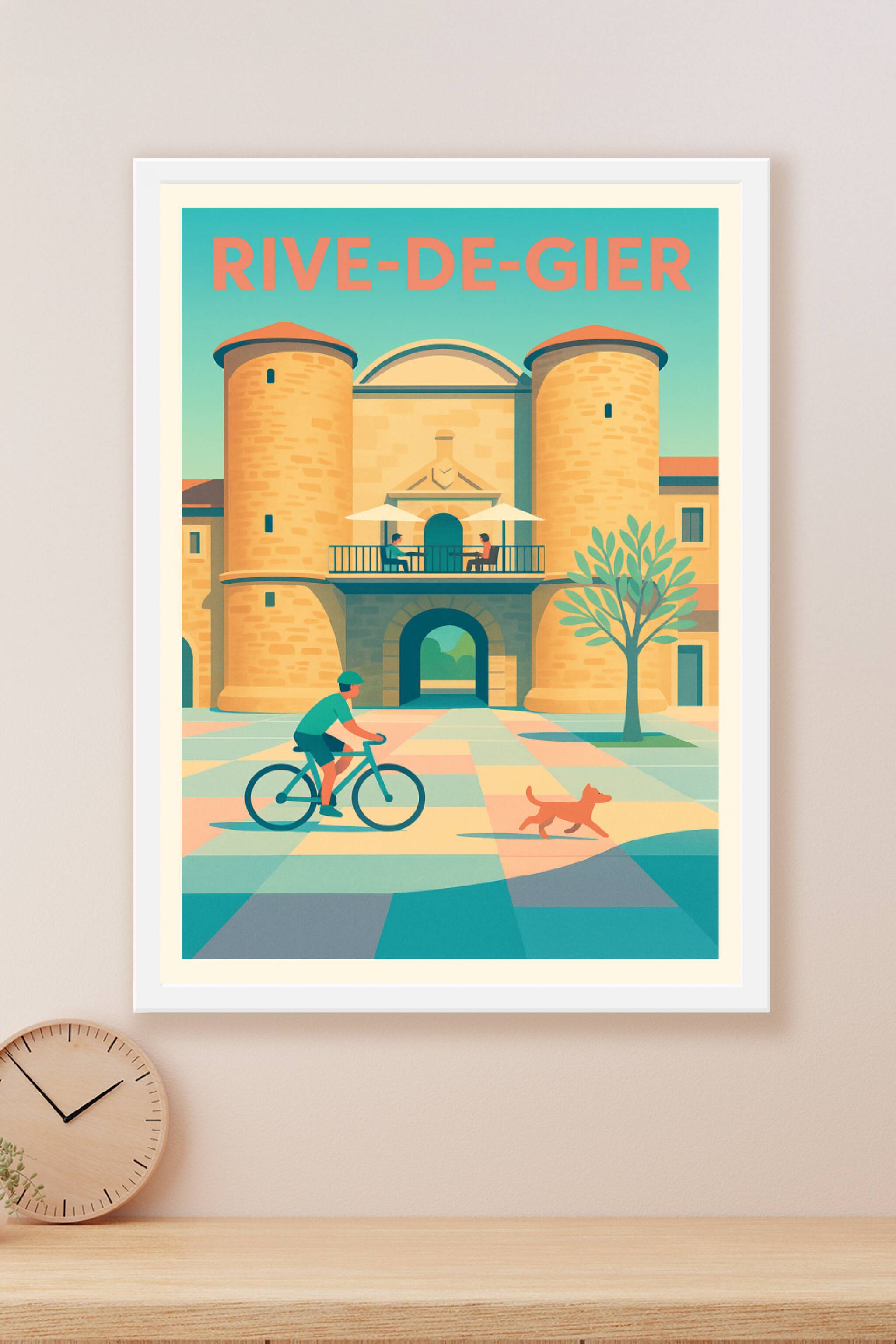 Découvrez l'ambiance paisible et conviviale de Rive-de-Gier avec cette affiche illustrée qui met en scène une architecture emblématique et la douceur de la vie locale. Un cycliste et un chien apportent du mouvement à cette scène chaleureuse, pleine de couleurs douces et lumineuses.Ce poster est imprimé en tirage "Fine Art" sur un papier 305g coton de haute qualité, garantissant des couleurs vibrantes et une durabilité exceptionnelle. Disponible en plusieurs formats de A1 à A4, avec ou sans cadre, cette affiche est idéale pour décorer votre intérieur avec élégance et raffinement. Profitez d'une impression premium 100% fabriquée en France pour un souvenir unique et authentique de Rive-de-Gier.