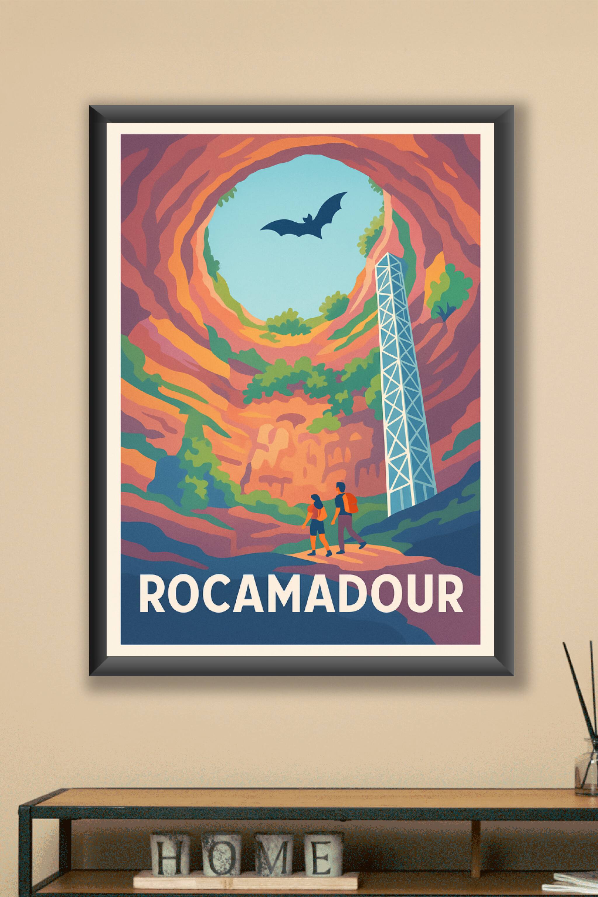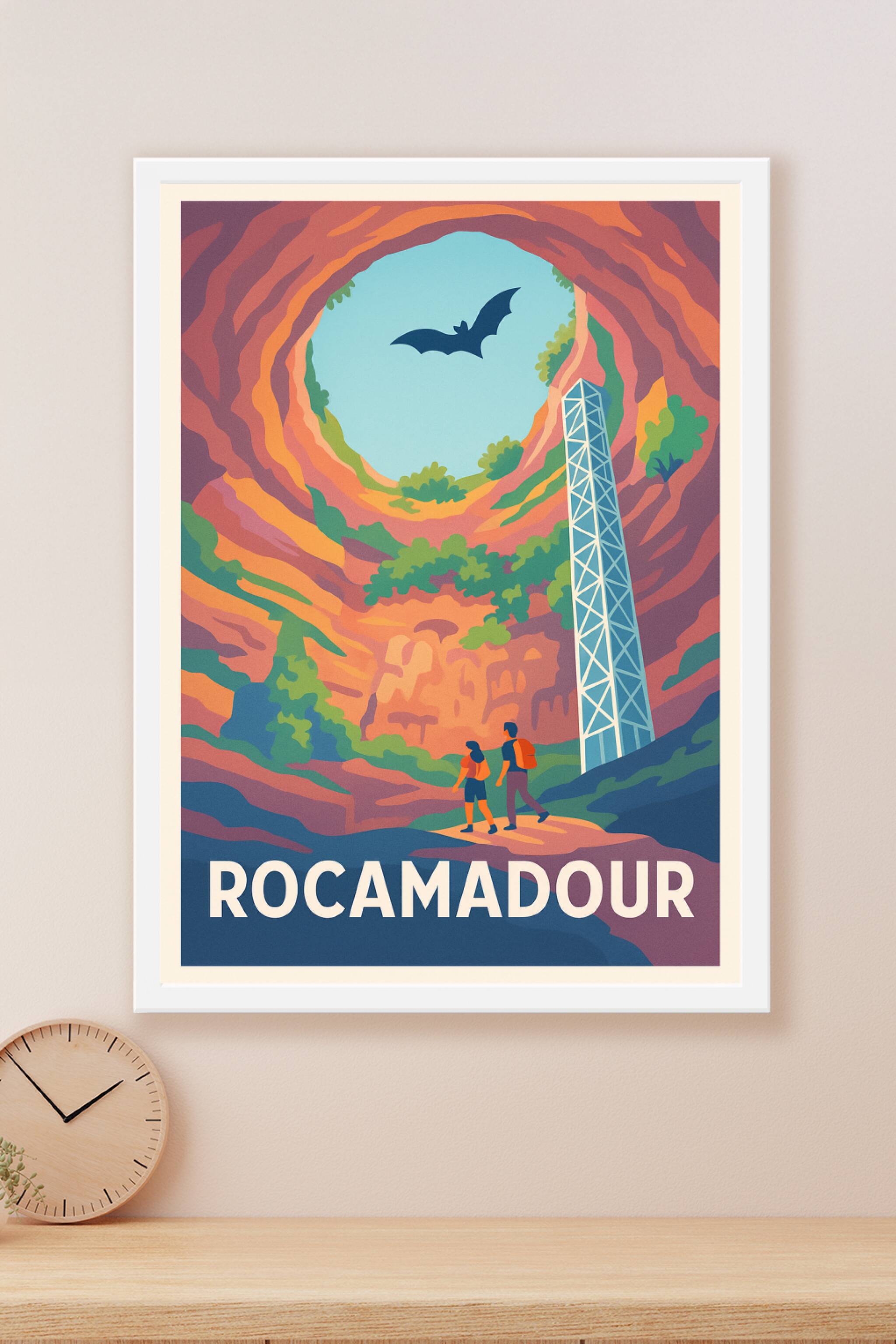 Découvrez l'univers fascinant de Rocamadour avec cette affiche au style vibrant et moderne, illustrant l'entrée de la célèbre cité perchée. Ce poster met en lumière la beauté naturelle des falaises rouges, la tour emblématique et l'aventure que promet cette destination incontournable du sud-ouest de la France. Imprimée en tirage "Fine Art" sur un papier 305g coton haut de gamme, cette affiche garantit une qualité d'impression exceptionnelle et une longévité remarquable.Des formats A1 à A4 sont disponibles, avec ou sans cadre, pour s'adapter parfaitement à tous vos espaces de vie. Apportez une touche d'authenticité et d'évasion à votre décoration intérieure grâce à cette superbe affiche 100% fabriquée en France, idéale aussi comme cadeau pour les passionnés de voyages et de nature.