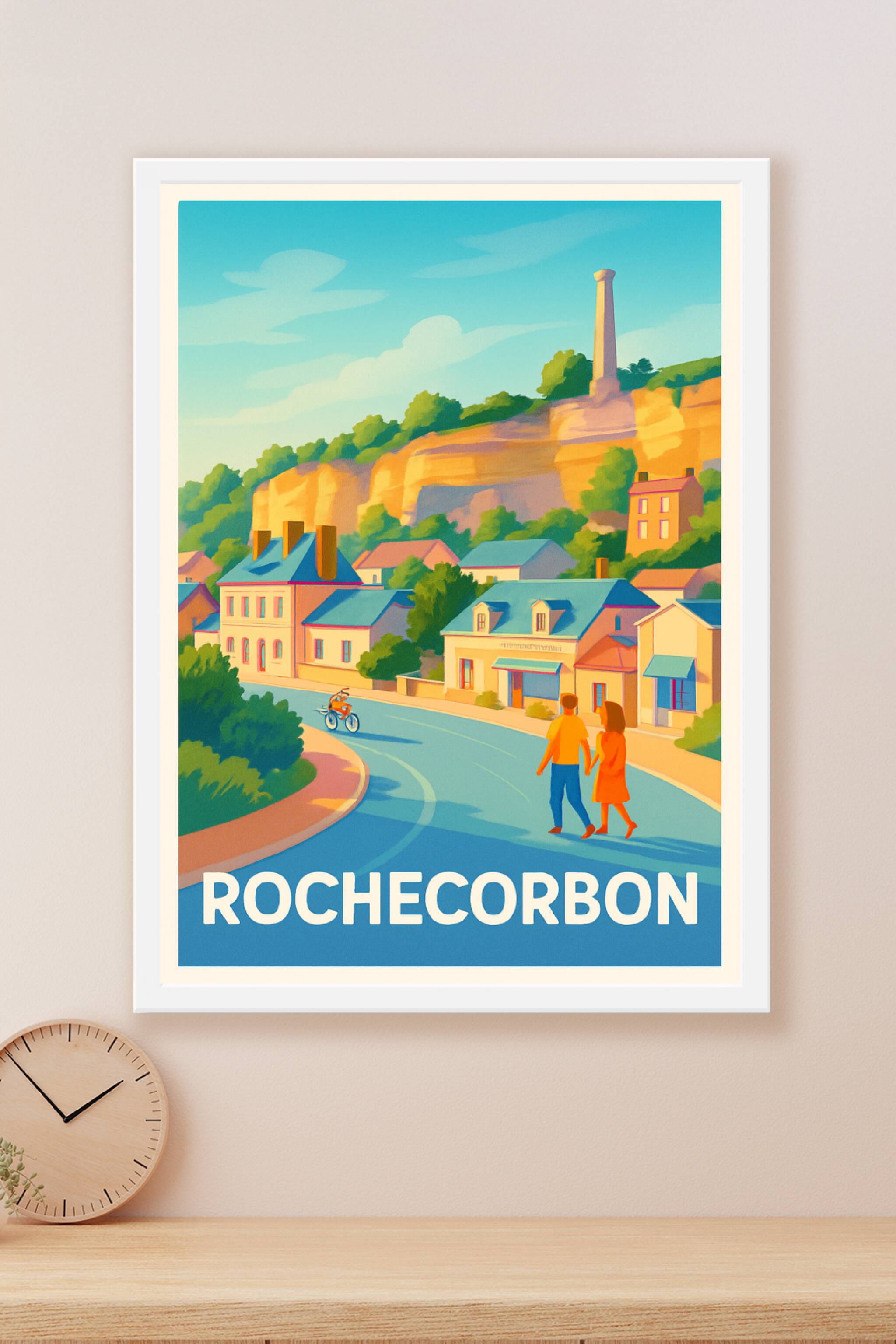 Découvrez l'atmosphère paisible et pittoresque de Rochecorbon avec cette affiche illustrée aux couleurs chaudes et lumineuses. Ce poster met en scène la douceur de vivre de cette charmante commune ligérienne, entre maisons typiques et falaises ensoleillées. Imprimée en tirage "Fine Art" sur un papier 305g coton de qualité muséale, cette affiche est disponible en formats A1 à A4, avec ou sans cadre. Apportez une touche raffinée et authentique à votre intérieur avec ce poster à la qualité d'impression premium, 100% fabriqué en France, parfait pour les amateurs de paysages français et de belles décorations murales.