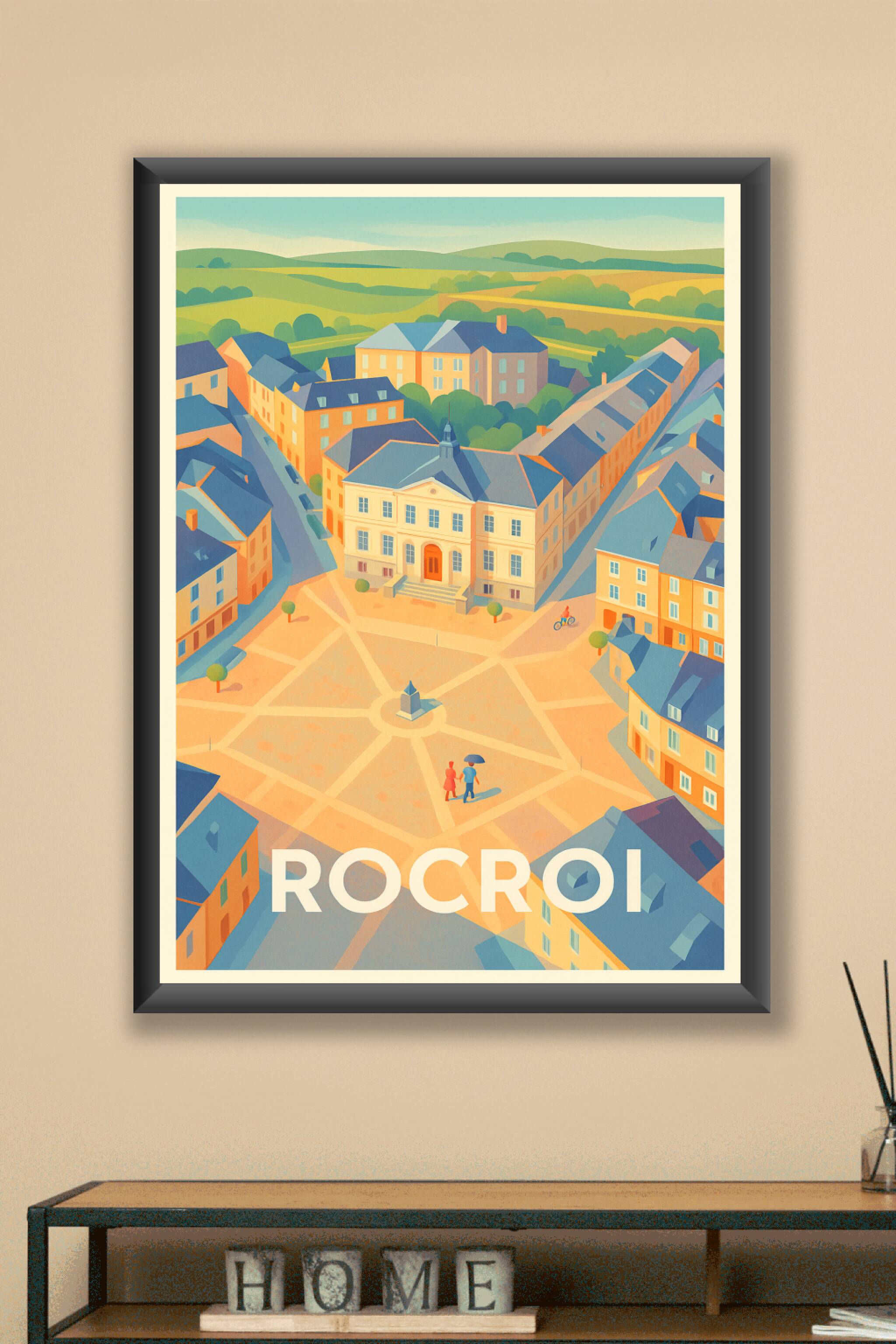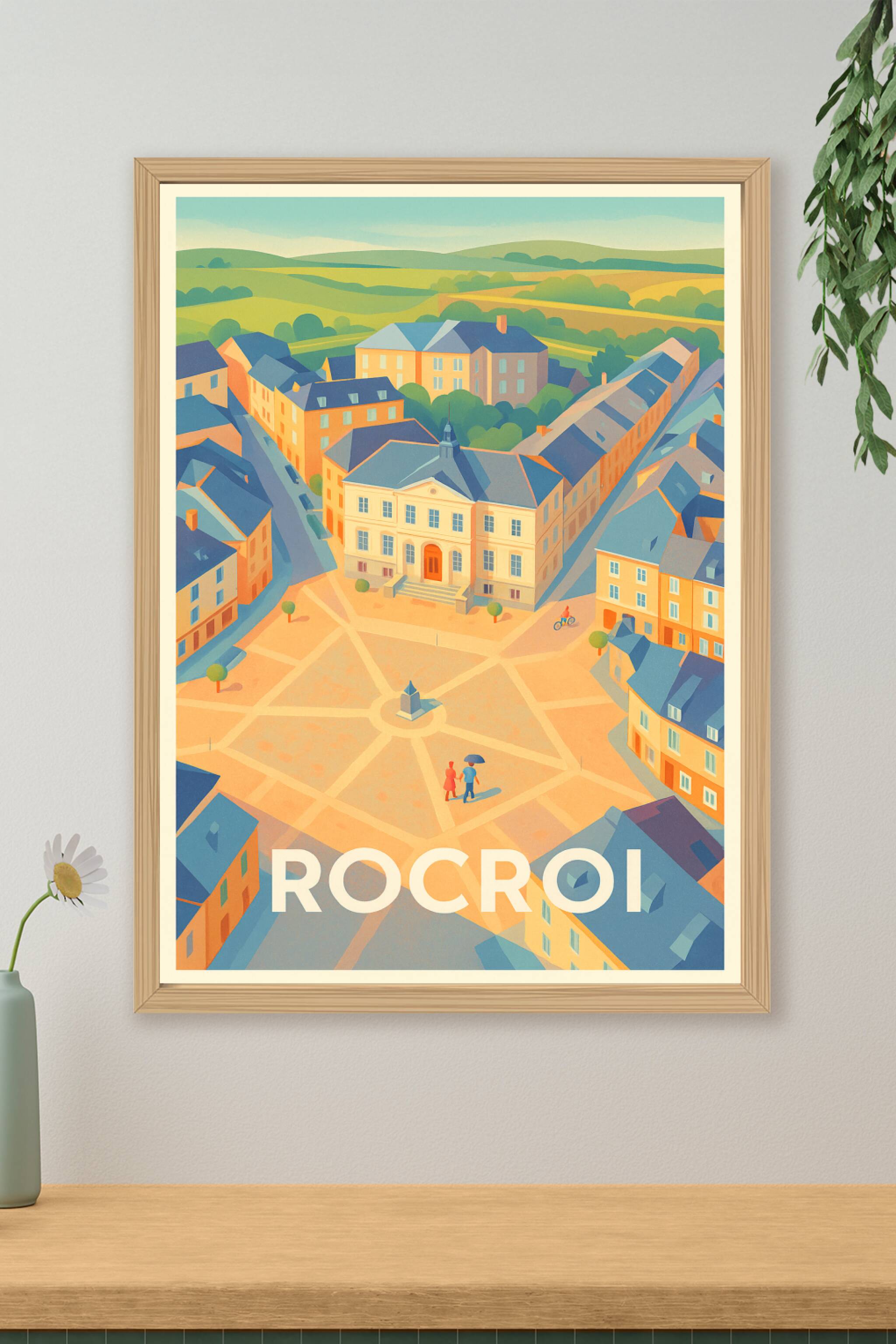 Découvrez l'élégance architecturale et le charme unique de Rocroi grâce à cette affiche inspirée de la célèbre place centrale de la ville fortifiée...