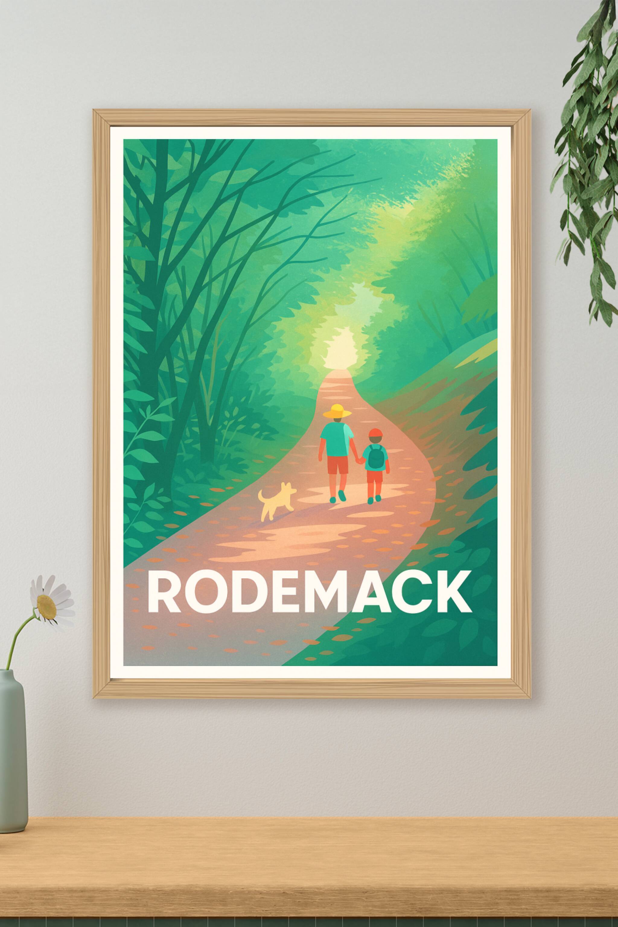 Cette affiche inspirante vous transporte au cœur de la nature luxuriante de Rodemack, invitant à une balade apaisante sur un chemin bordé d'arbres verts. Le poster illustre avec douceur un moment complice entre un adulte, un enfant et leur chien, symbolisant l'évasion et la simplicité. Disponible en tirage "Fine Art" sur papier 305g coton, garantissant une qualité d'impression exceptionnelle et une grande durabilité, cette affiche est proposée en formats A1 à A4, avec ou sans cadre. Parfaite pour embellir votre intérieur ou offrir un souvenir authentique, cette affiche premium 100% fabriquée en France apporte une touche de sérénité et de nature à votre décoration.
