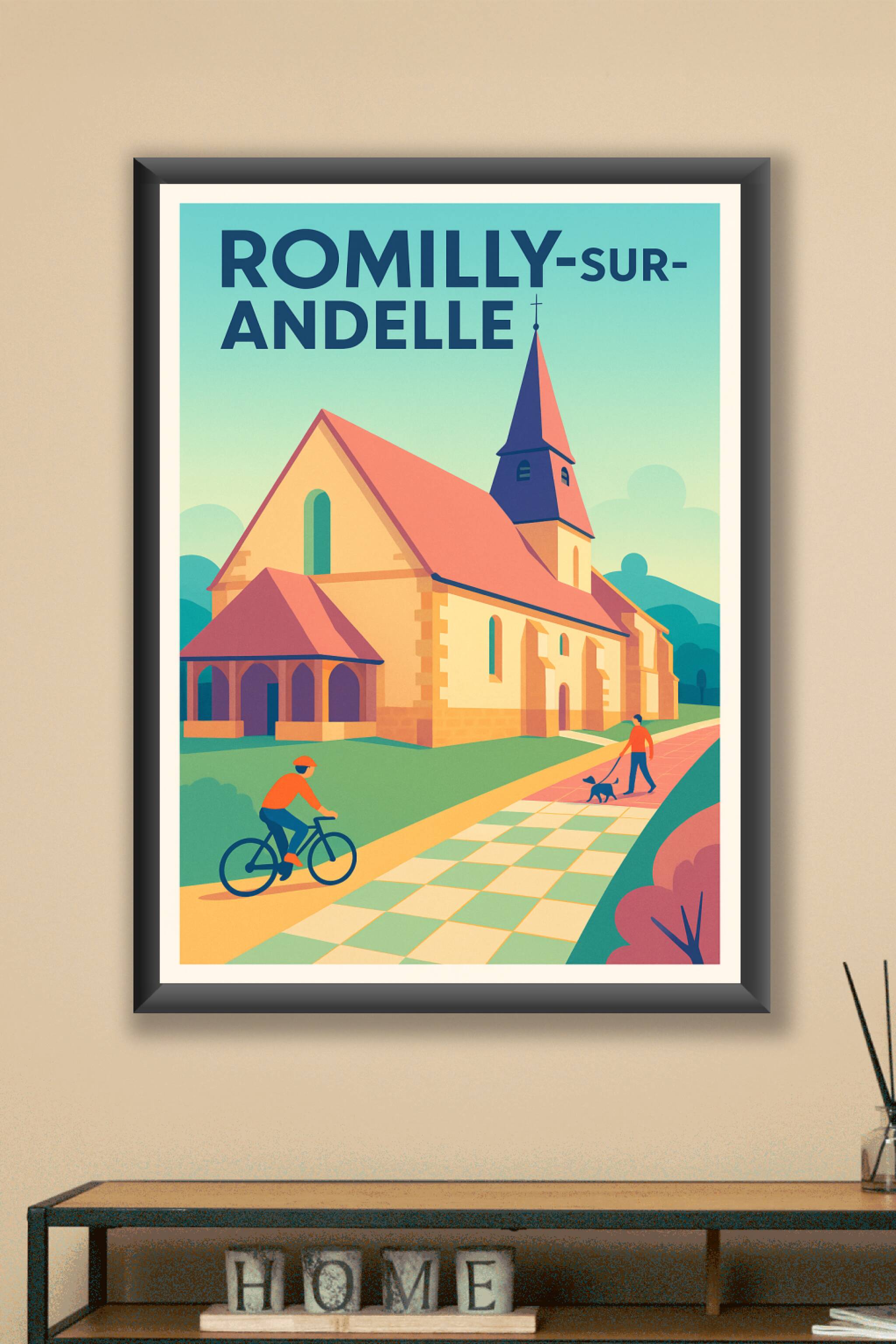 Découvrez l'élégance paisible de Romilly-sur-Andelle avec cette affiche illustrée mettant en scène un paysage typique de la région normande, où s'élève fièrement une église au style traditionnel. Imprimé en tirage « Fine Art » sur papier 305g coton, ce poster de haute qualité garantit des couleurs vibrantes et une texture remarquable. Disponible en formats A1 à A4, avec ou sans cadre, cette affiche apportera une touche de sérénité et d'authenticité à votre décoration intérieure. Profitez d'une impression premium 100% fabriquée en France pour offrir ou embellir votre espace avec ce souvenir raffiné de Romilly-sur-Andelle.