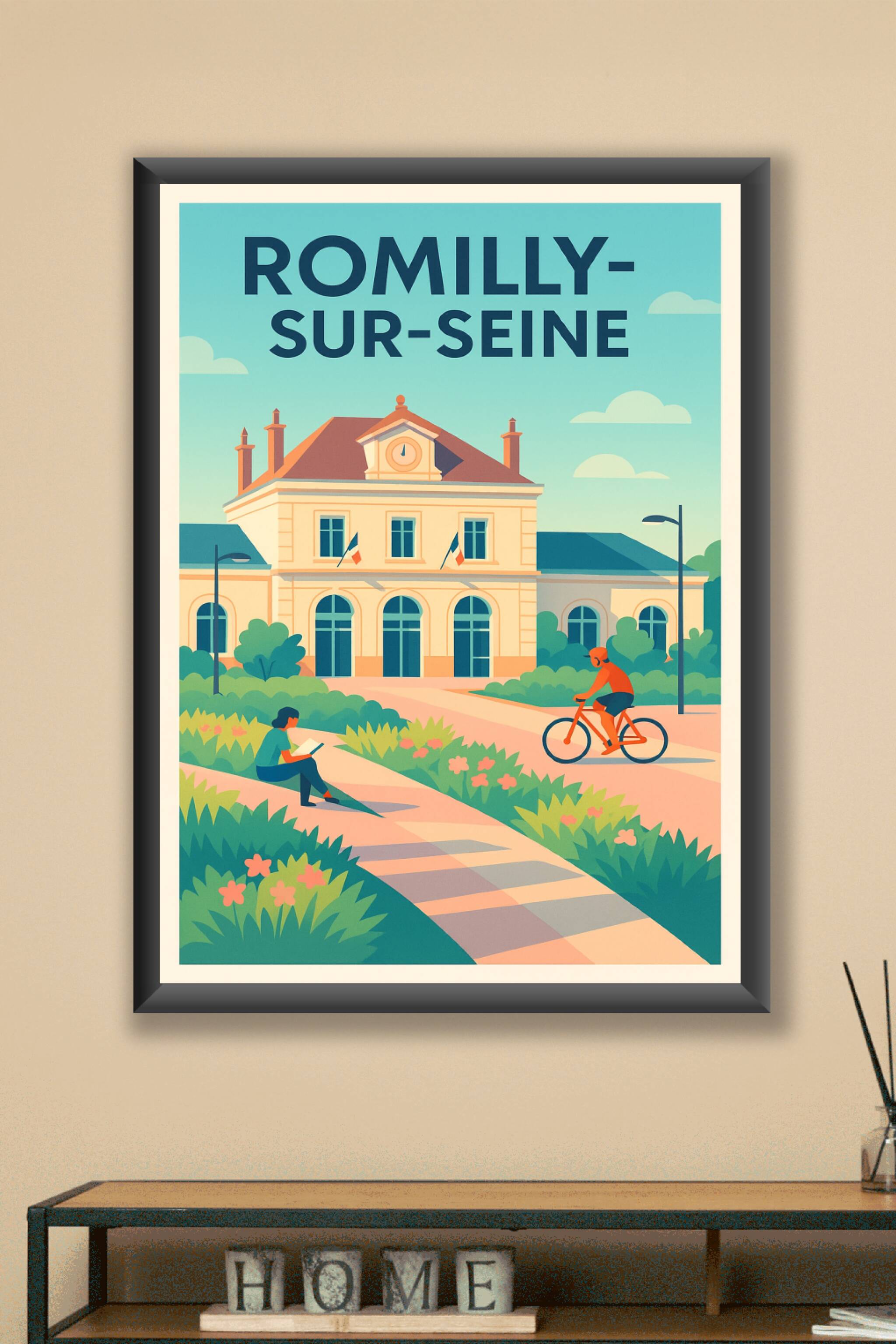 Découvrez l'élégance paisible de Romilly-sur-Seine avec cette affiche illustrée mettant en scène l'architecture locale et la quiétude des espaces v...