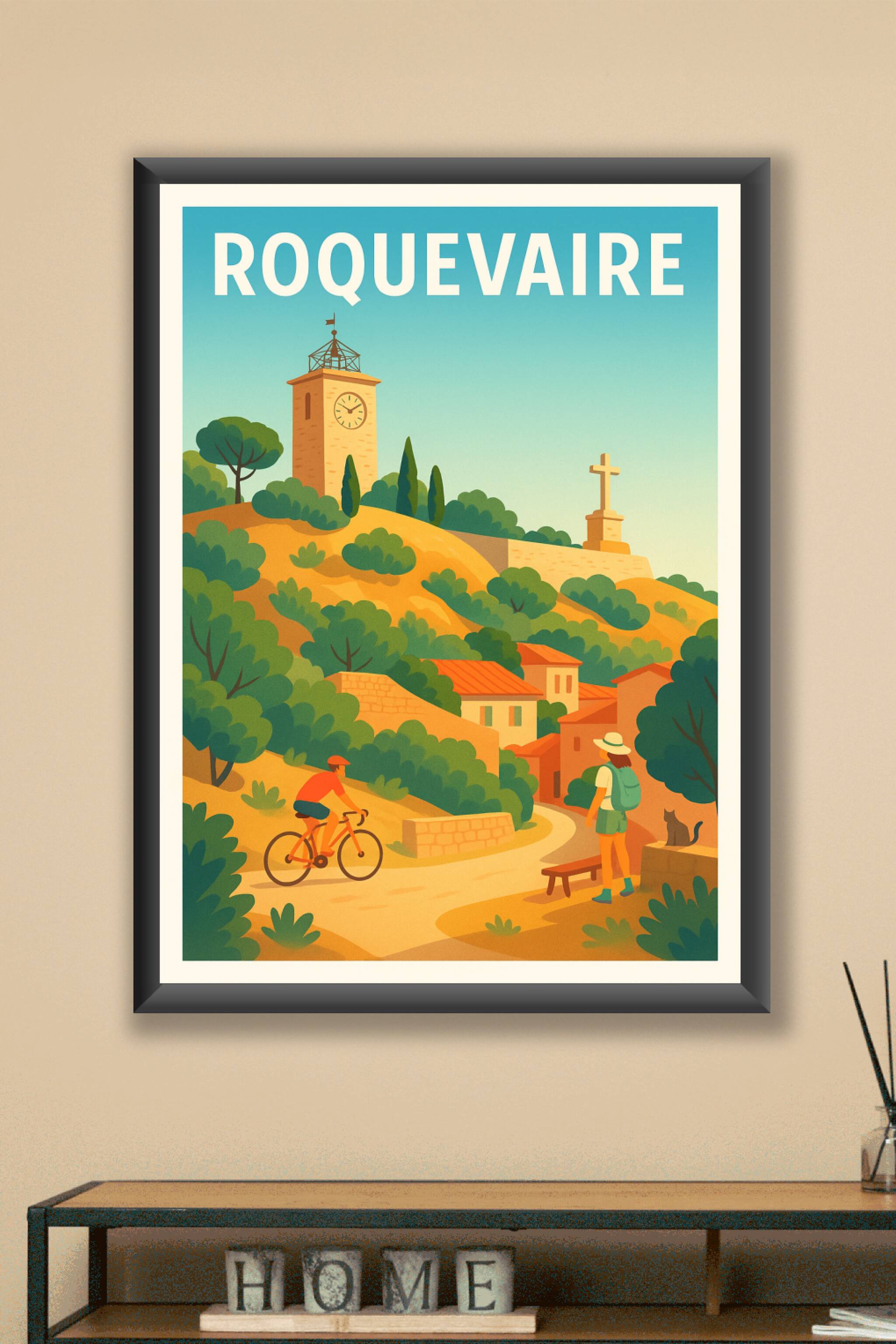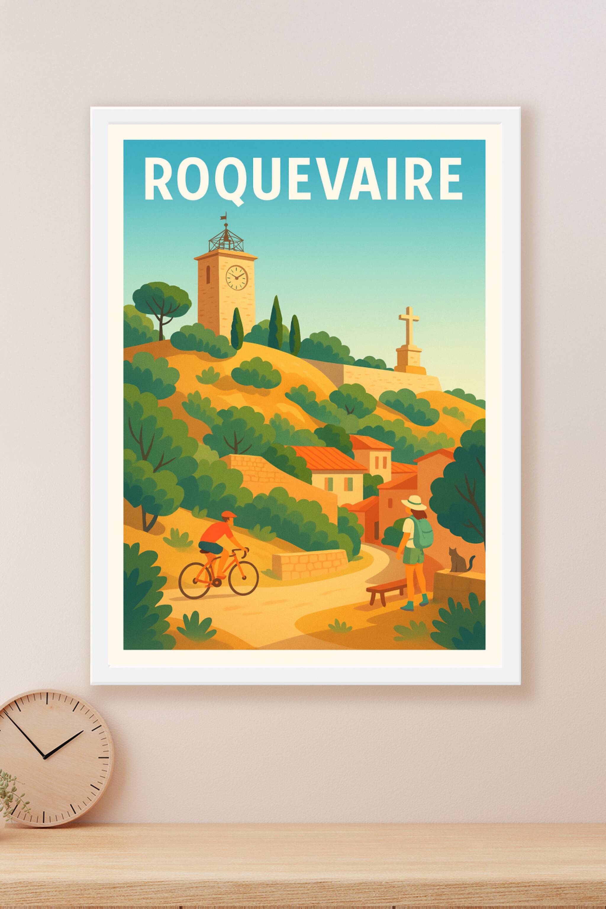 Découvrez le charme pittoresque de Roquevaire avec cette affiche au style vintage qui met en scène ses collines ensoleillées, ses maisons aux toits...