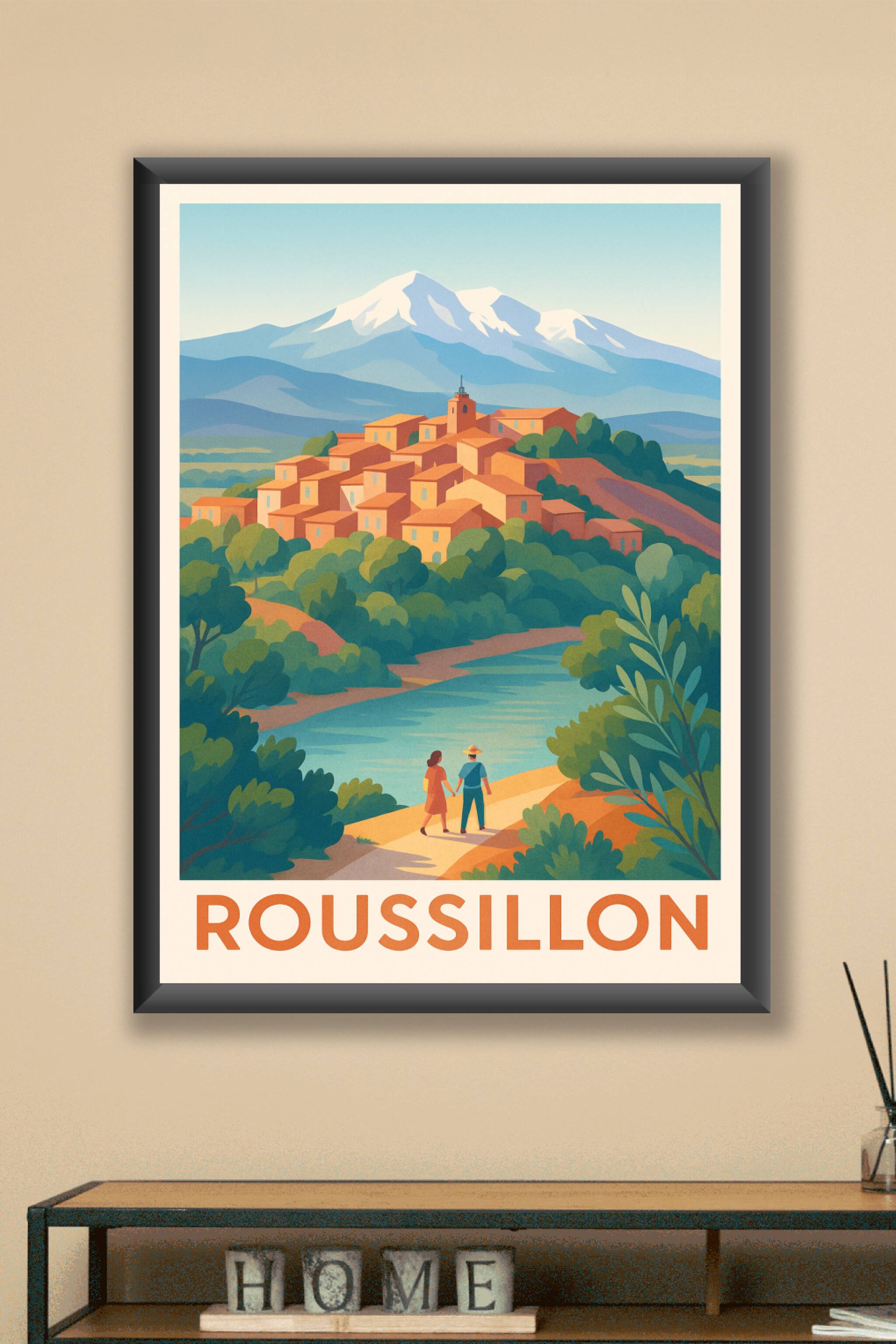 Découvrez la beauté authentique du village de Roussillon, niché au cœur des ocres du Luberon avec en toile de fond les majestueux sommets enneigés. Cette affiche illustrée, aux tons chaleureux et apaisants, capture la douceur de vivre provençale et la richesse des paysages naturels. Imprimée en tirage "Fine Art" sur papier 305g coton, elle offre une qualité d'impression exceptionnelle pour sublimer votre décoration intérieure. Disponible en formats A1 à A4, avec ou sans cadre, ce poster est parfait pour apporter une touche d'élégance et de sérénité à votre habitat ou pour offrir un cadeau unique aux amoureux du Sud de la France.